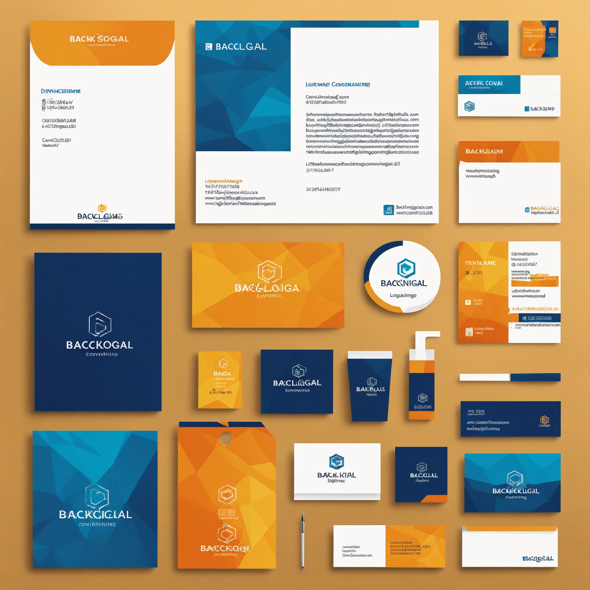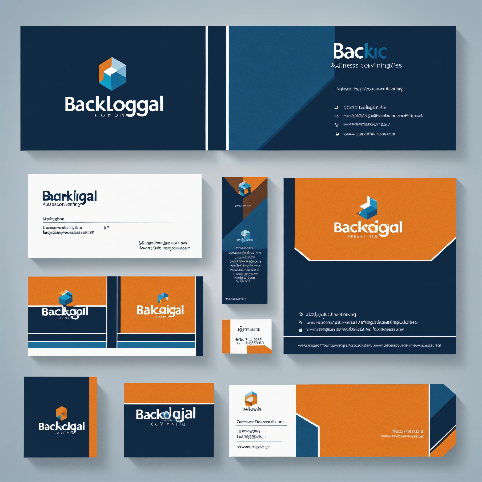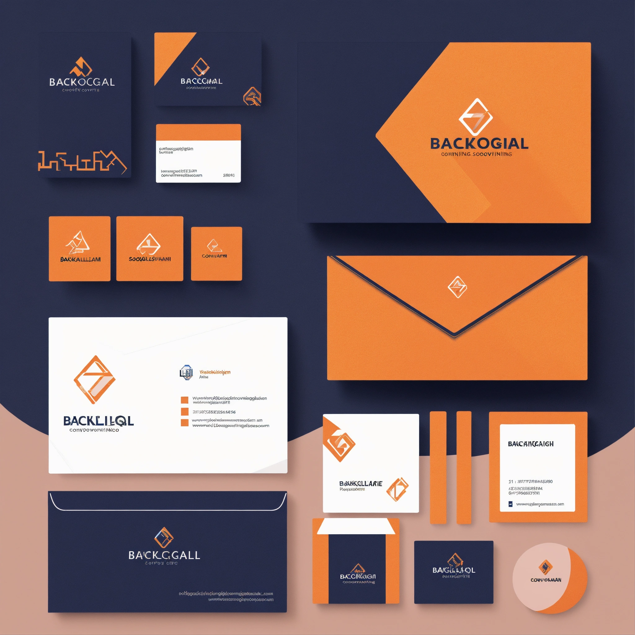 High resolution icon of a extremely simple 2d, elegant, clean and modern geometric business identity, business card, letterhead for software process consulting company "backlogical" in conveying terms "logic", "software", "development"