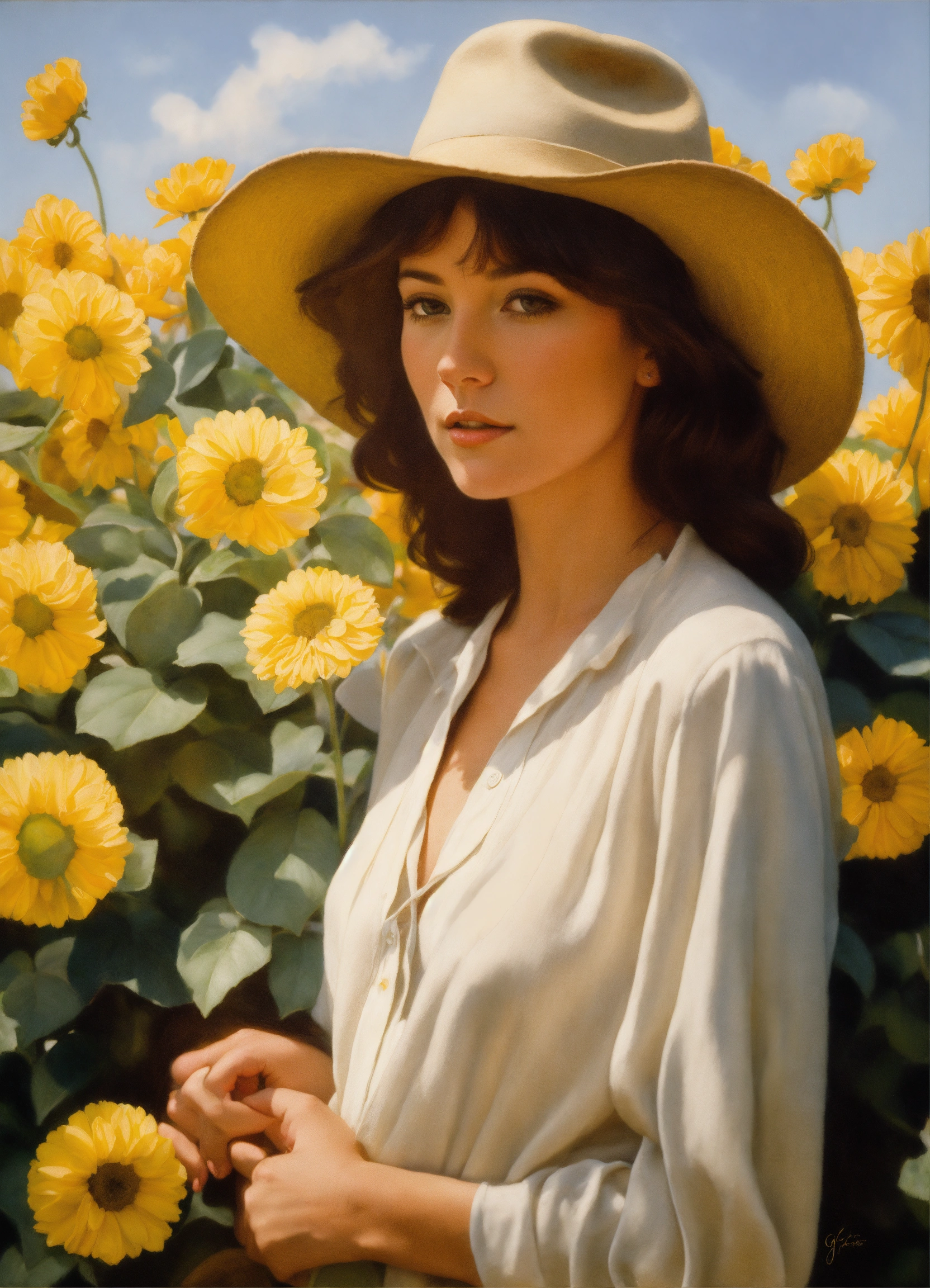Woman with hat among the flowers georgia o’keeffe and steve hanks style