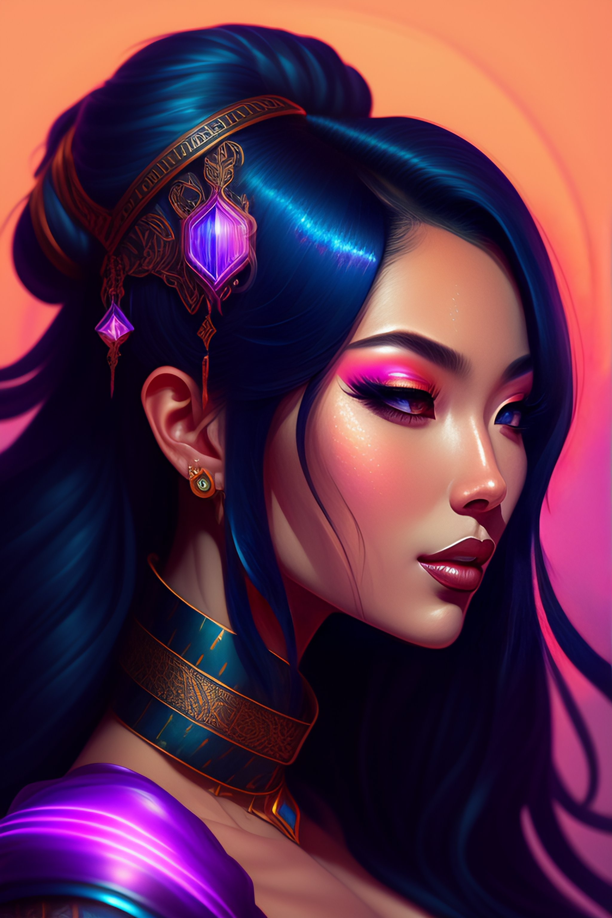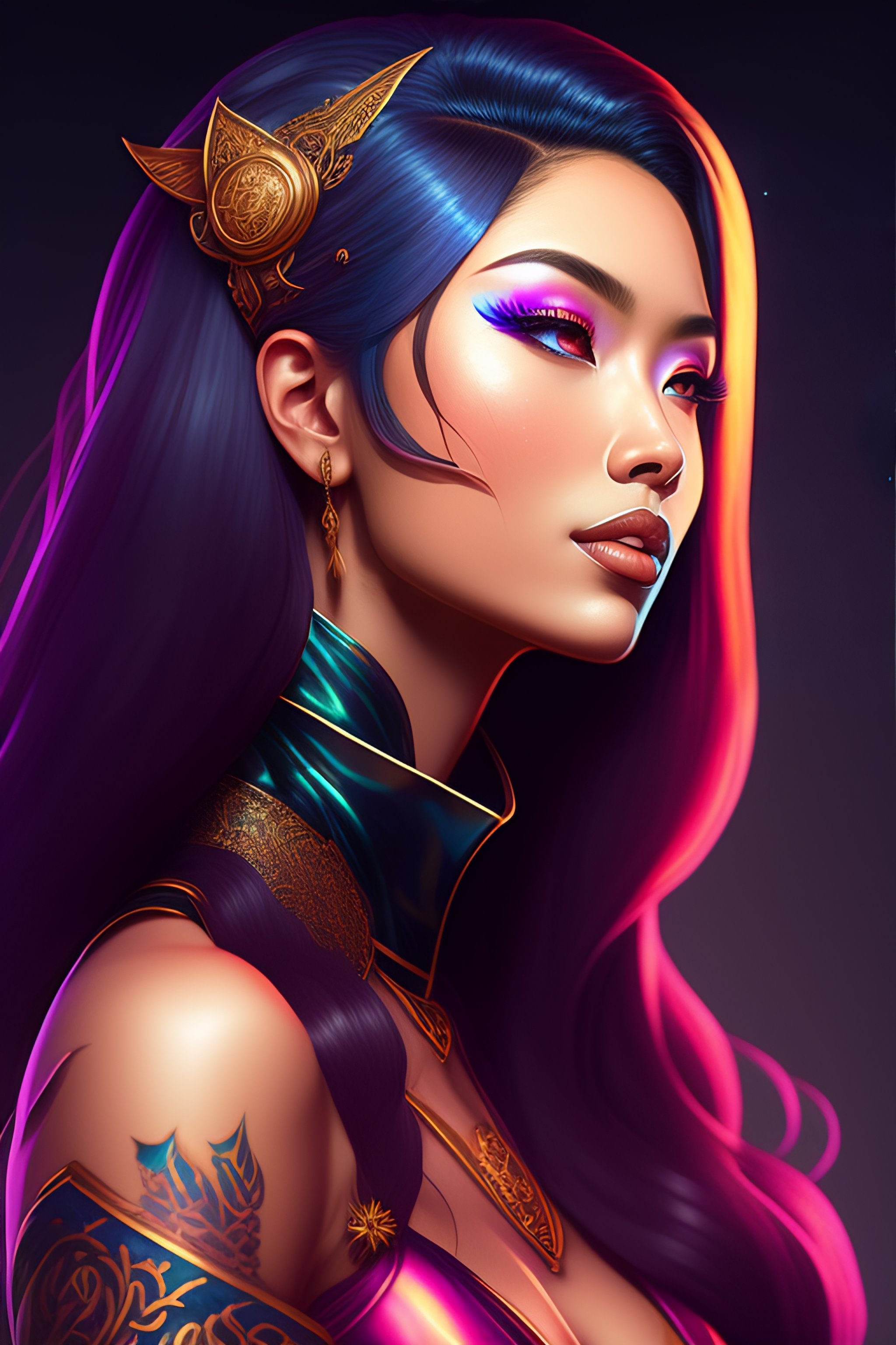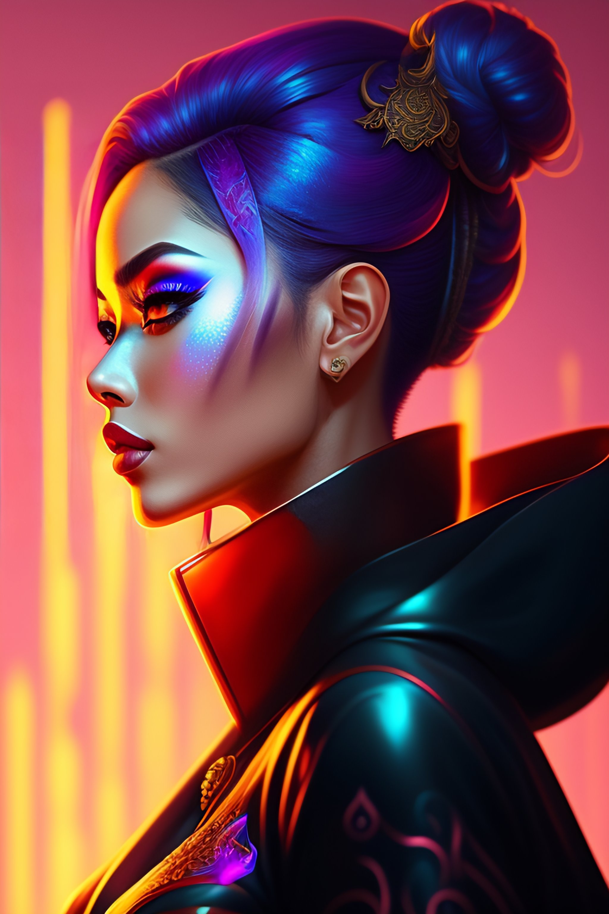 Left facing side view portrait of jinx, league of legends, intricate, elegant, highly detailed, digital painting, artstation, concept art, smooth, sharp focus, illustration, illuminated lines, outrun, vaporware, illuminated runes, cyberpunk darksynth, by audrey kawasaki and ilya kuvshinov and krenz cushart
