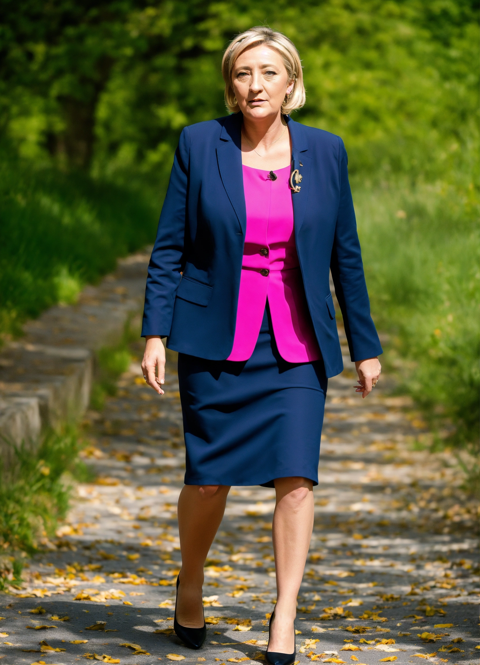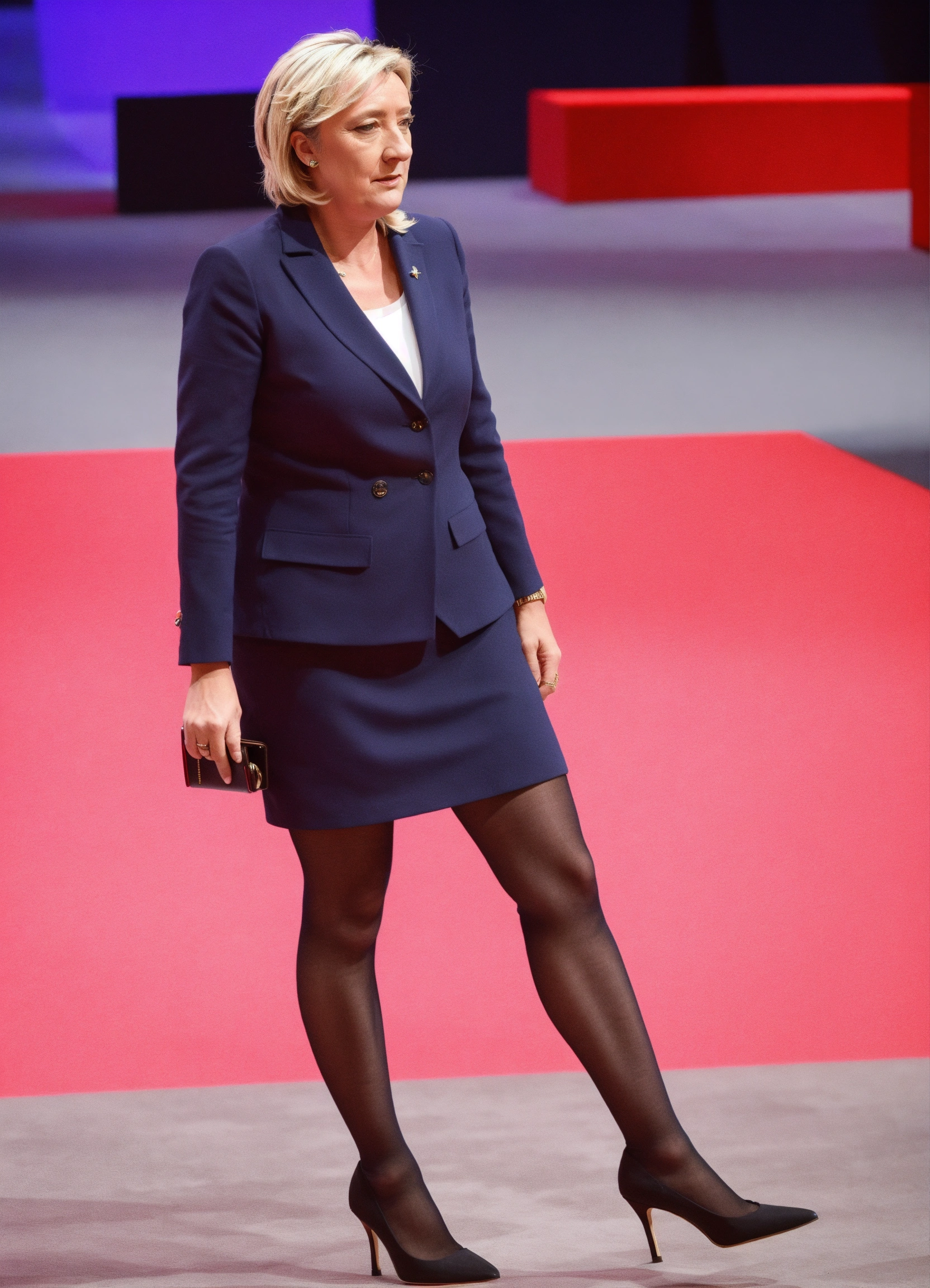 Marine le pen en tailleur jupe courte