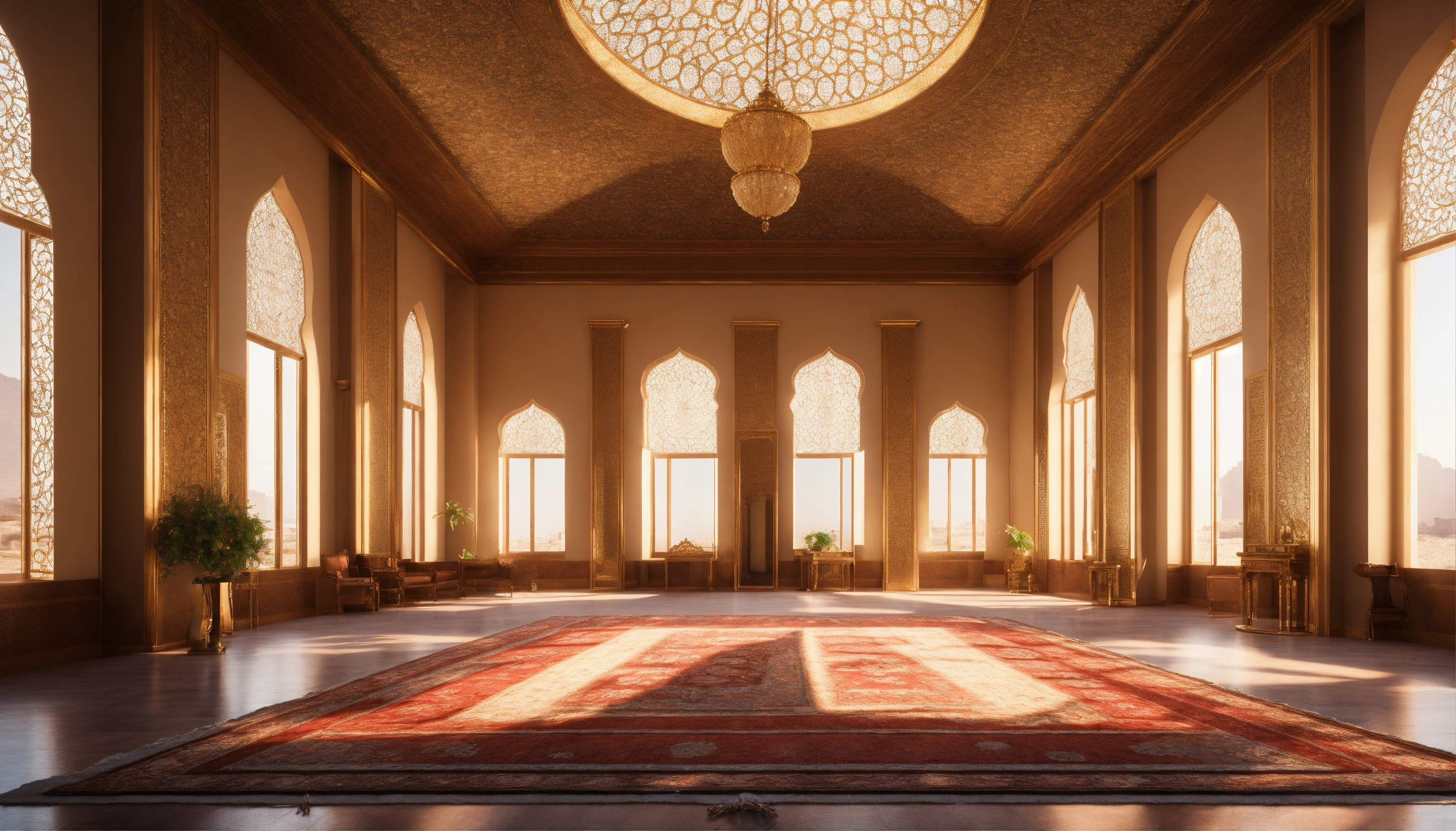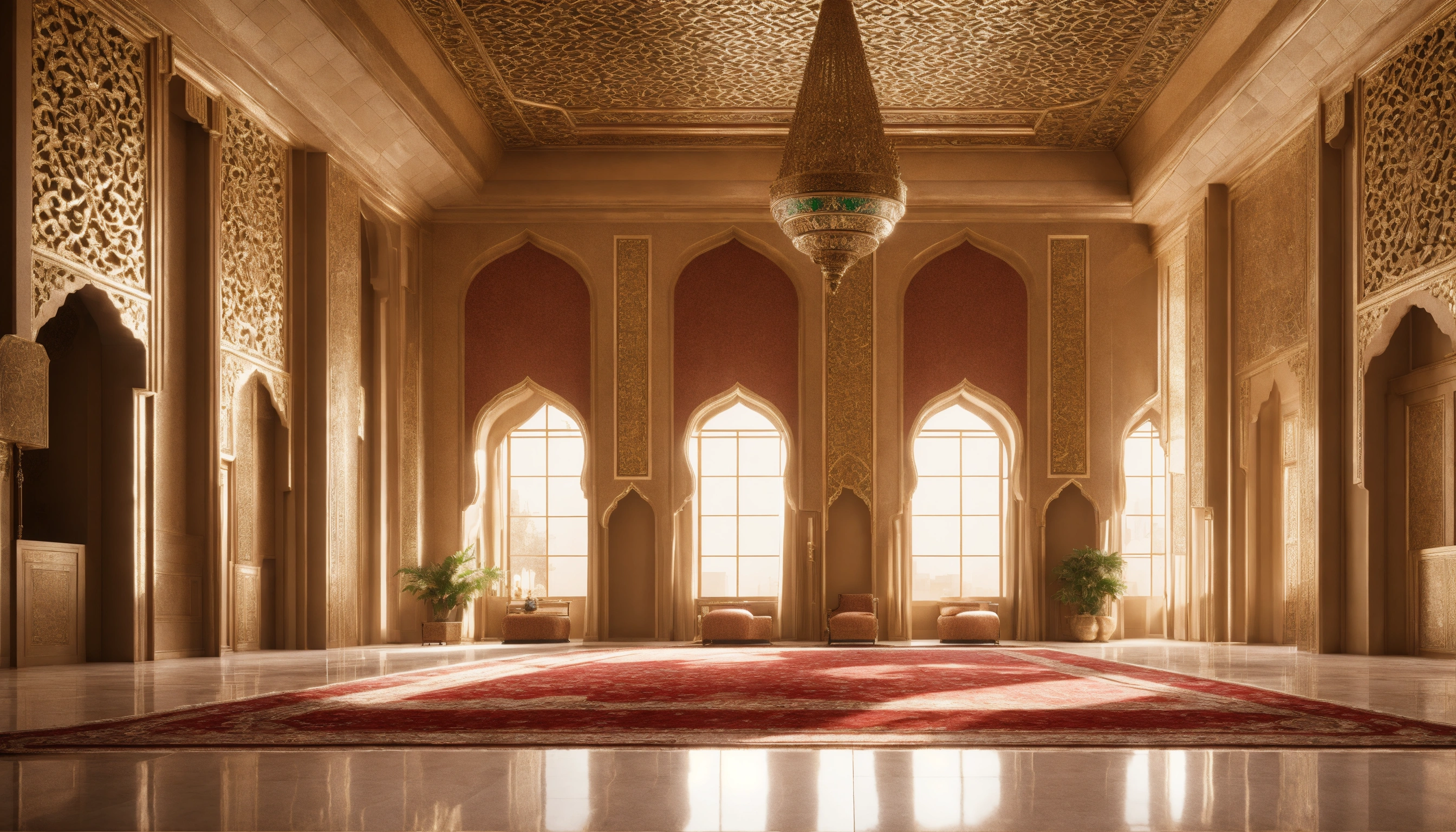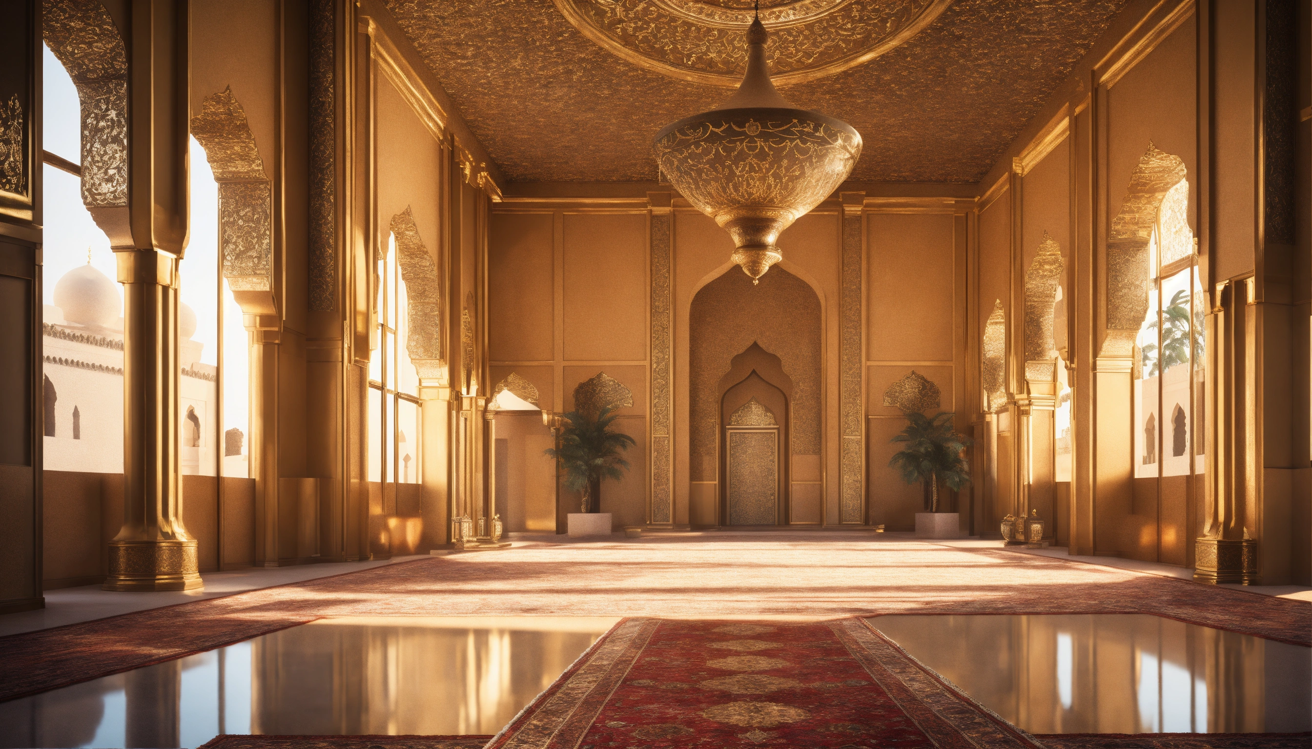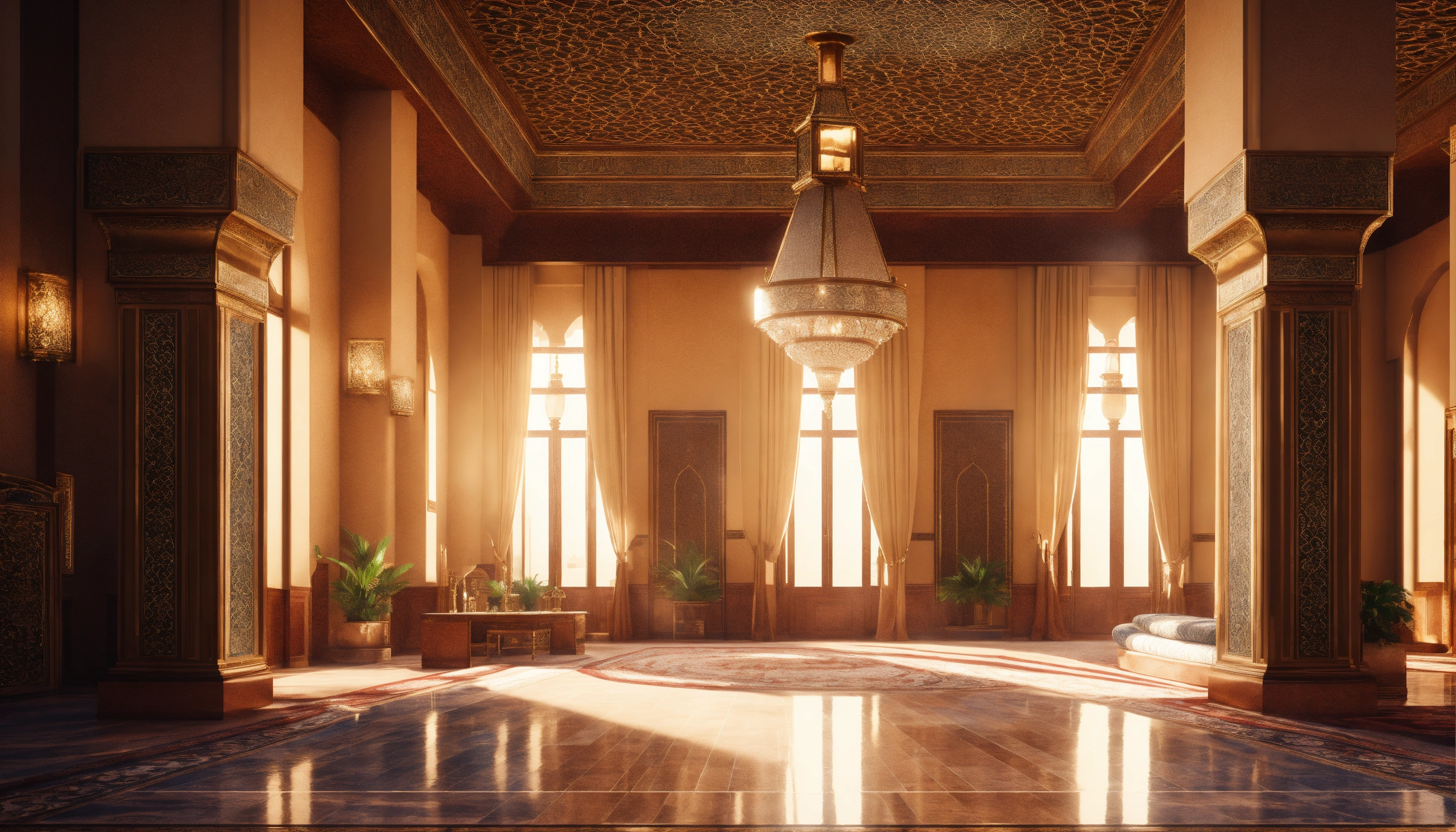 Saudi palace interior room, traditional, high detail, focus crisp, dramatic, natural light, soft reflection, photo-realistic, 8k, high-definition