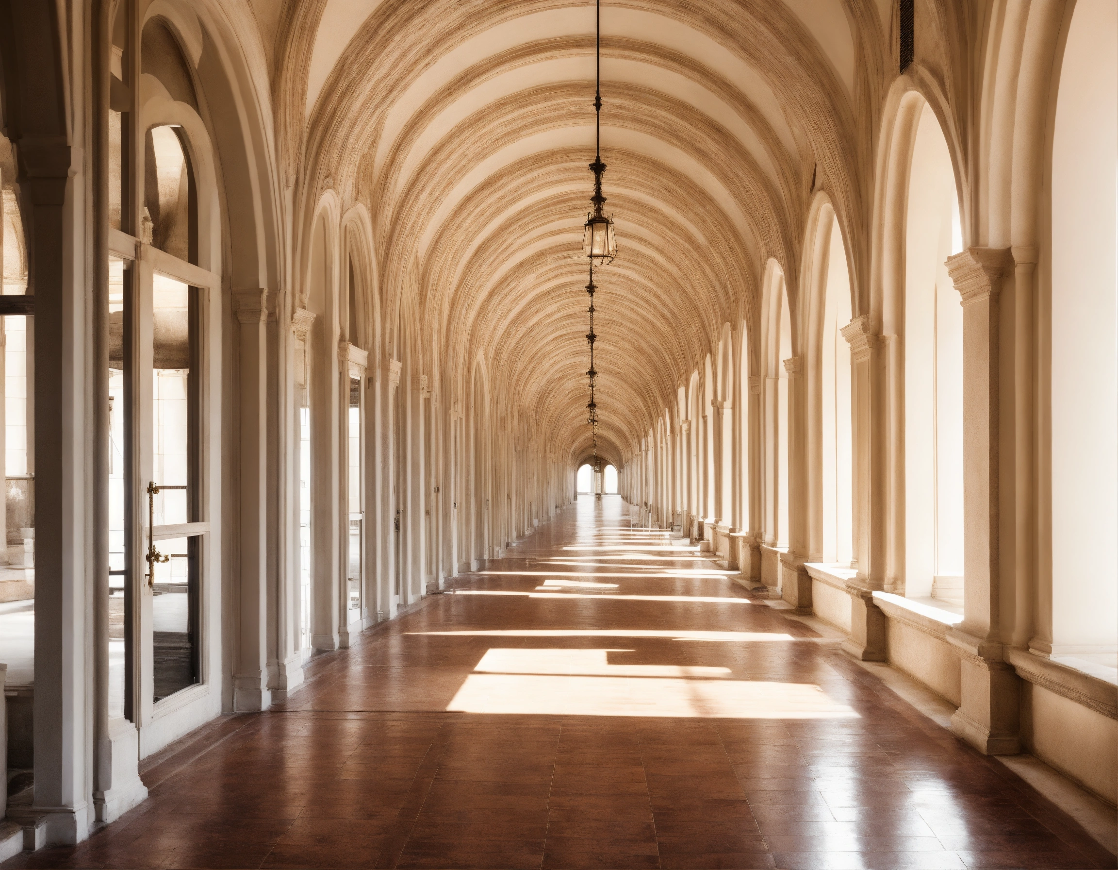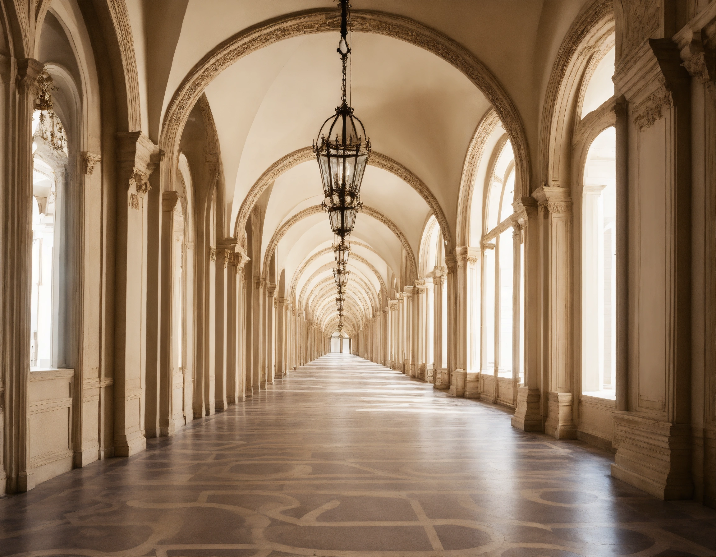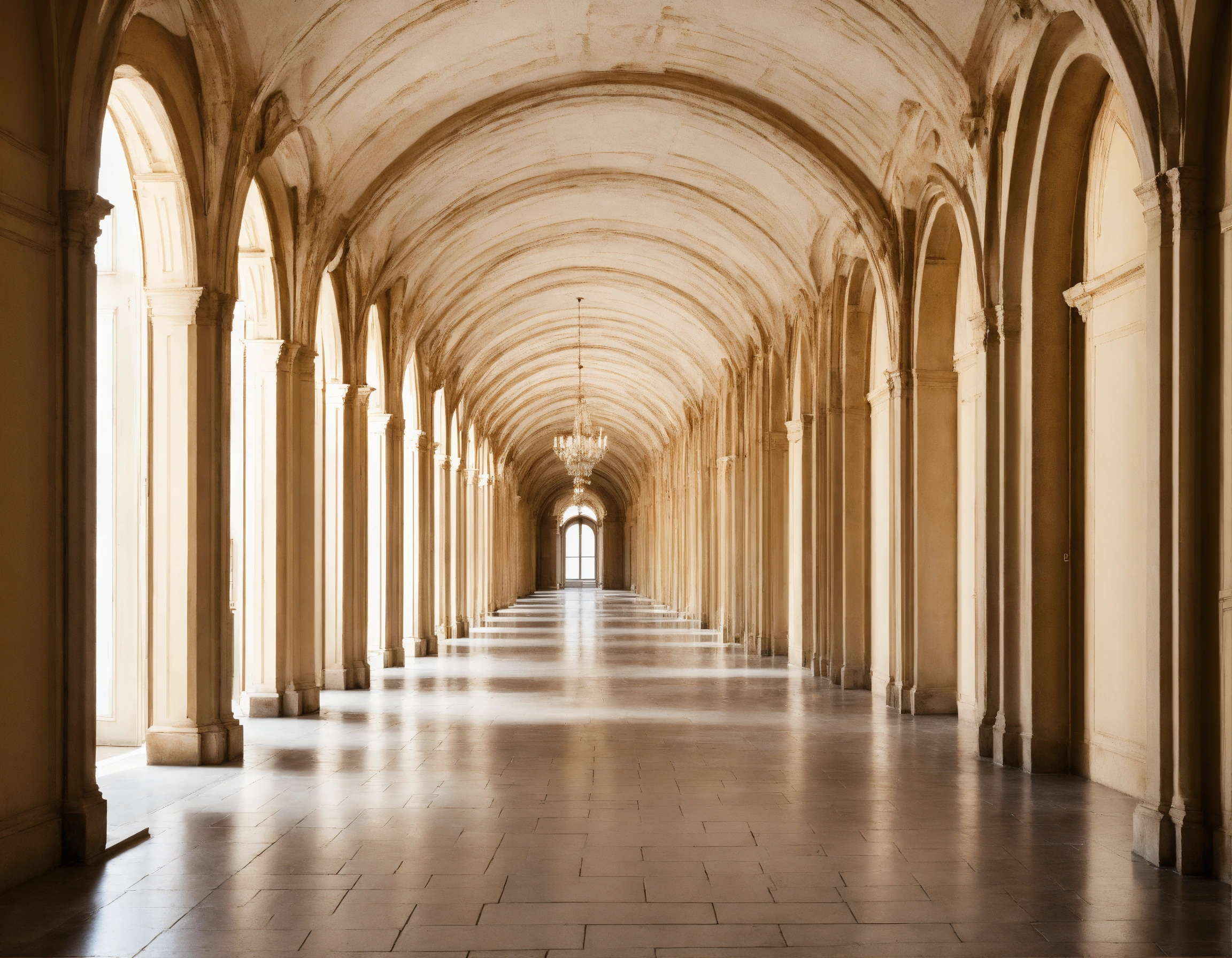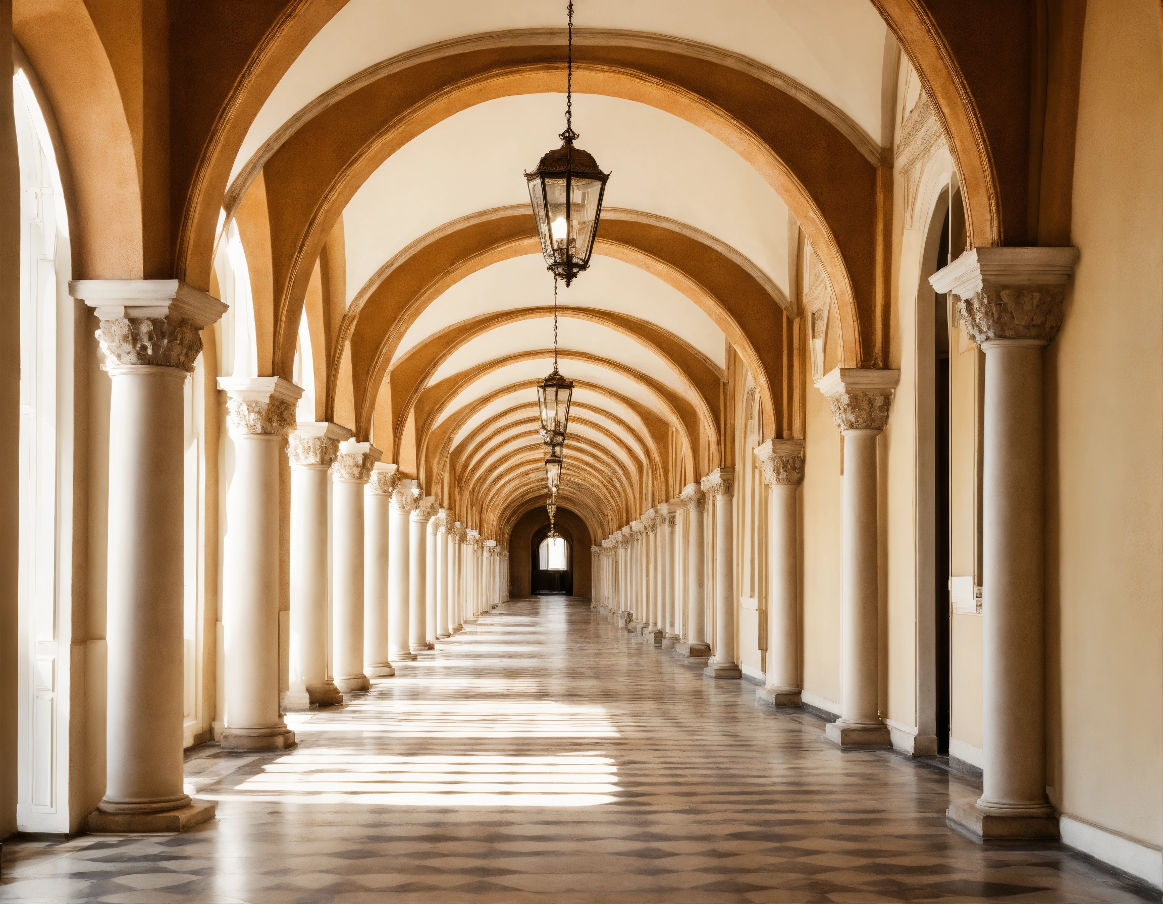Long corridor of arches in perspective on a white background strict classicism