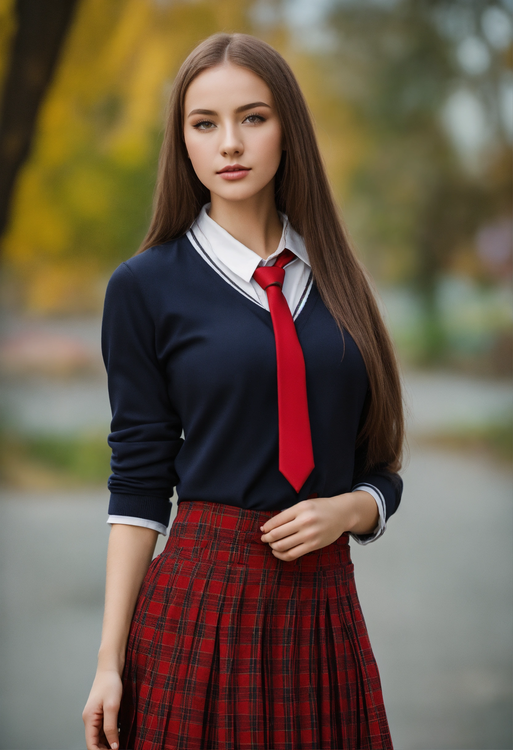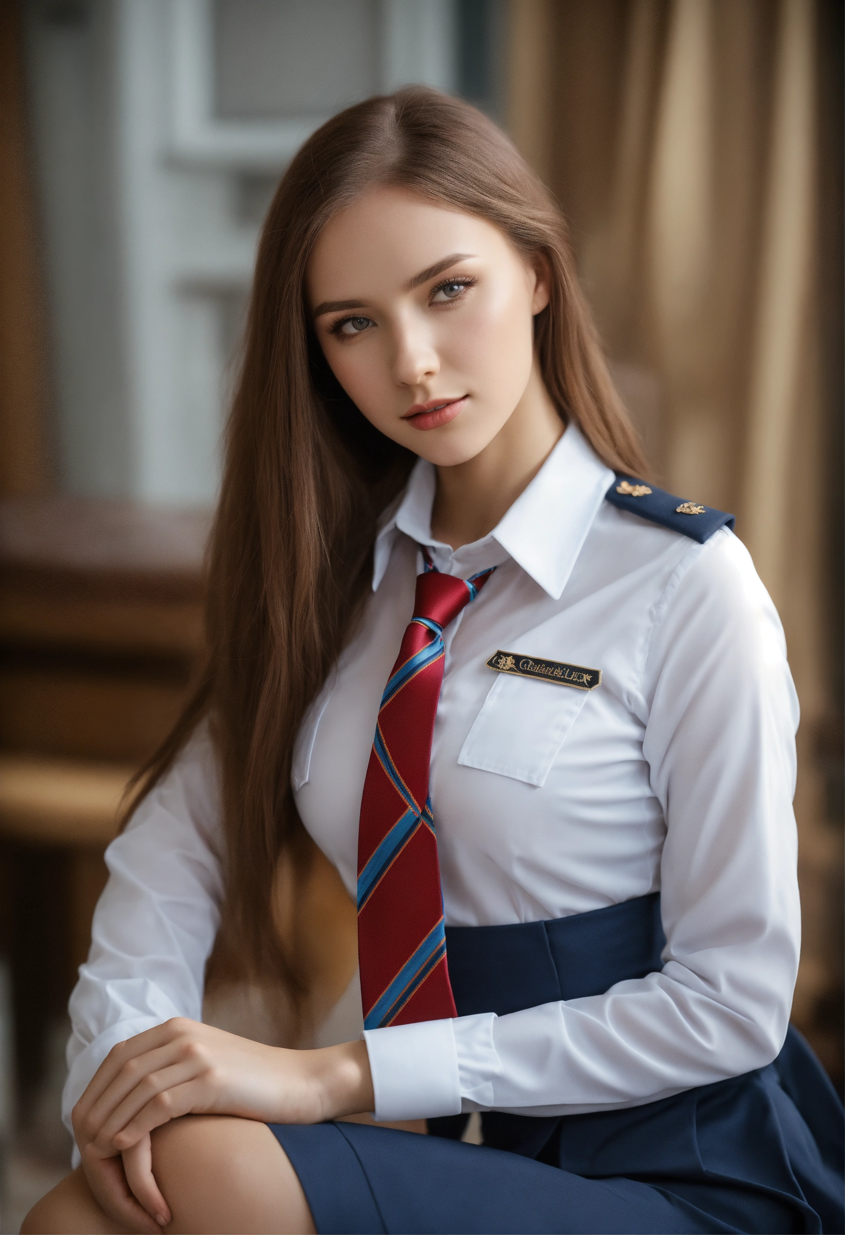 Hot adult woman, slavic attractive schoolgirls in uniform, private school uniform, jacket, tight shirt, skirt, tights, feminine, school scenes, aura of beauty, relaxation, released tie, wide bust, belarussian girl, in belarus, sharp focus, 8k high definition, clothes too small and thin, undersized shirt and prominent body, studio photography, xf iq 4, 1 5 0 mp, 5 0 mm, iso 2 0 0, 1 / 1 6 0 s, realistic, natural light, octane render, adobe lightroom, rule of thirds, symmetrical balance, depth layering, polarizing filter, sense of depth, ai enhanced