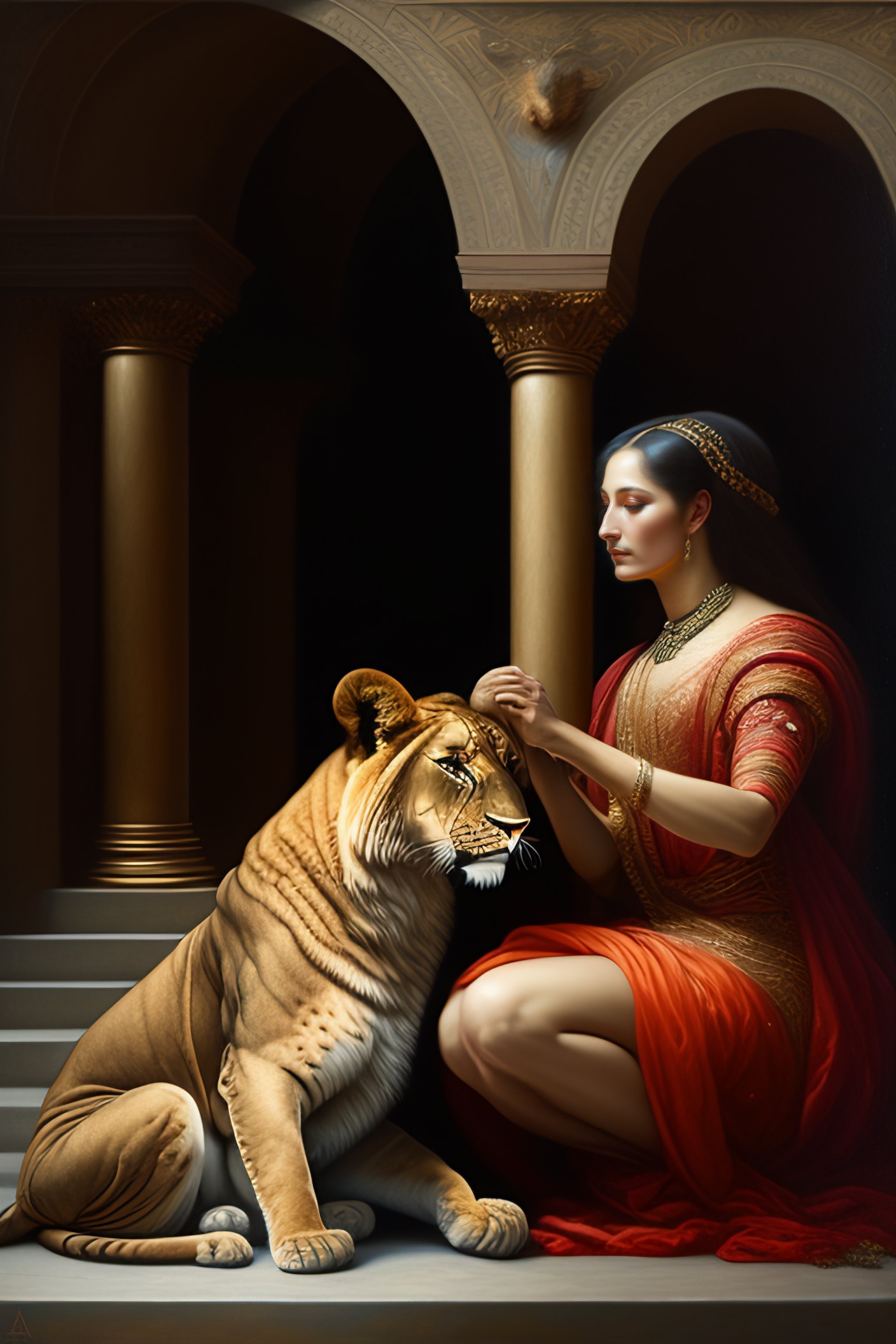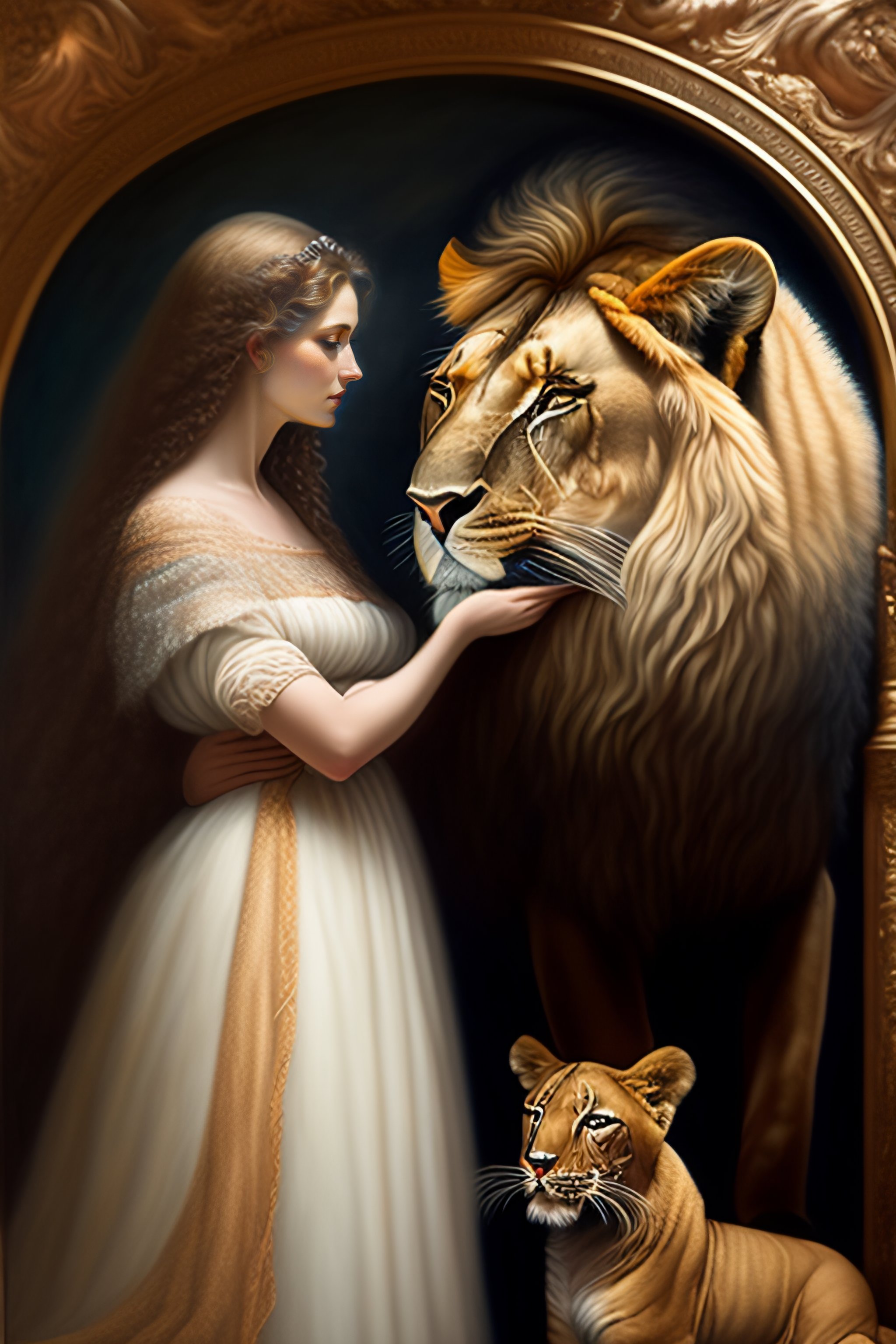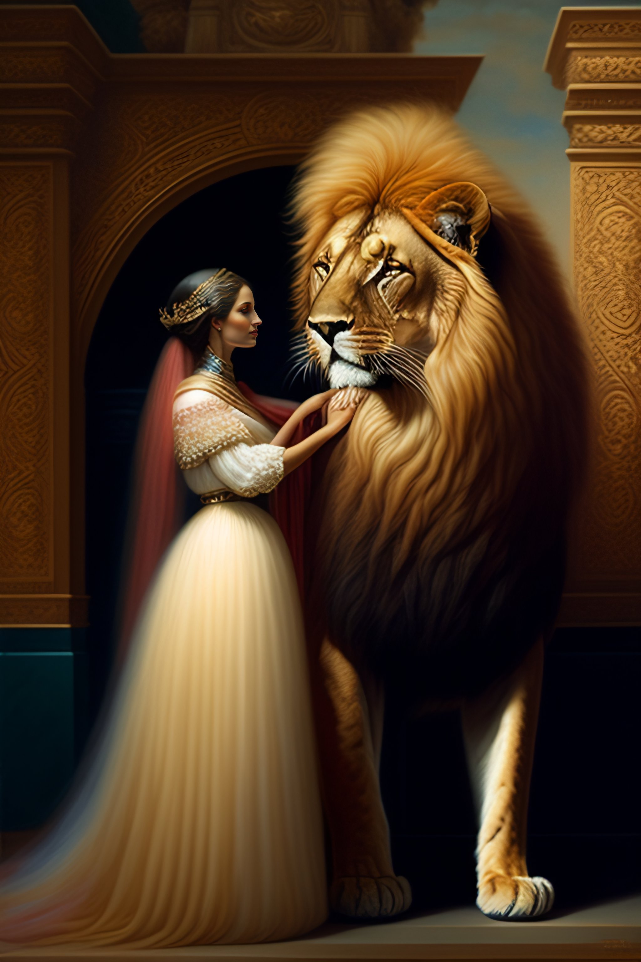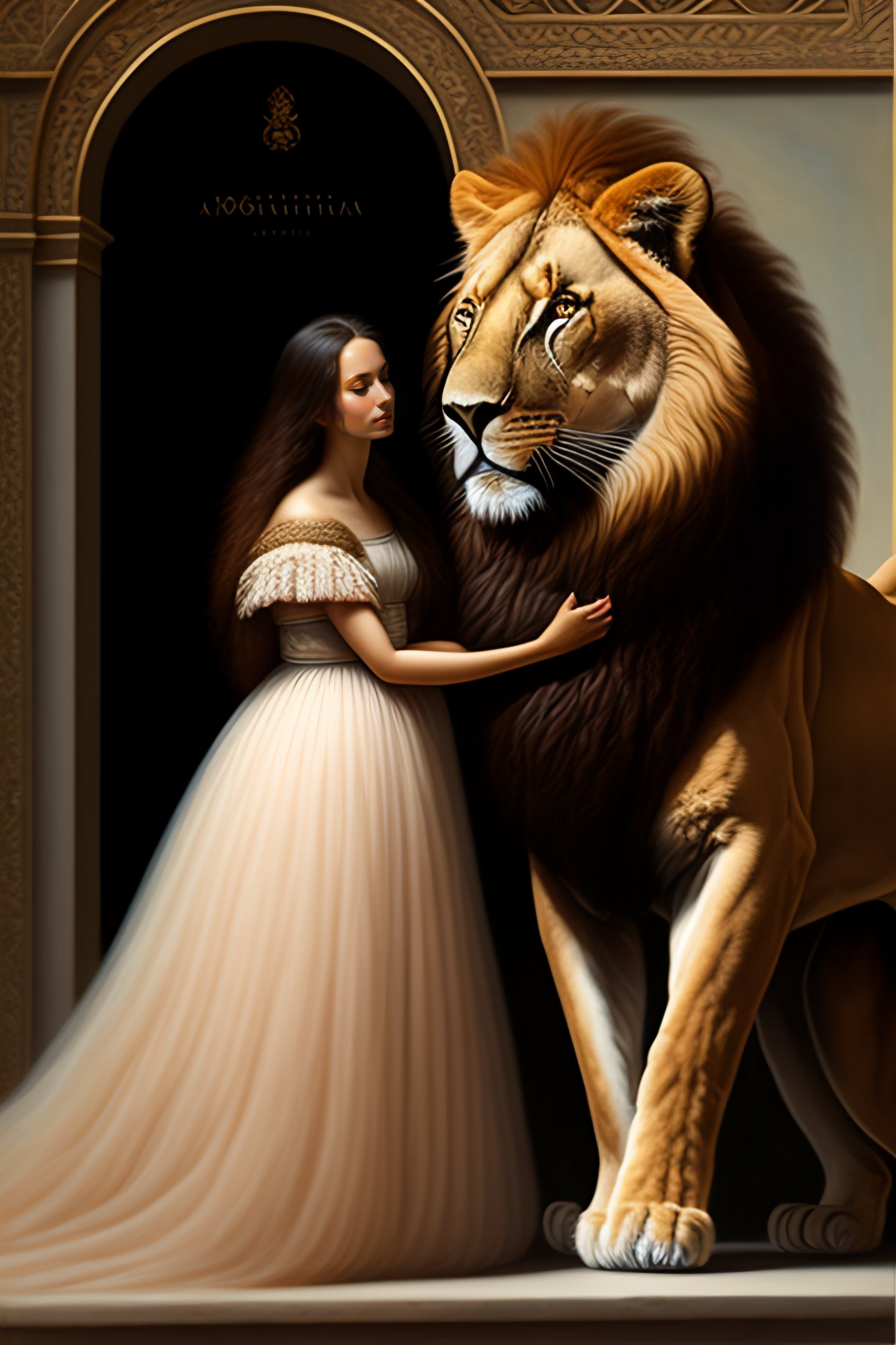 Woman petting a lion by agostino arrivabene