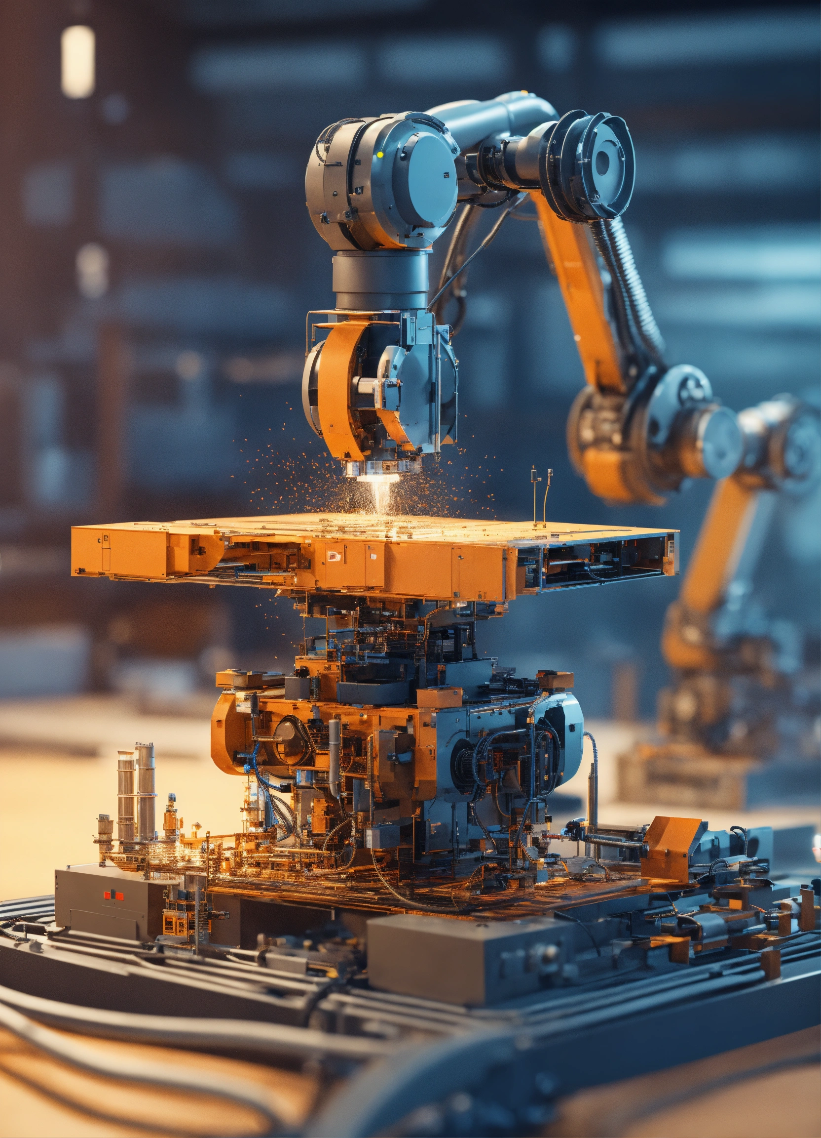 A 3d image of progress in the field of industry, especially in regards to digitization. maybe a robot or robotic machine