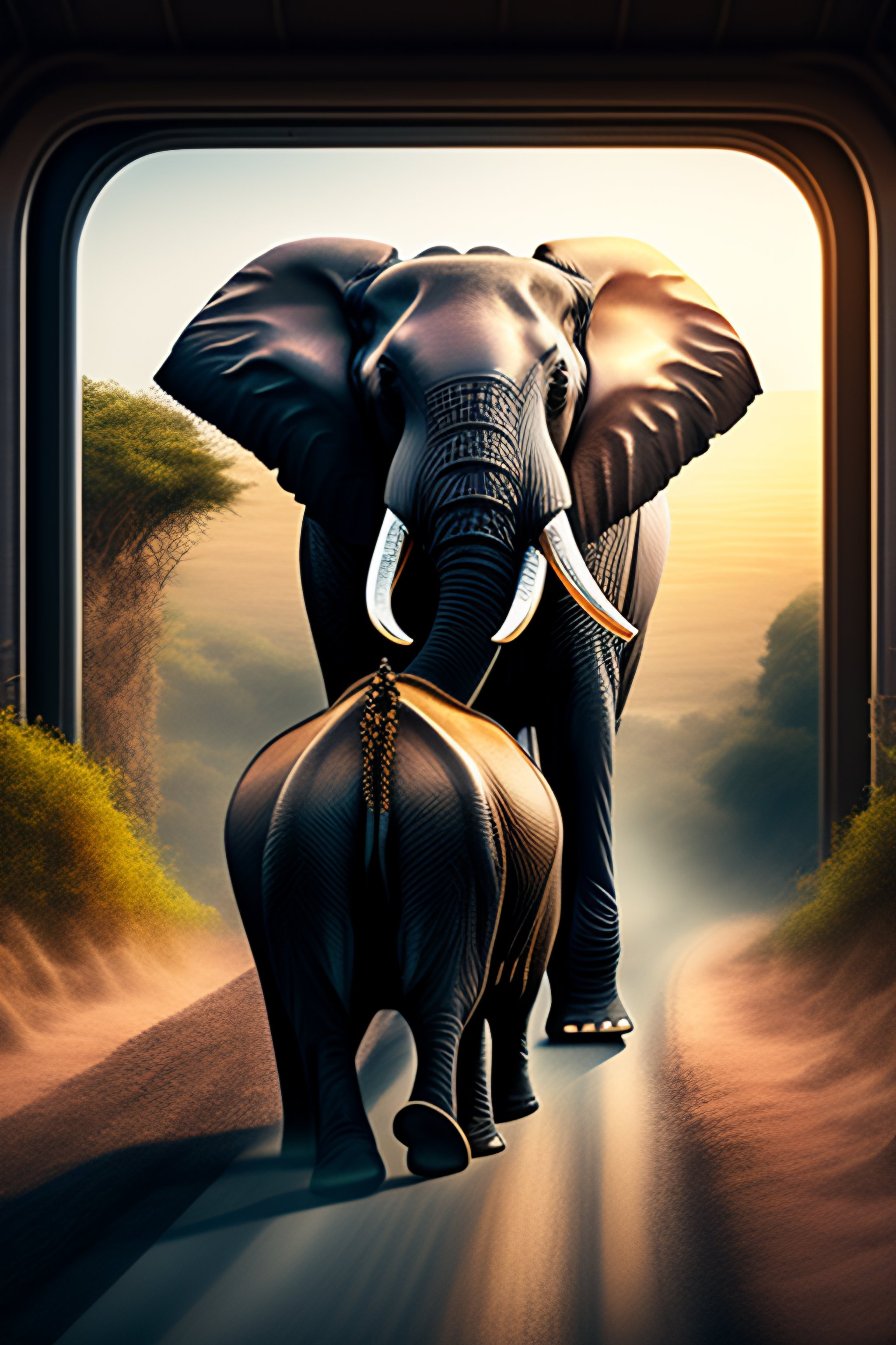 Elephant driving in car 4 k realistic