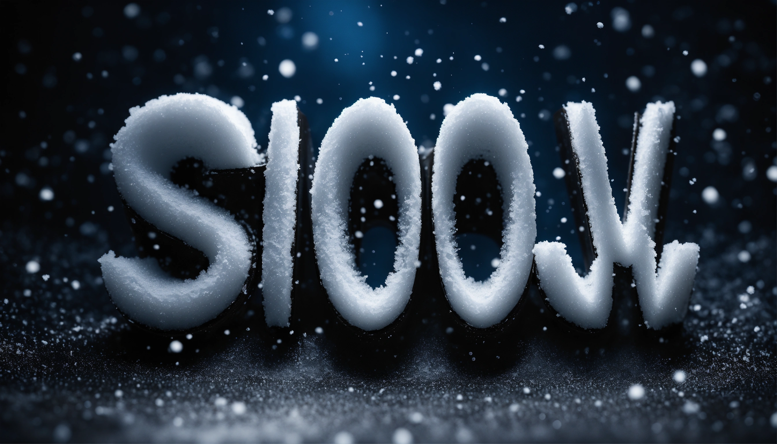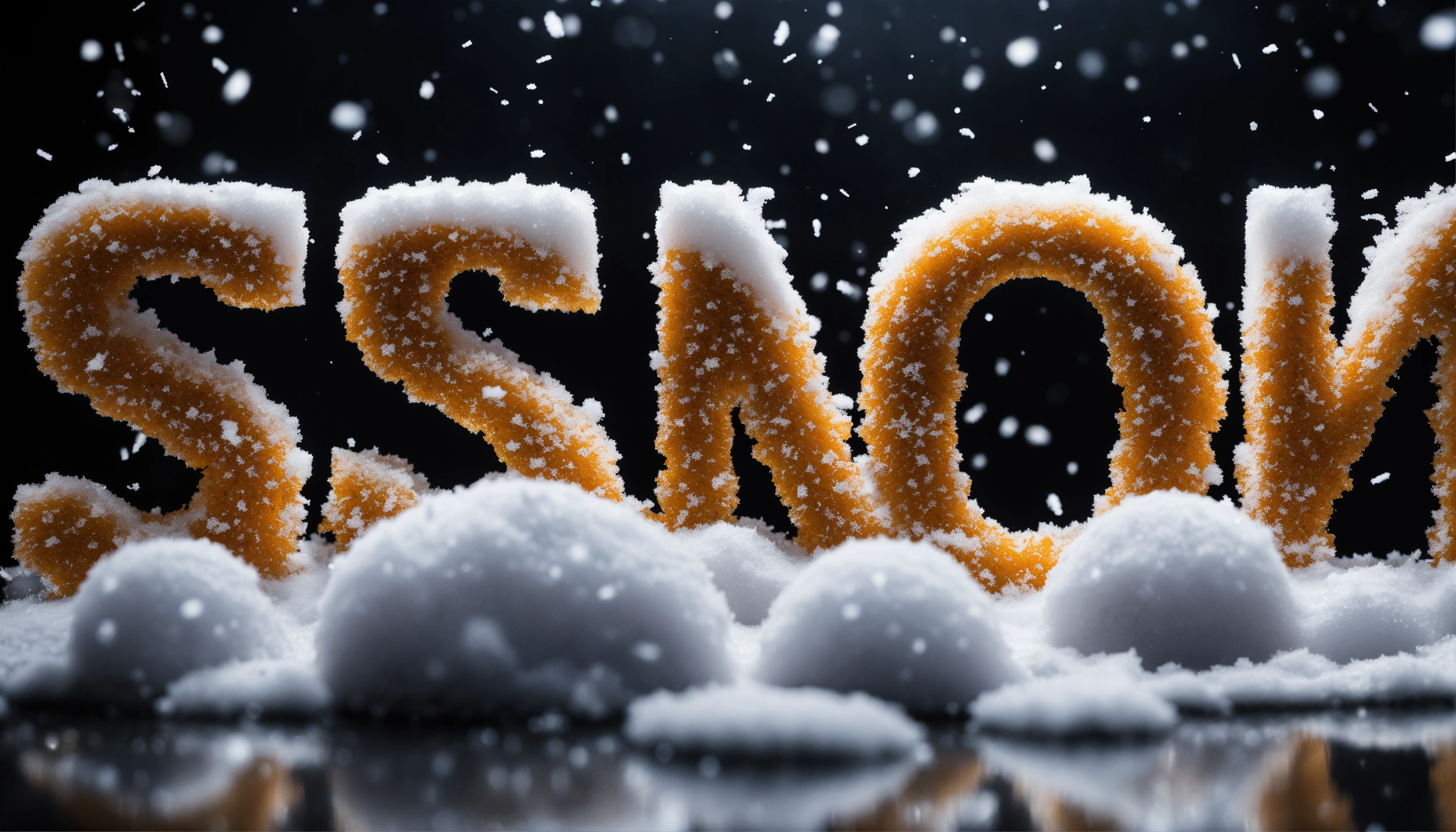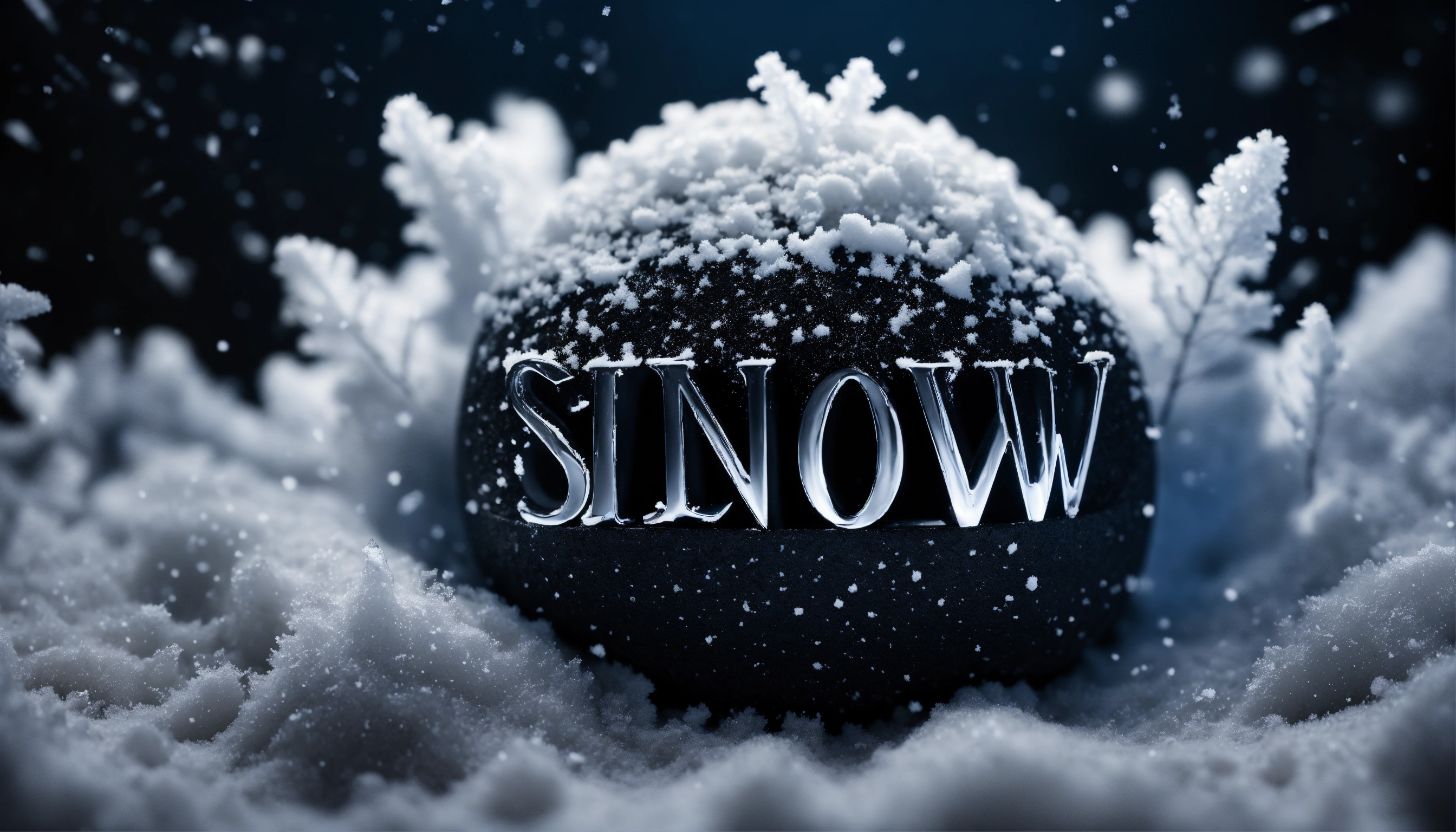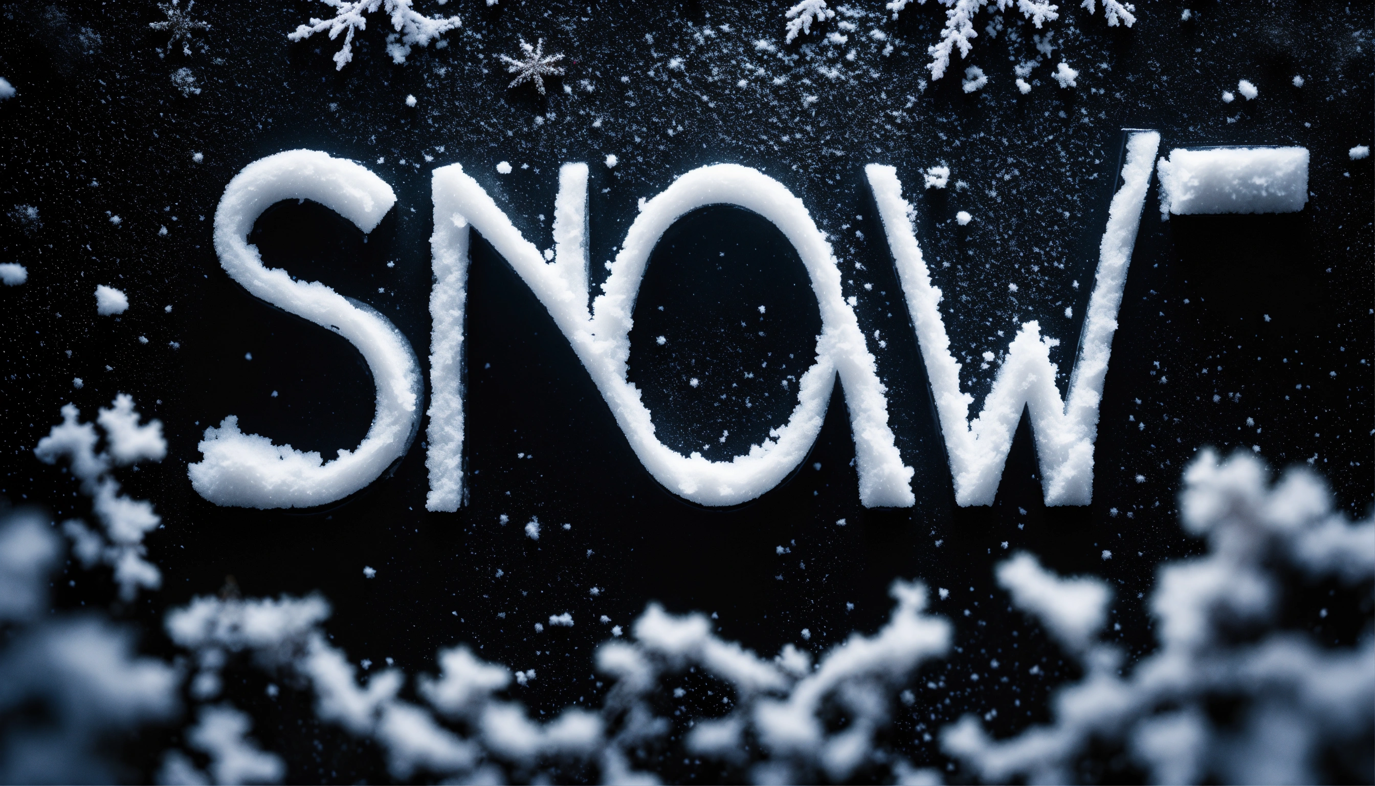 Black background, the word snow made of snow in 3d 4k resolution detailed, miki asai macro photography, close-up, hyper detailed, trending on artstation, sharp focus, studio photo, intricate details, highly detailed, by greg rutkowski