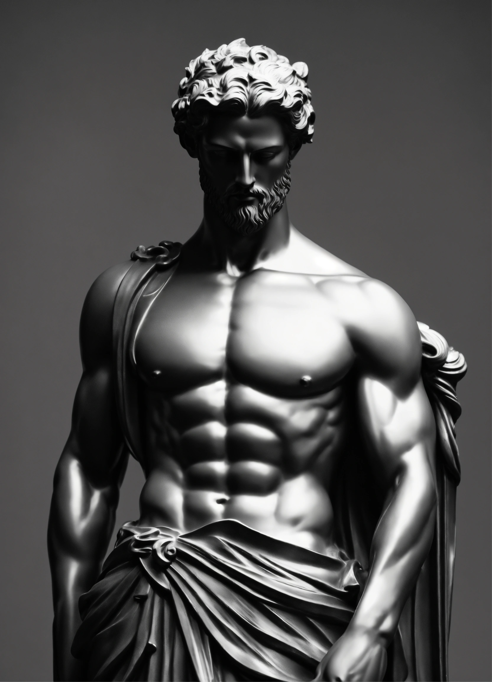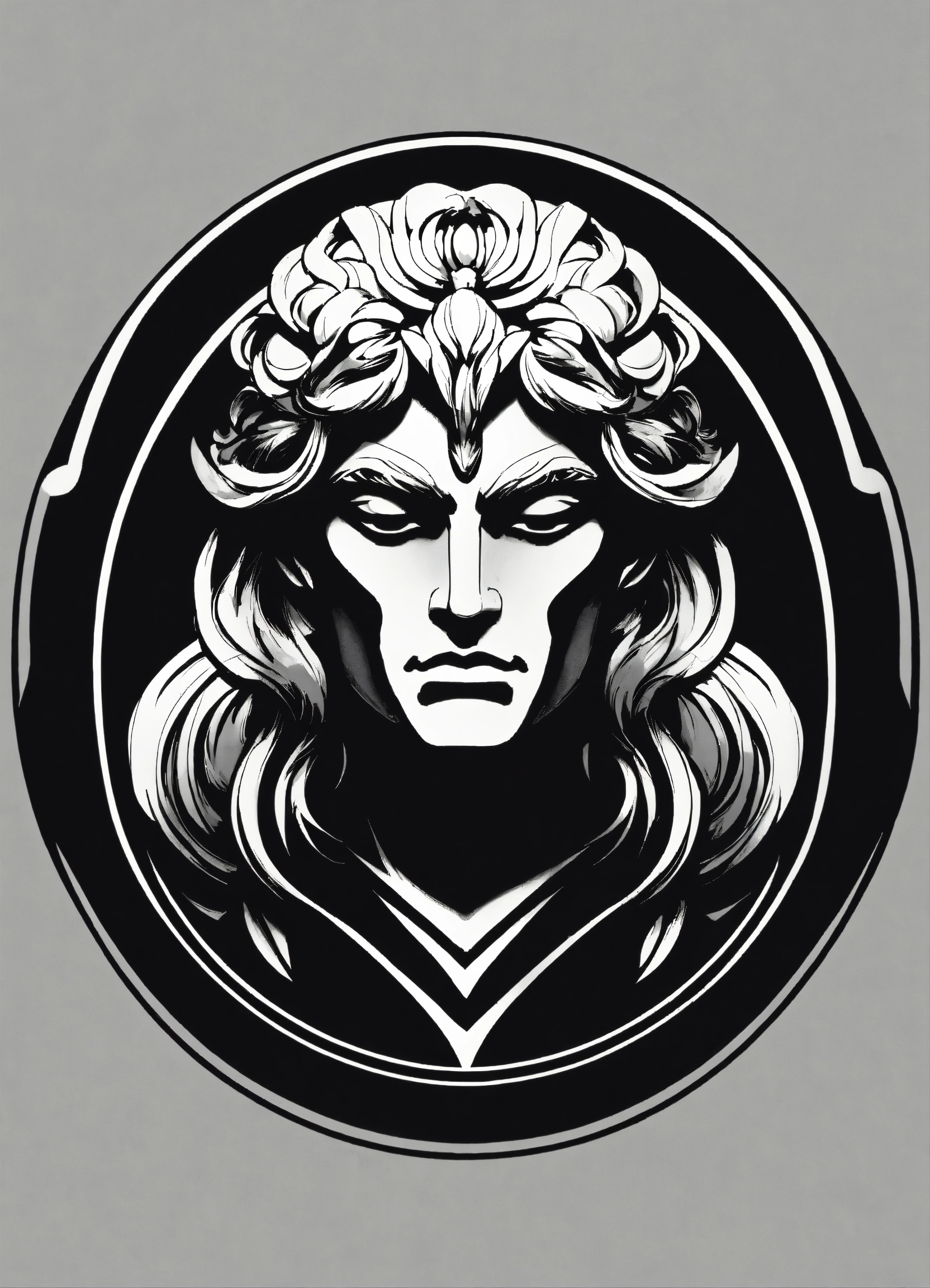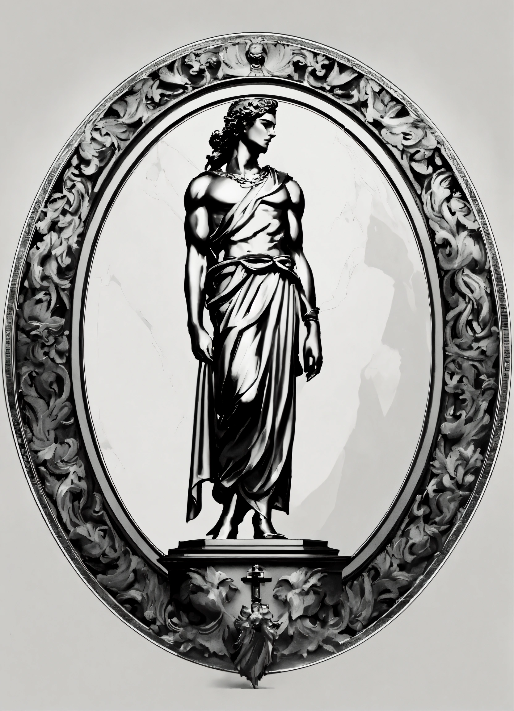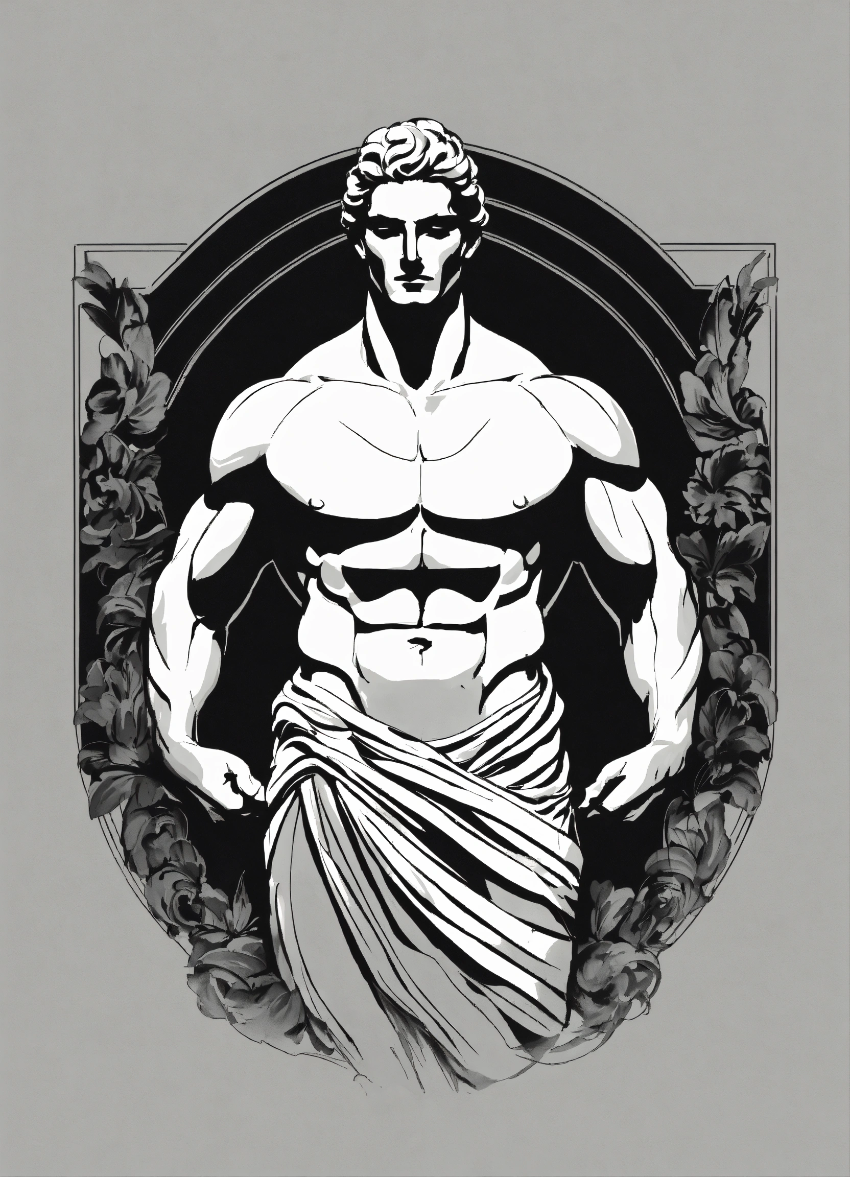 Create a sleek logo for the upscale fashion brand 'myxnt, ' with a greek god on it. black and white symple icon of a statue with muscels and middel parting hair drawn