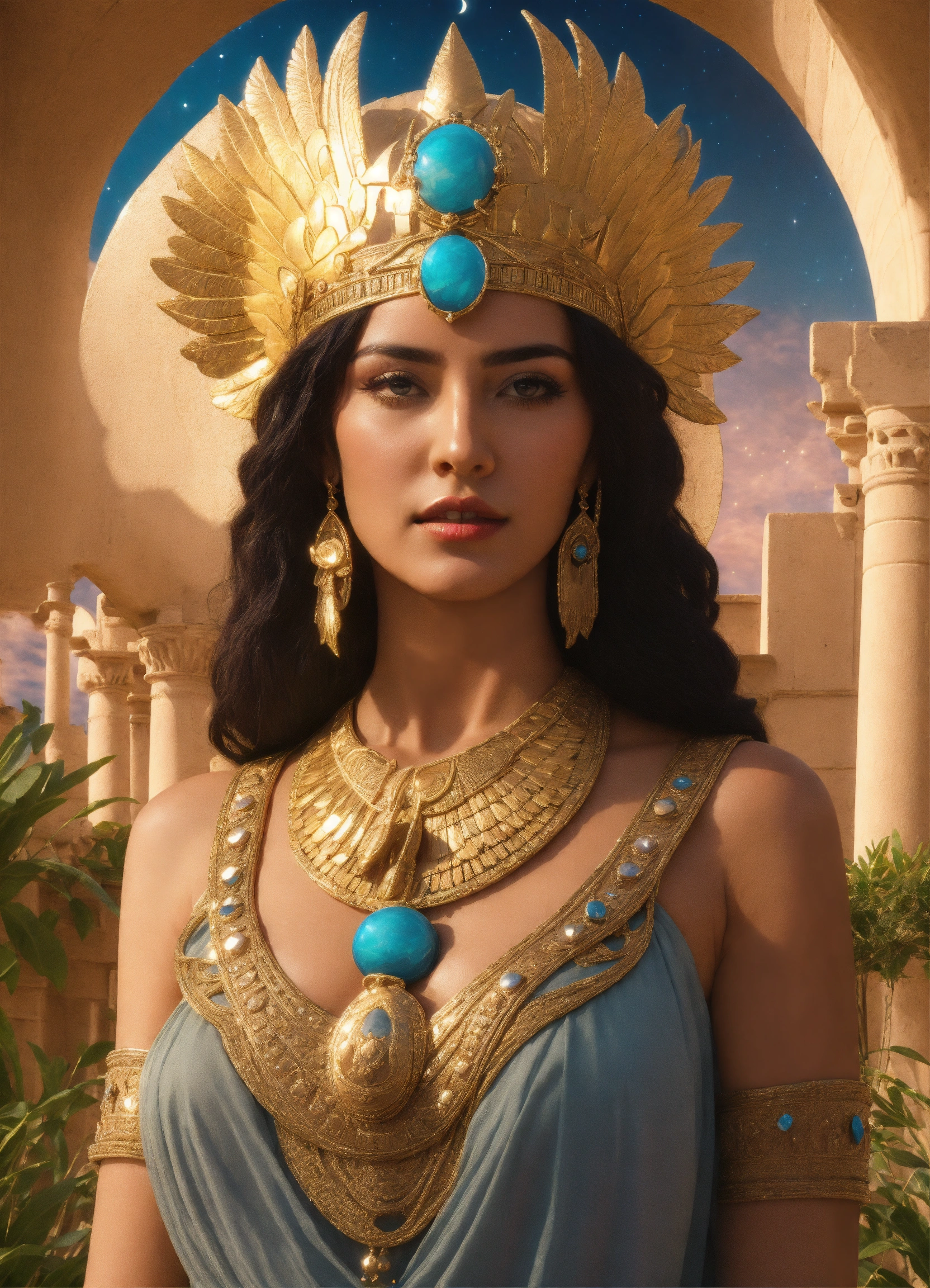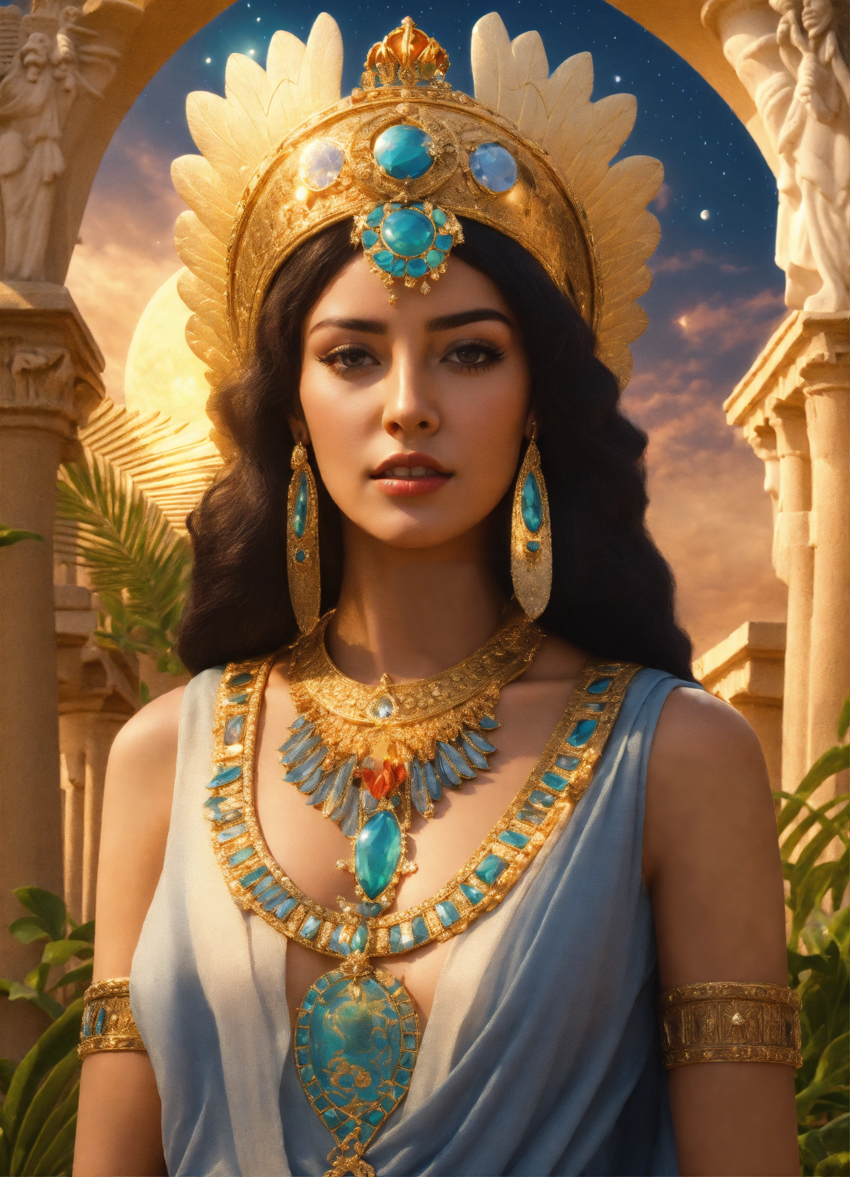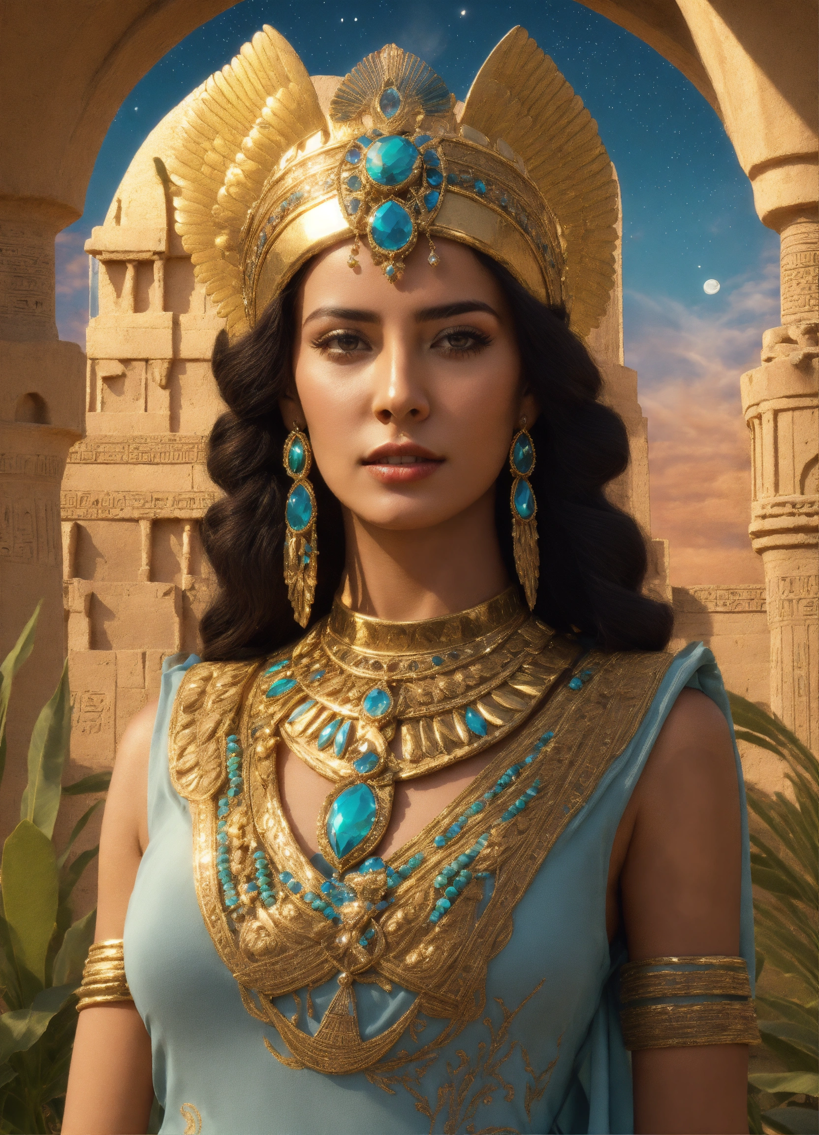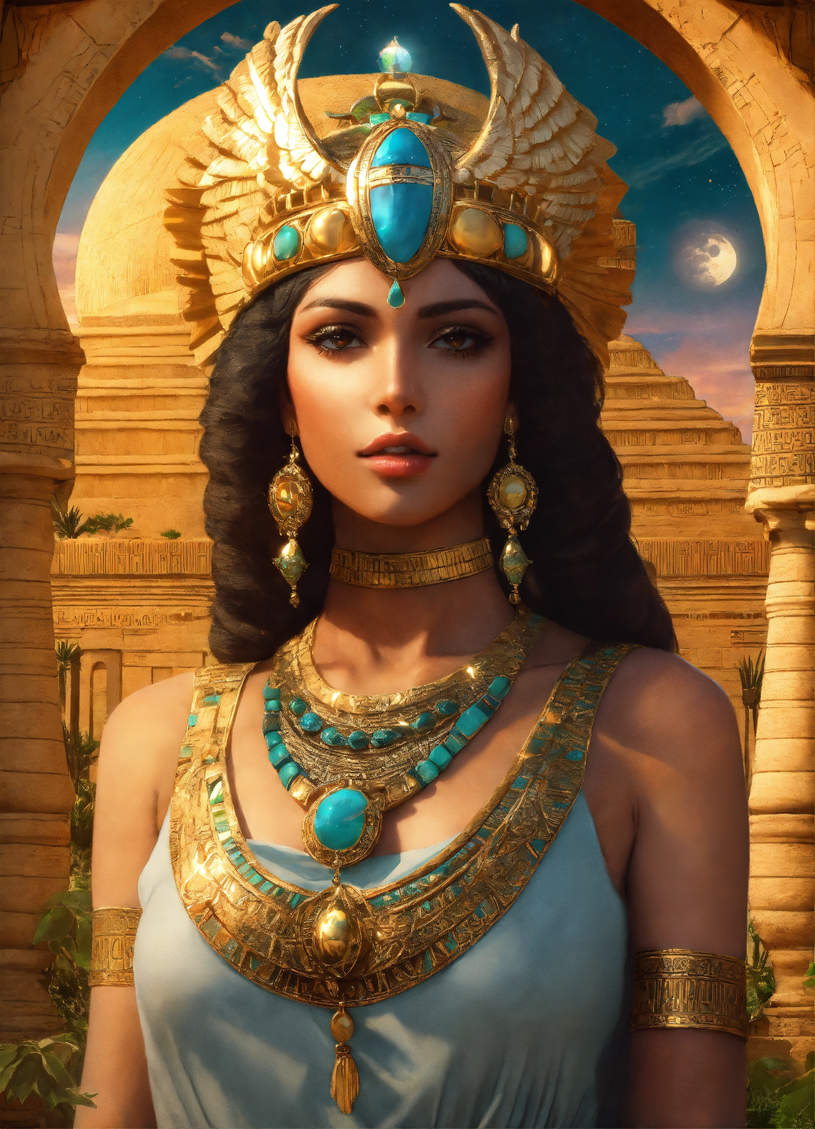 Goddess luxury north africa moon sun beautiful magic love photo realistic woman winged gorgeous beauty crown palace garden egypt isis
