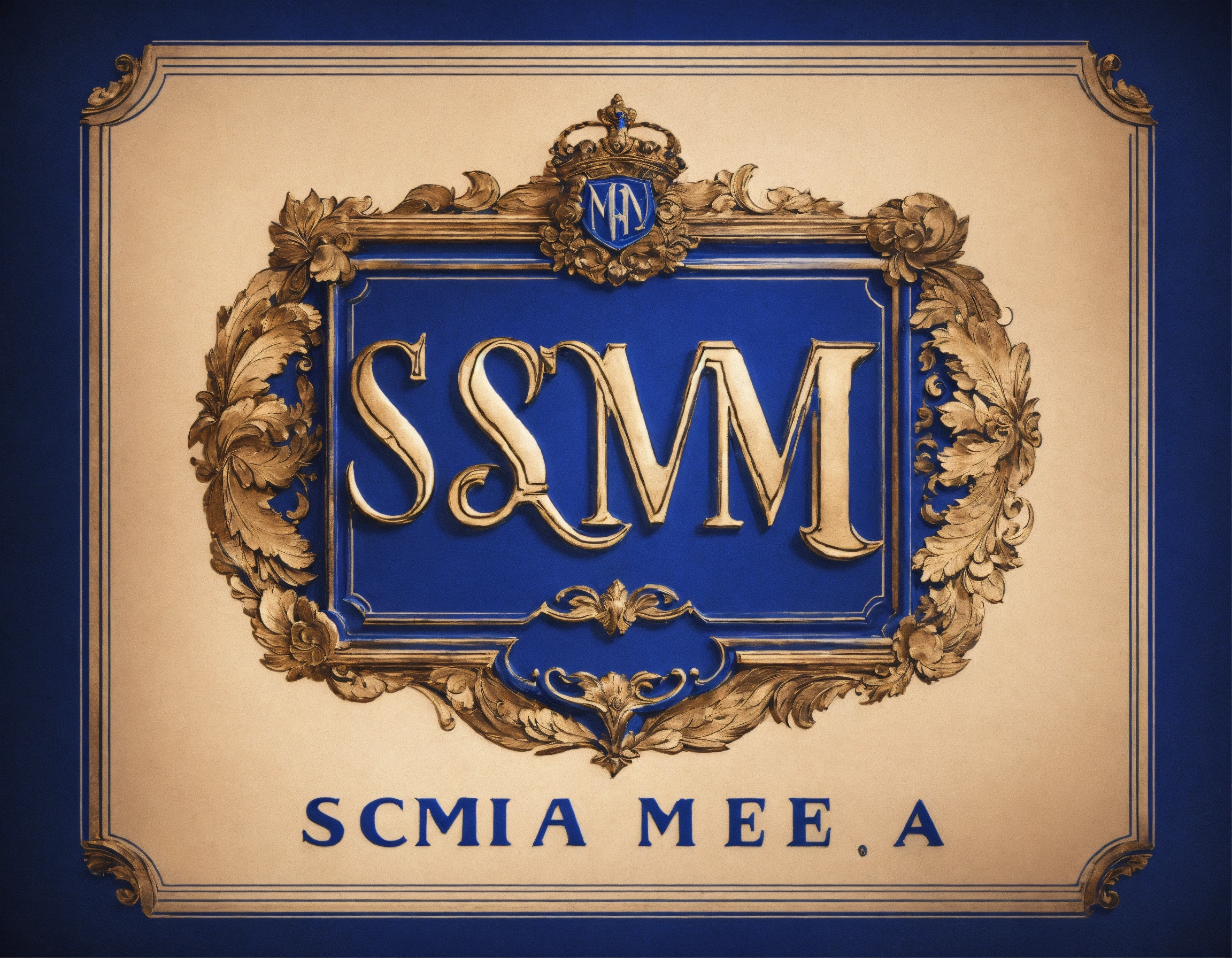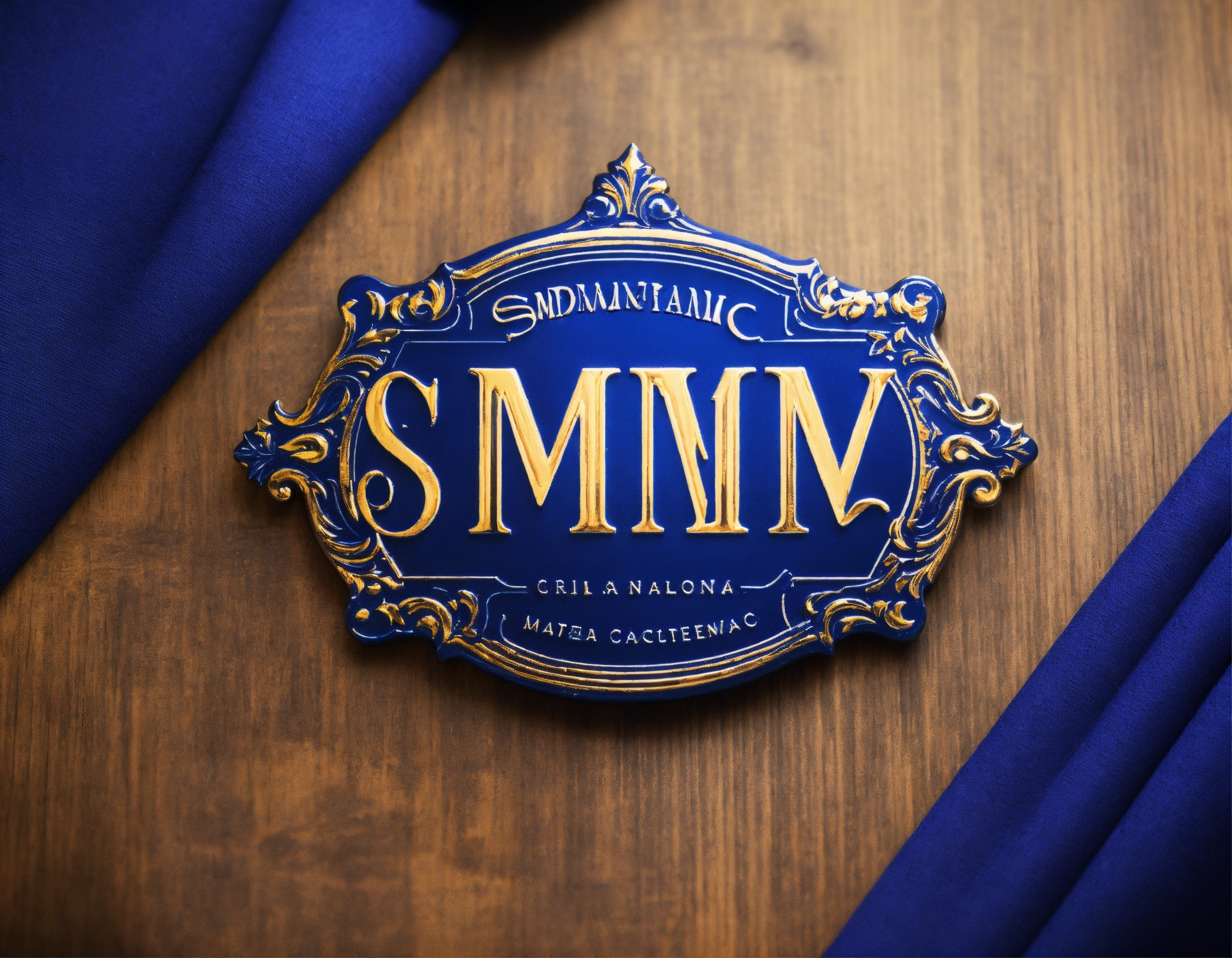 Create a vintage logo for social media featuring the letters "smm" and the company name "socmediamarketing", use vibrant shades of royal blue