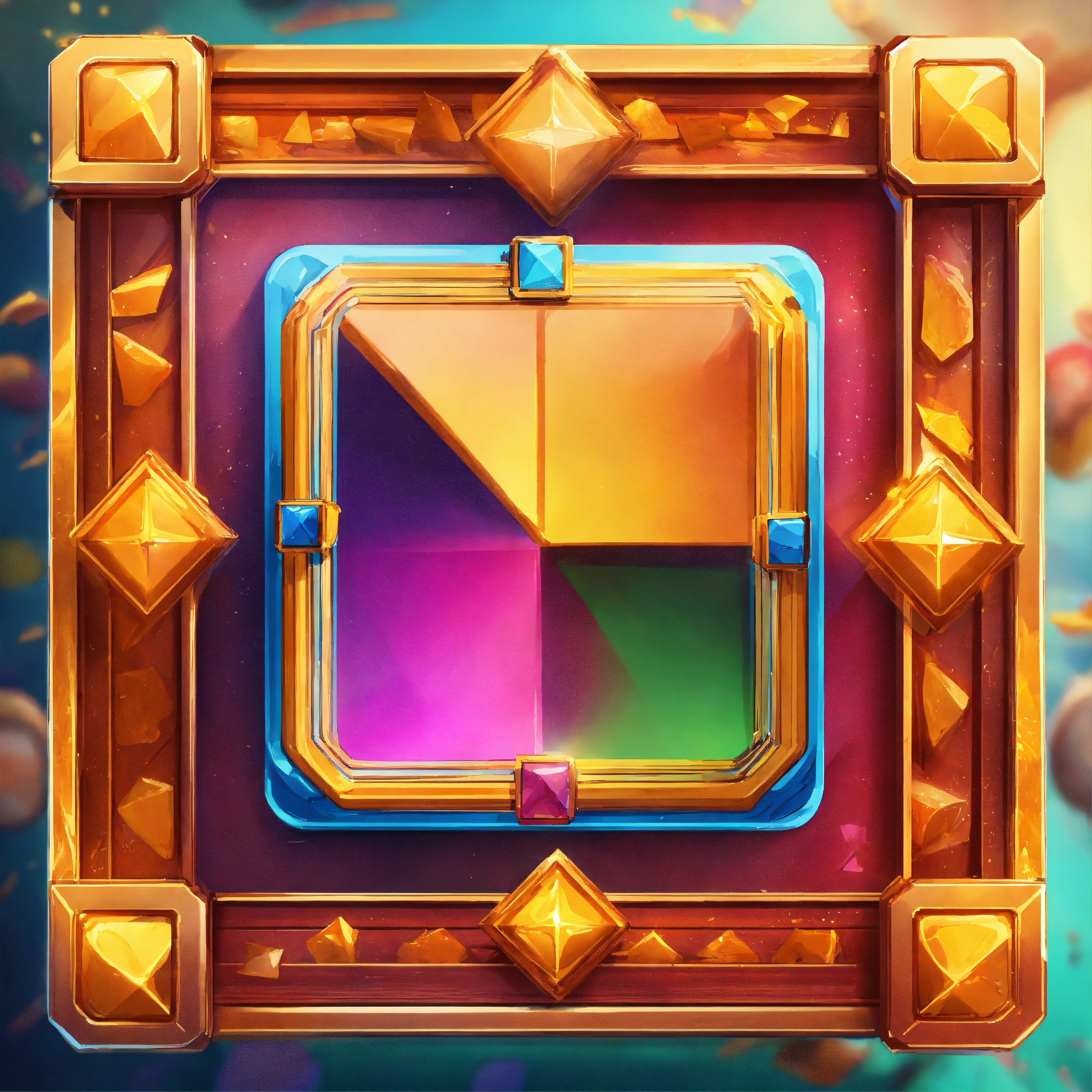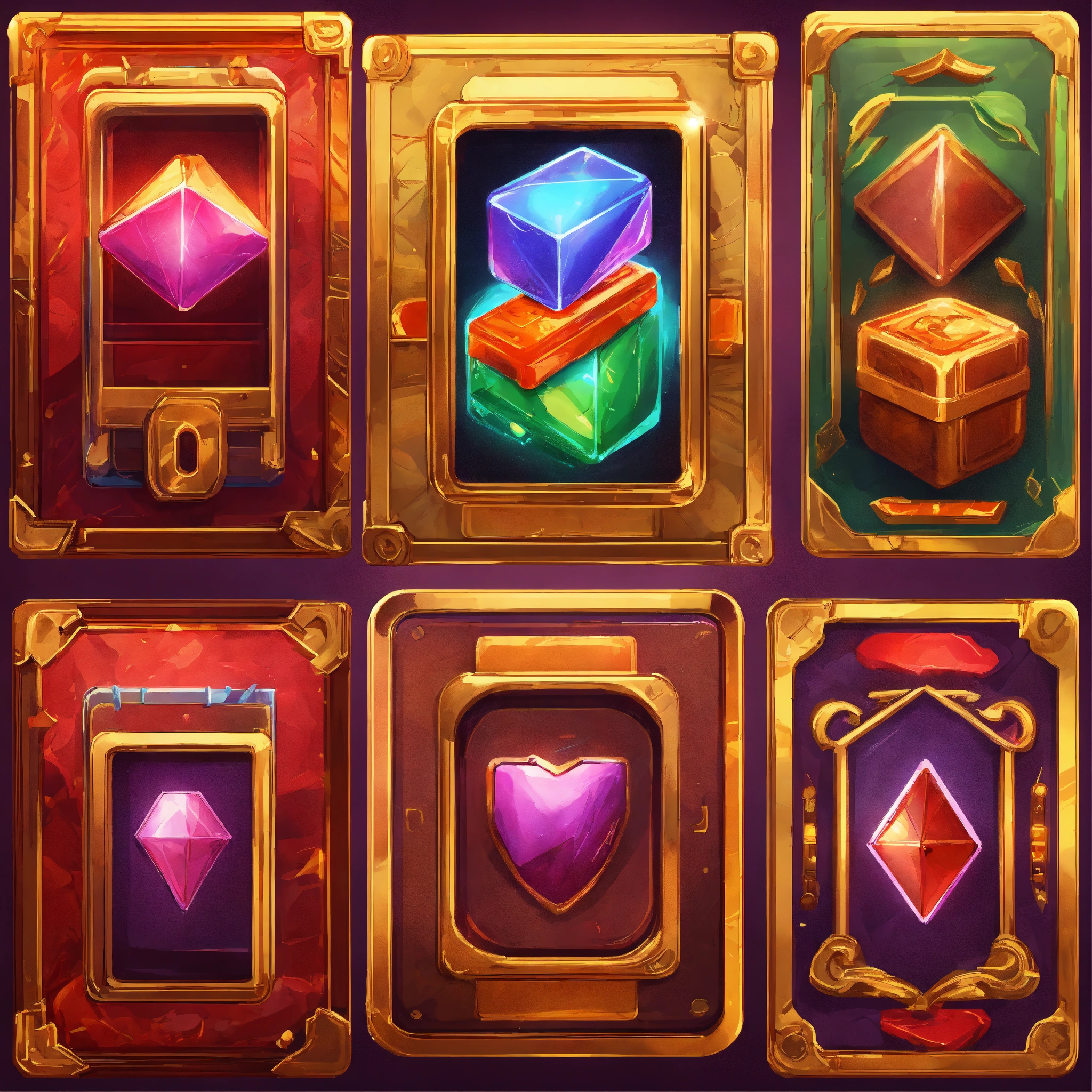 Square frame slot game cards symbols, realistic illustration style, sharp focus, bright color, clear digital paint design, trending on artstation, high details, simple lines