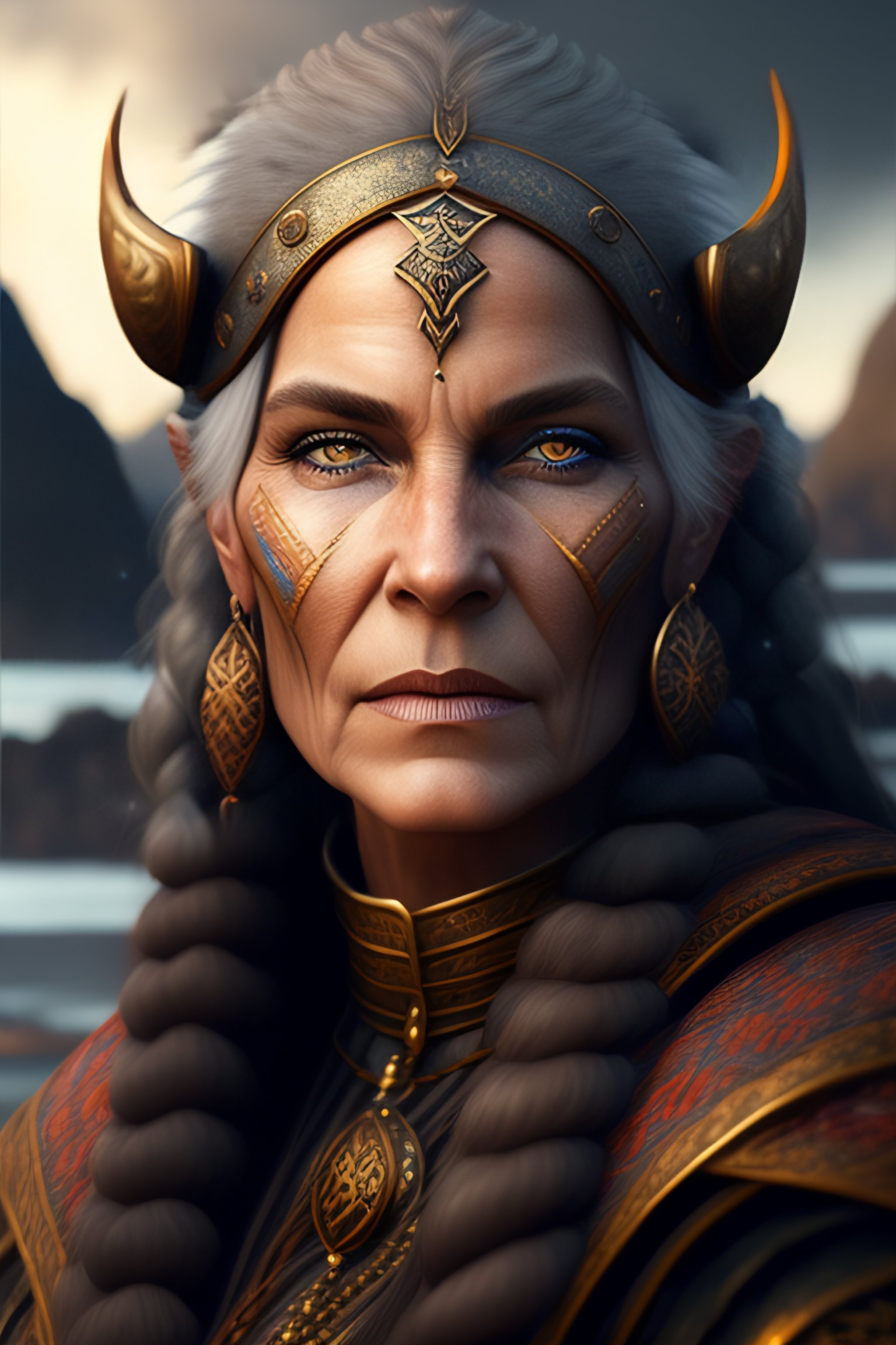 Old viking woman, beautiful, realistic face, hyperdetailed, matte painting, deep color, fantastical, intricate detail, splash screen, complementary colors, fantasy concept art, 8k resolution trending on artstation unreal engine 5, symmetrical, ☯️ ⚛