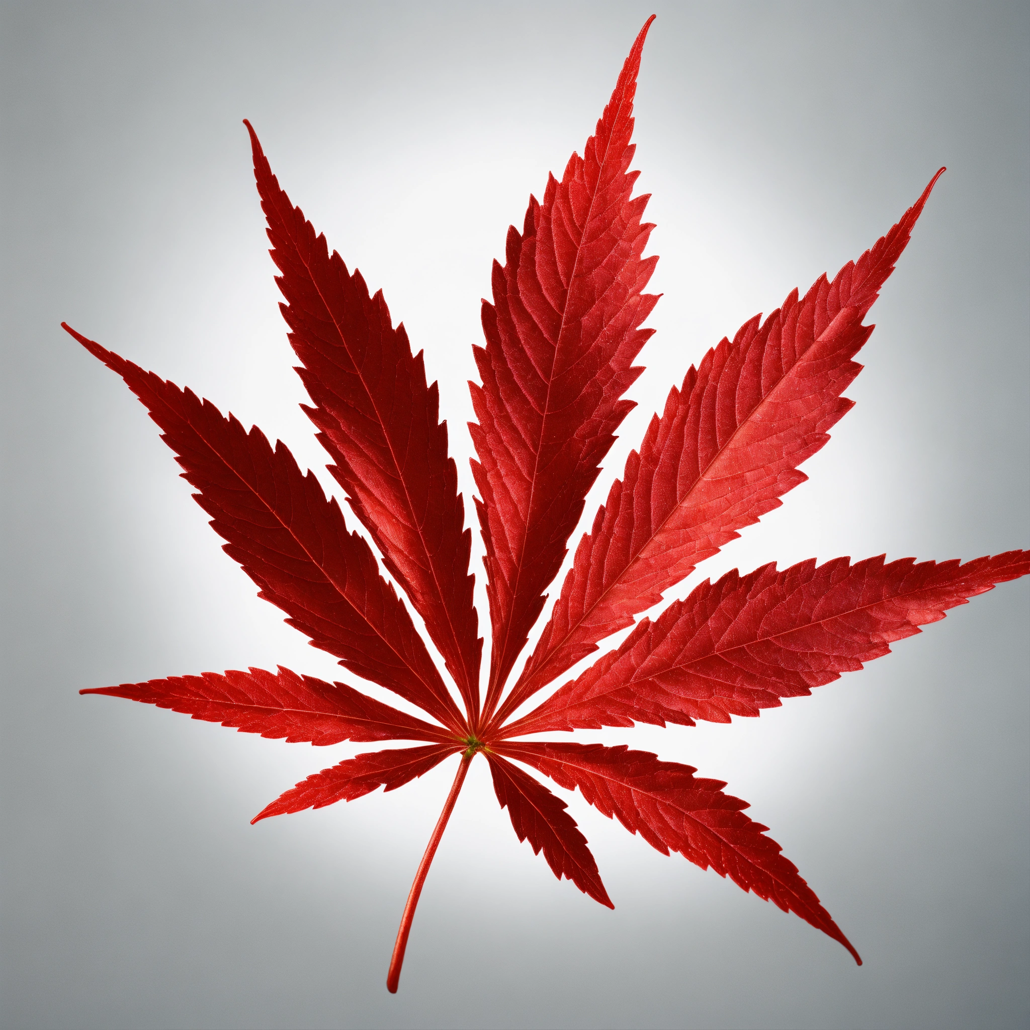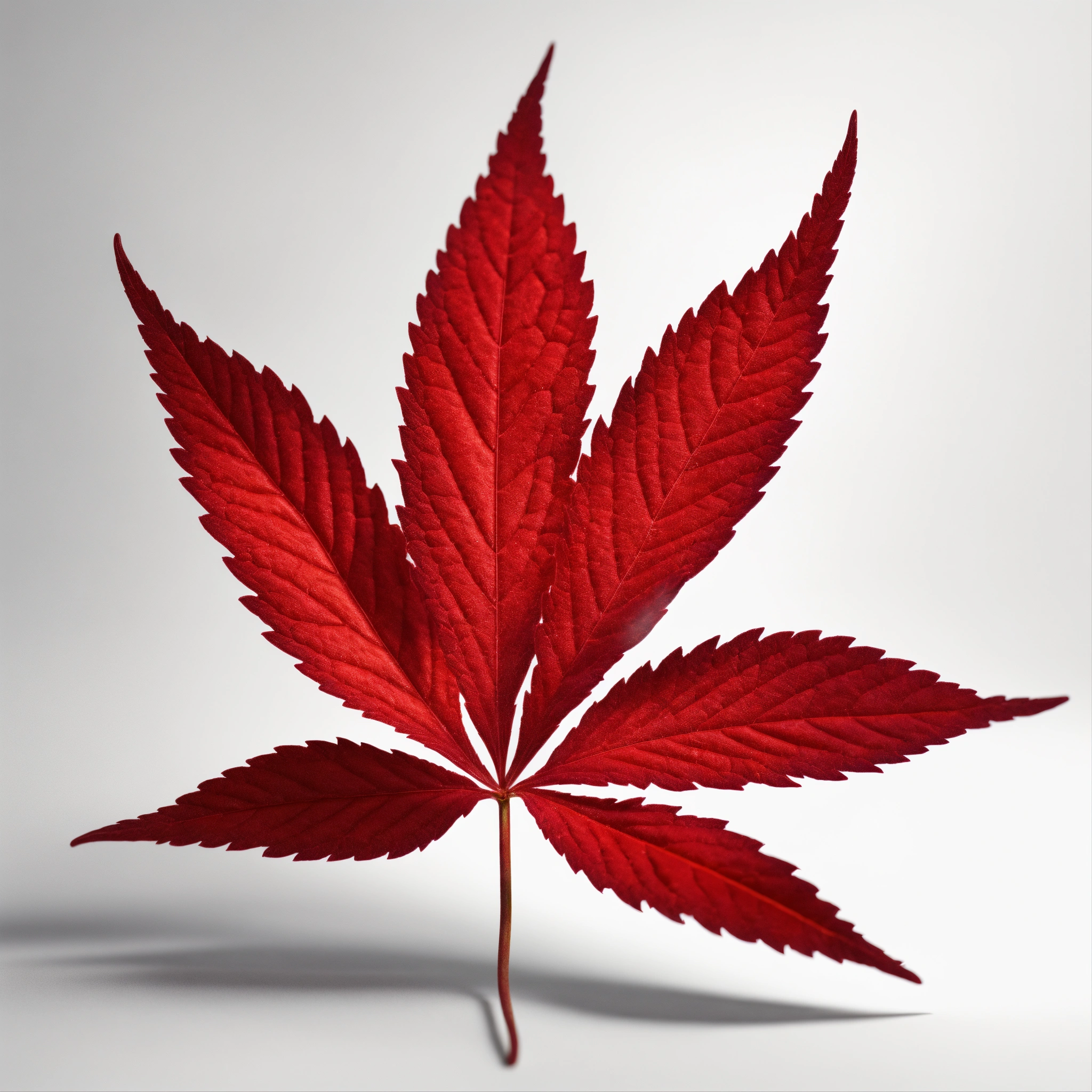Designed by 8k resolution, hyper realistic, detailed render, beautiful red marijuana leaf in center on white background, product photo