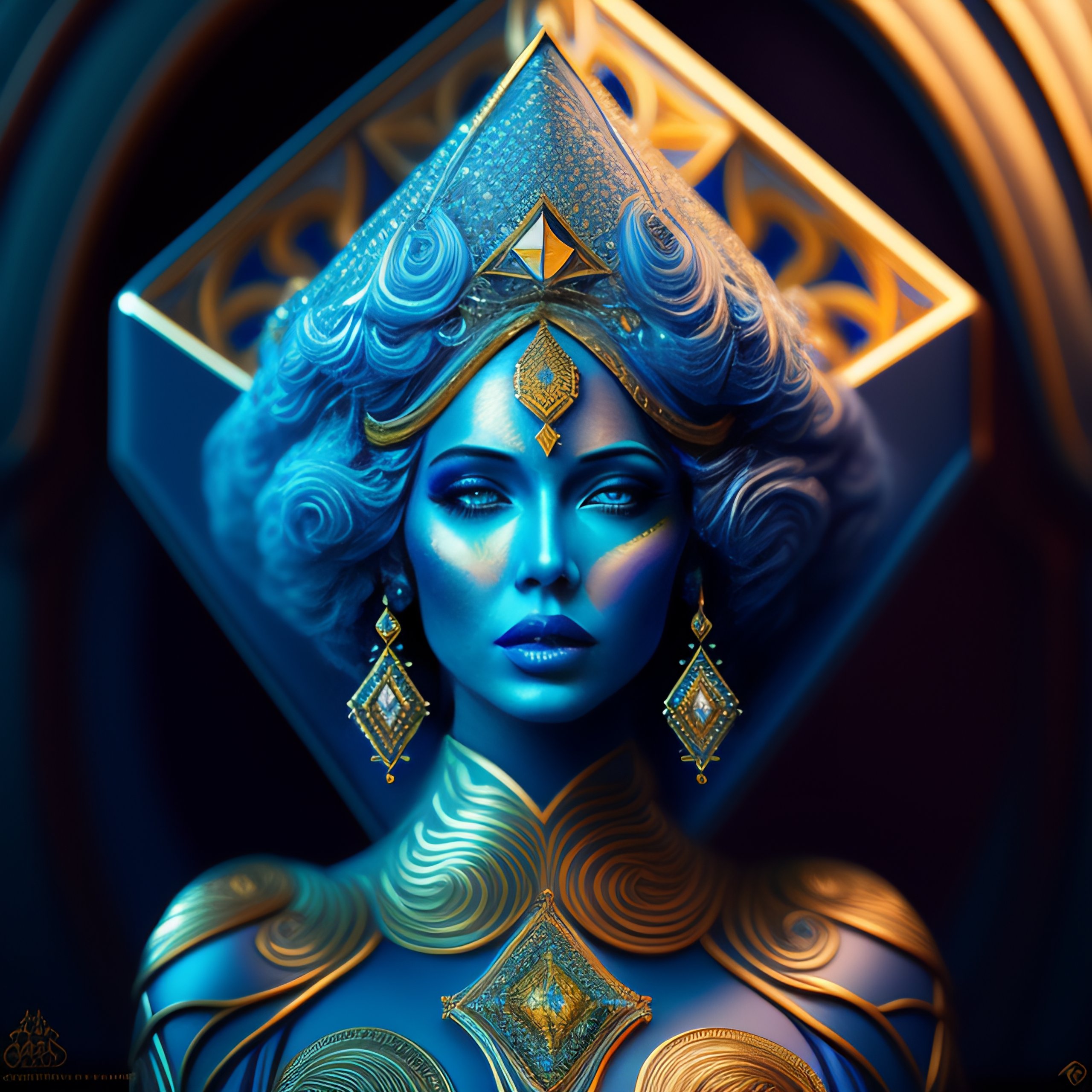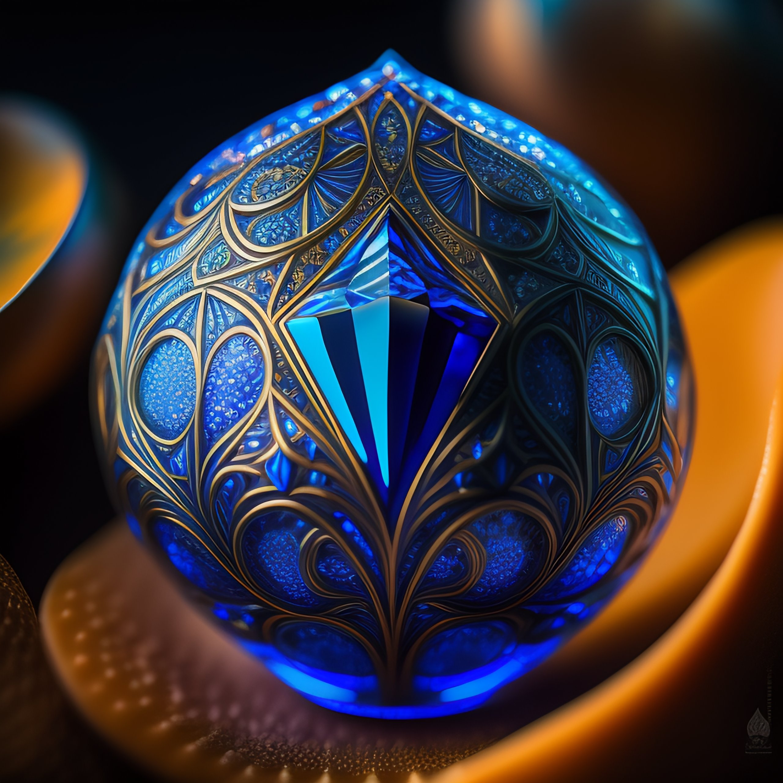 Weird surreal bizarre art deco bas of a blue diamond, by joe fenton, intricate details, dramatic lighting, photorealism, photorealistic, photograph, ultra sharp image, ultra detailed, professional color grading, raytracing, reflective, movie composition, cinematic color scheme, color-correction, postproduction
