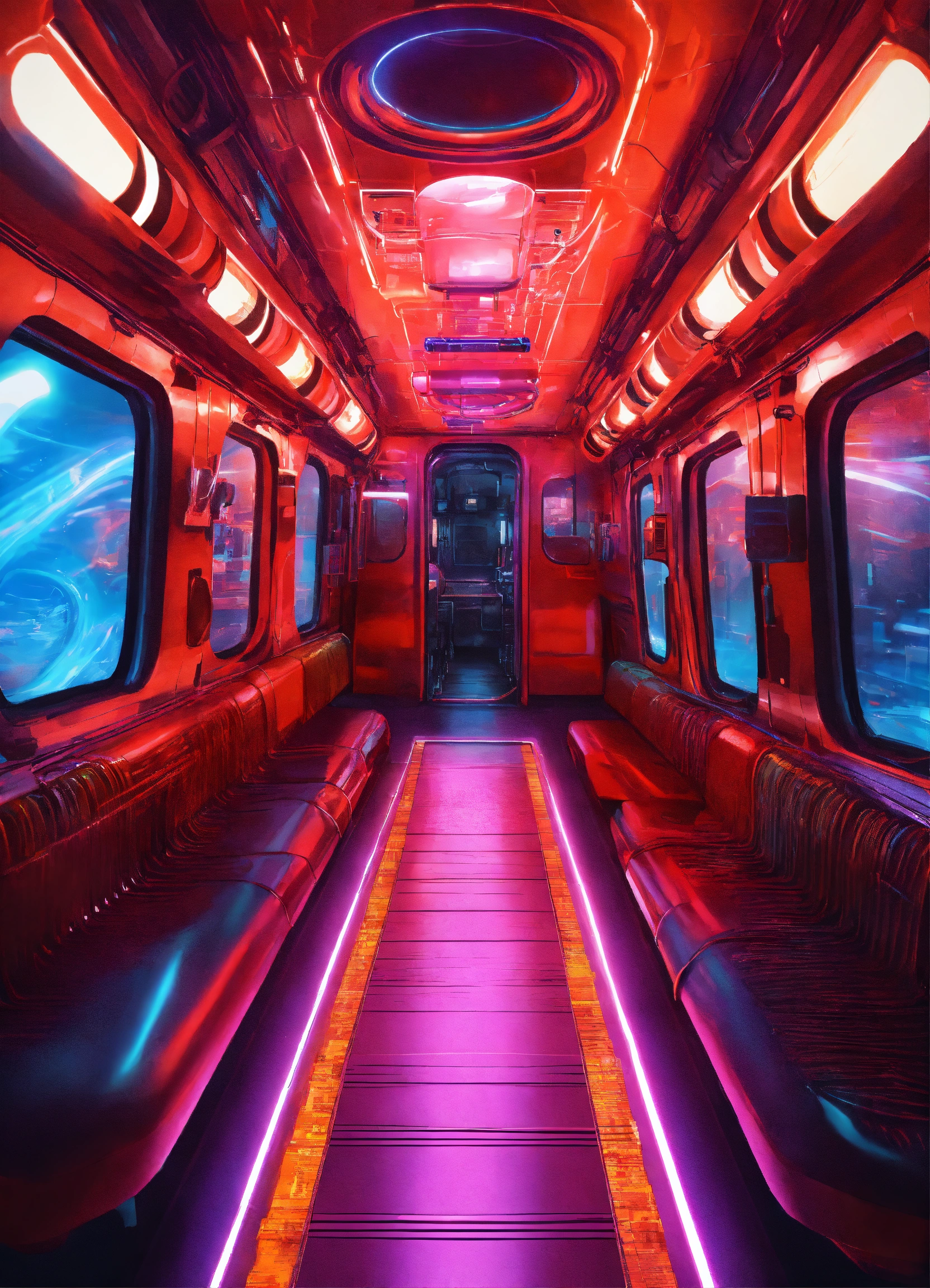 Sci-fi effect poster background, concepts transportation design, vacuum tube train of the future, disfigured, kitsch, ugly, 8k