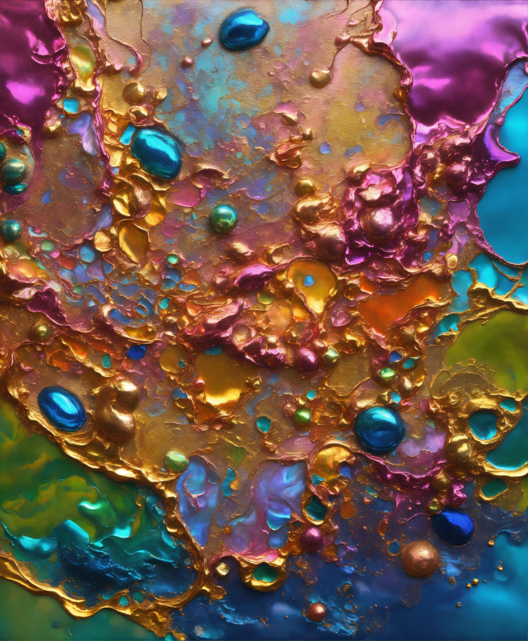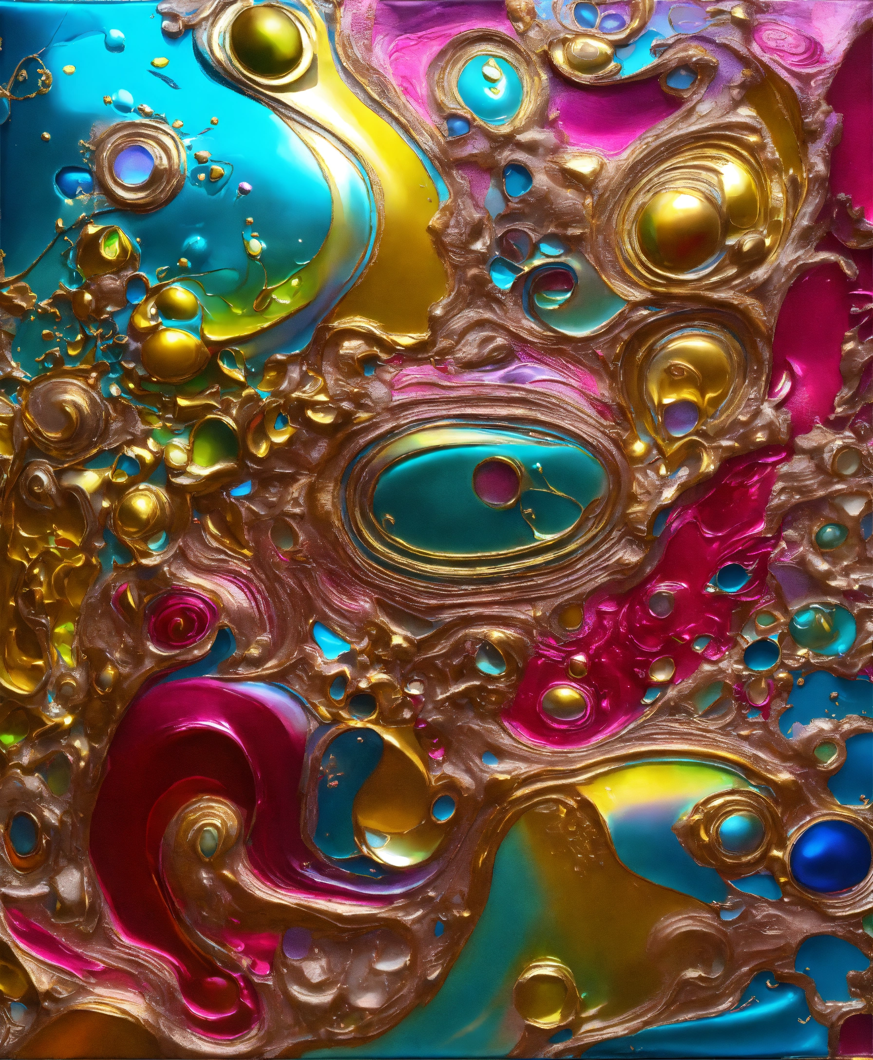 Colorful abstract painting oil and water complex complicated bright vivid colors beautiful opulent wealthy intricate all hues primary secondary and tertiary colors pink peridot sky blue lilac green magenta orange gold silver bronze copper mother of pearl magnificent amazing sublime delicate hyperdetailed masterpiece complex extraordinary metallic sheen elaborate awesome 24k bright gold and silver trims everywhere oil and water abstract art 24k gold trim everywhere neon colors glossy satin pearlized finish hyperdetailed 3d 12k