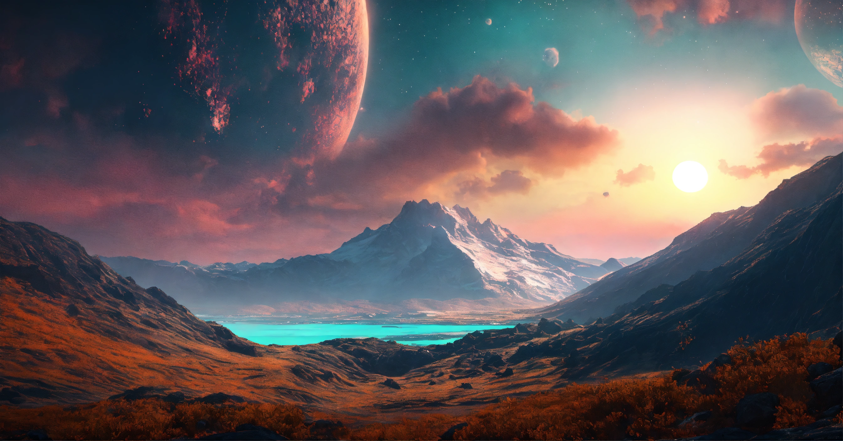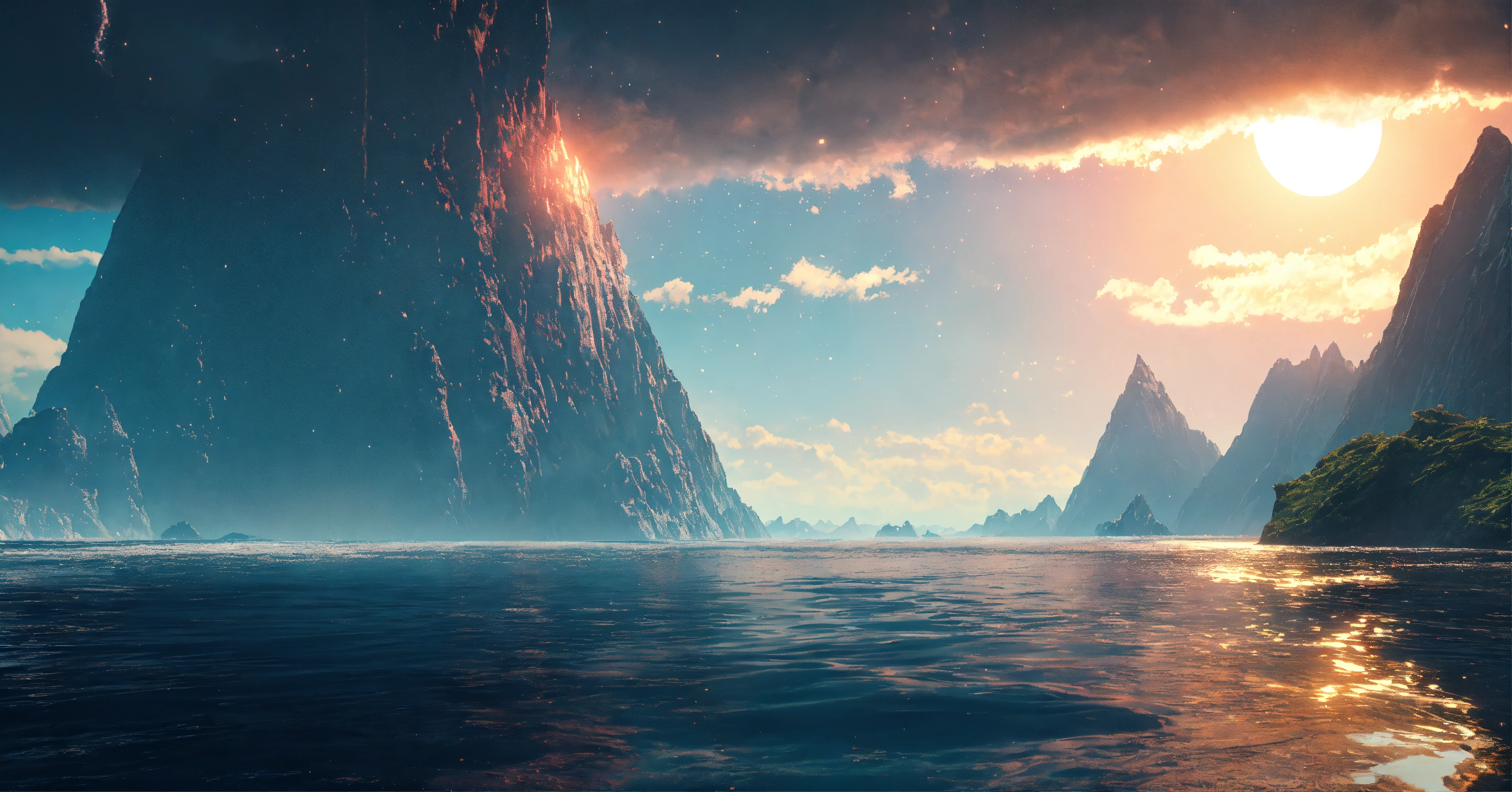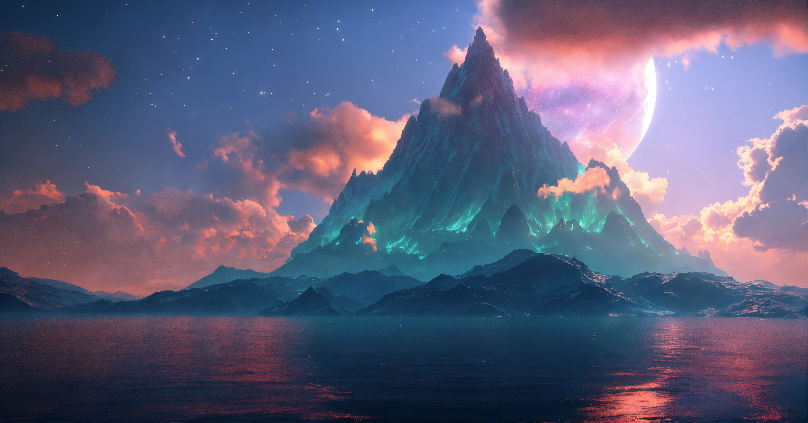 Being reincarnated into a ocean world, sky nebula, artstation scifi 3d scene of a showing mountains, maximalism, ambient occlusion, atmospheric haze, unreal engine, hyper realism, realistic shading, cinematic composition, realistic render, octane render, detailed textures, photorealistic, wide shot