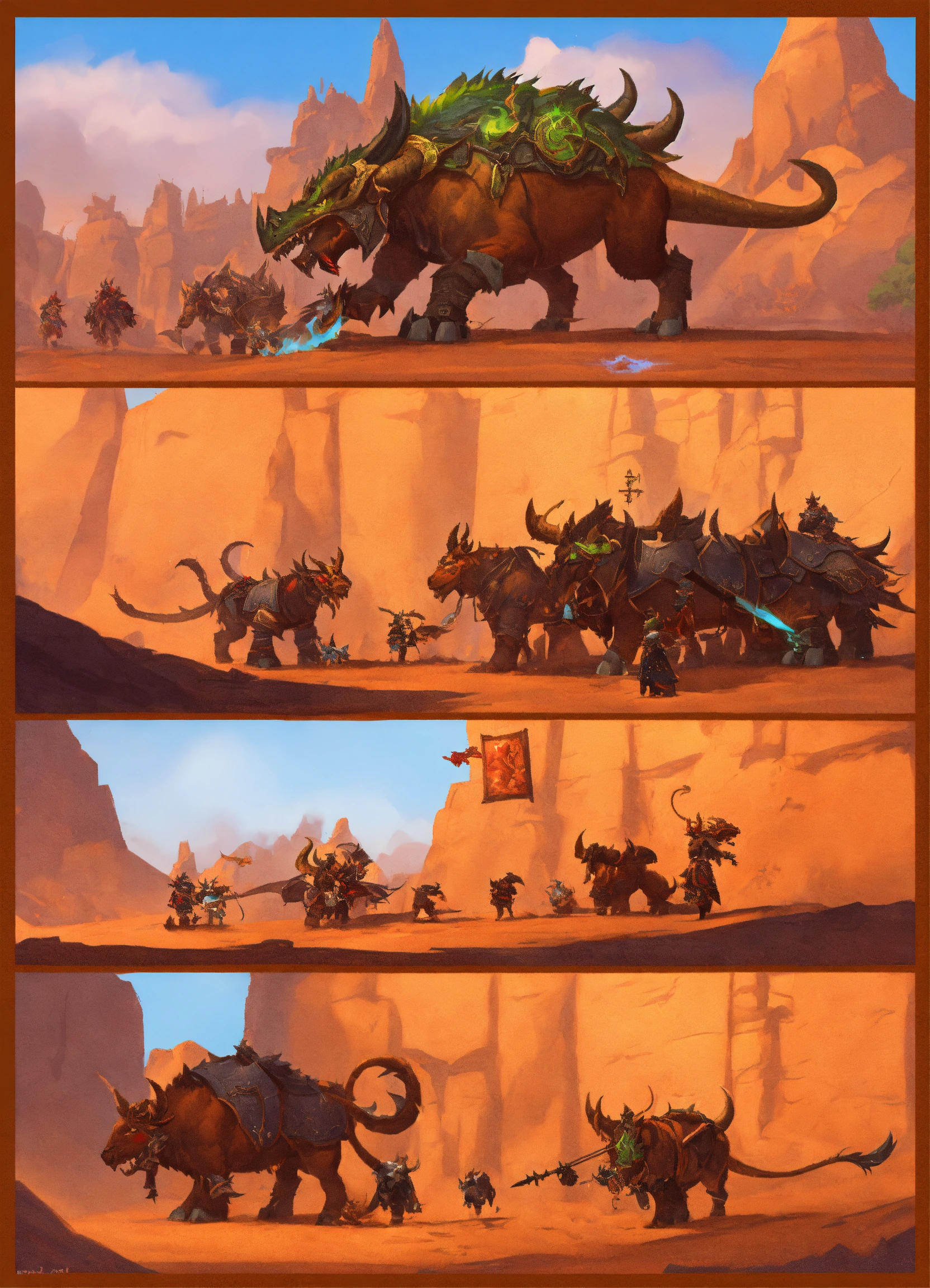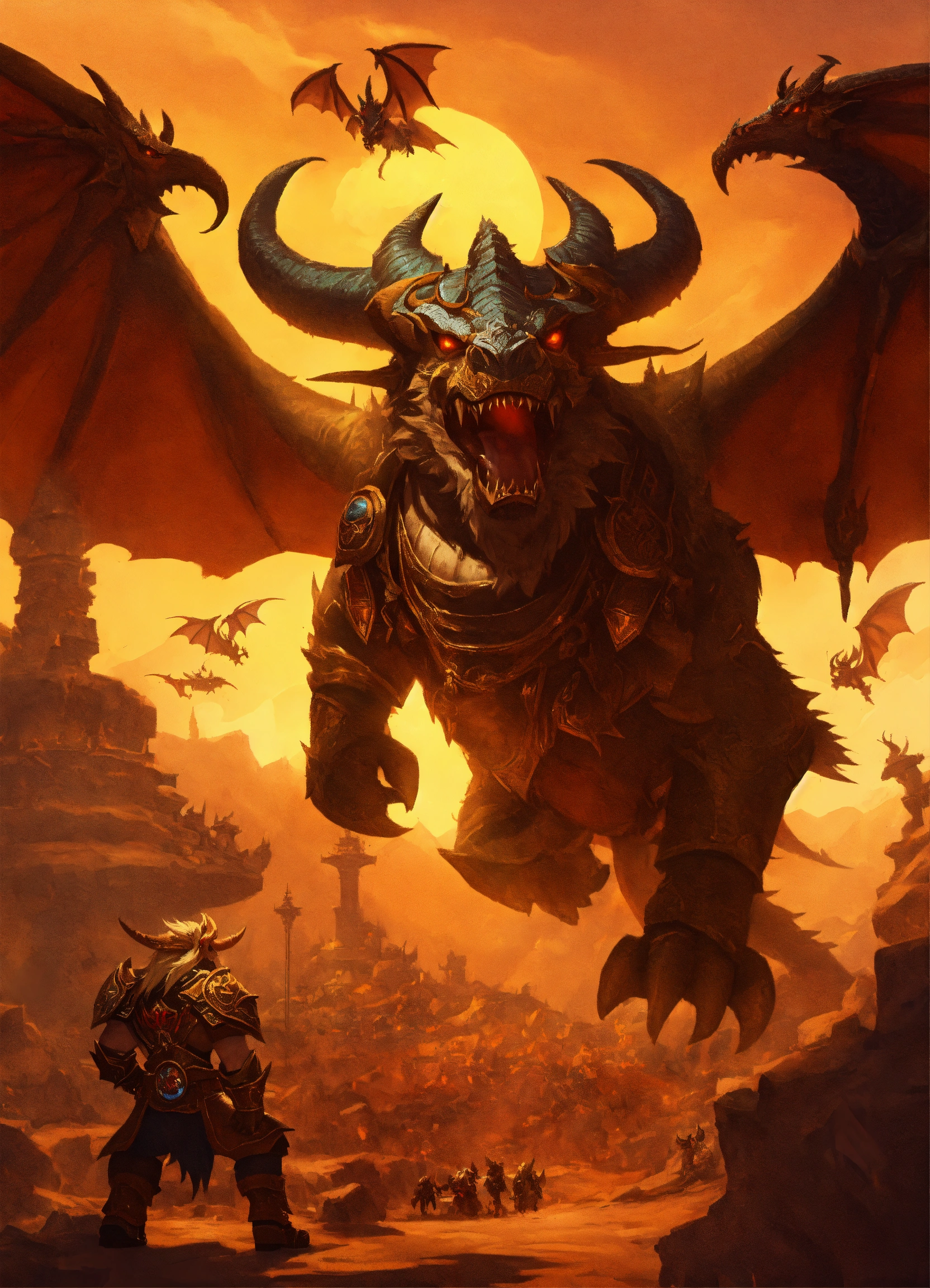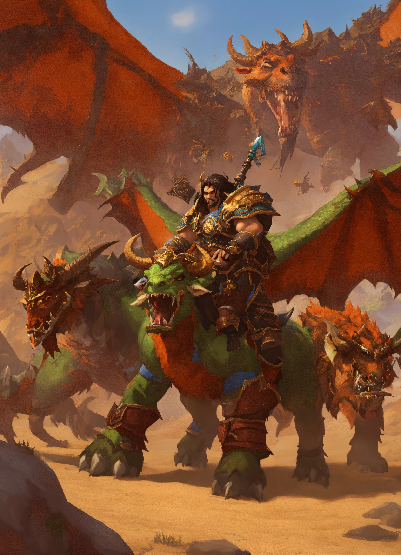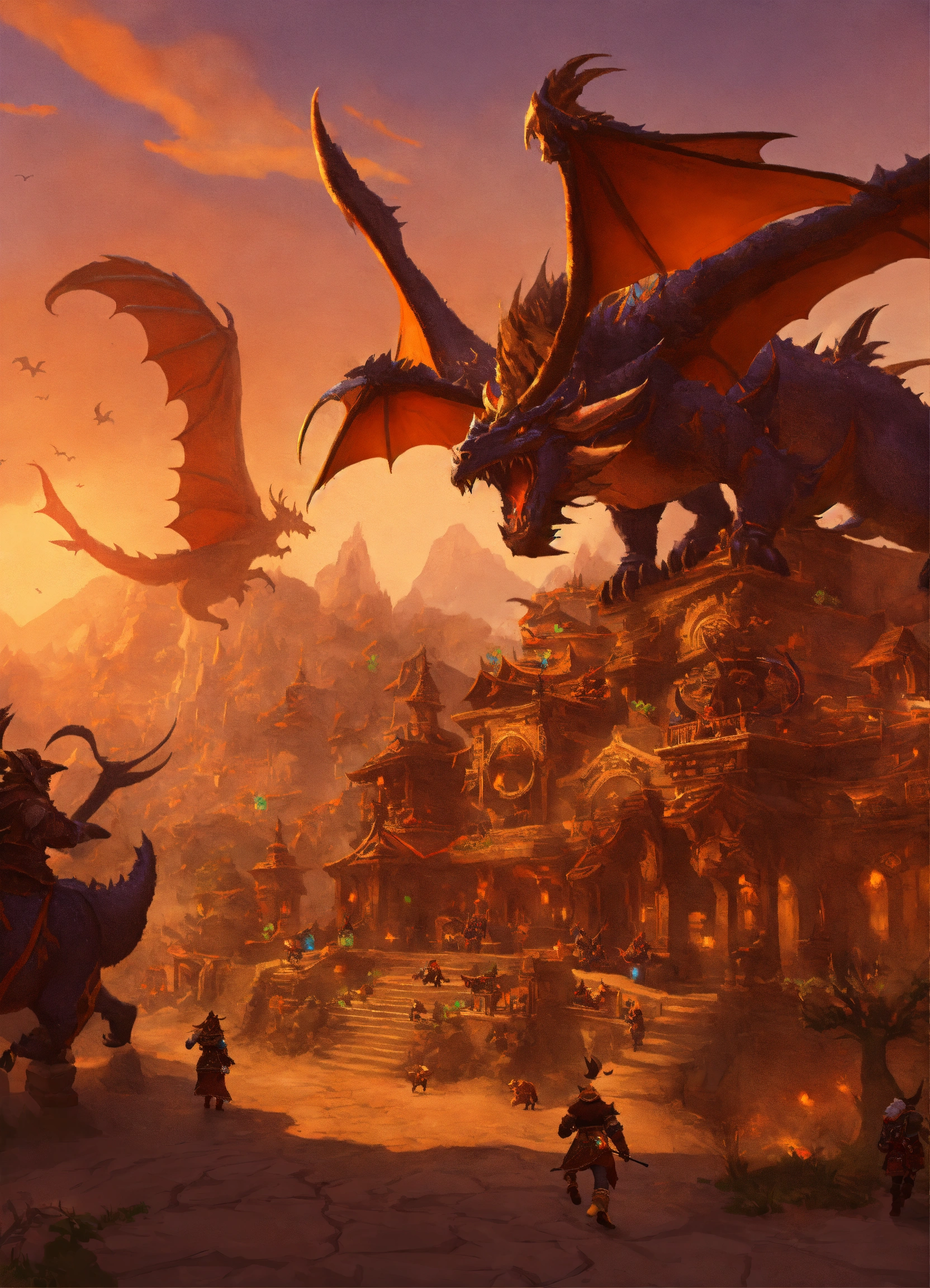 World of warcraft with dragons and tauren in orgrimmar