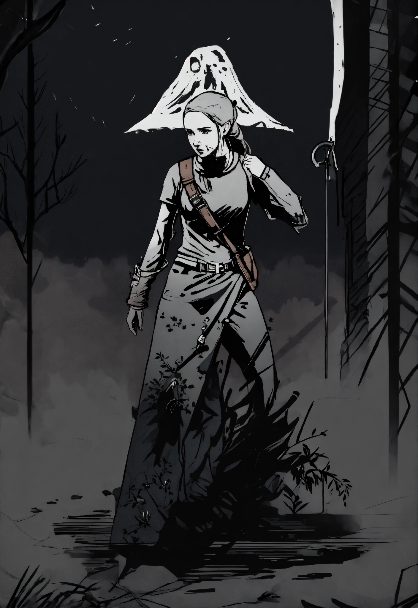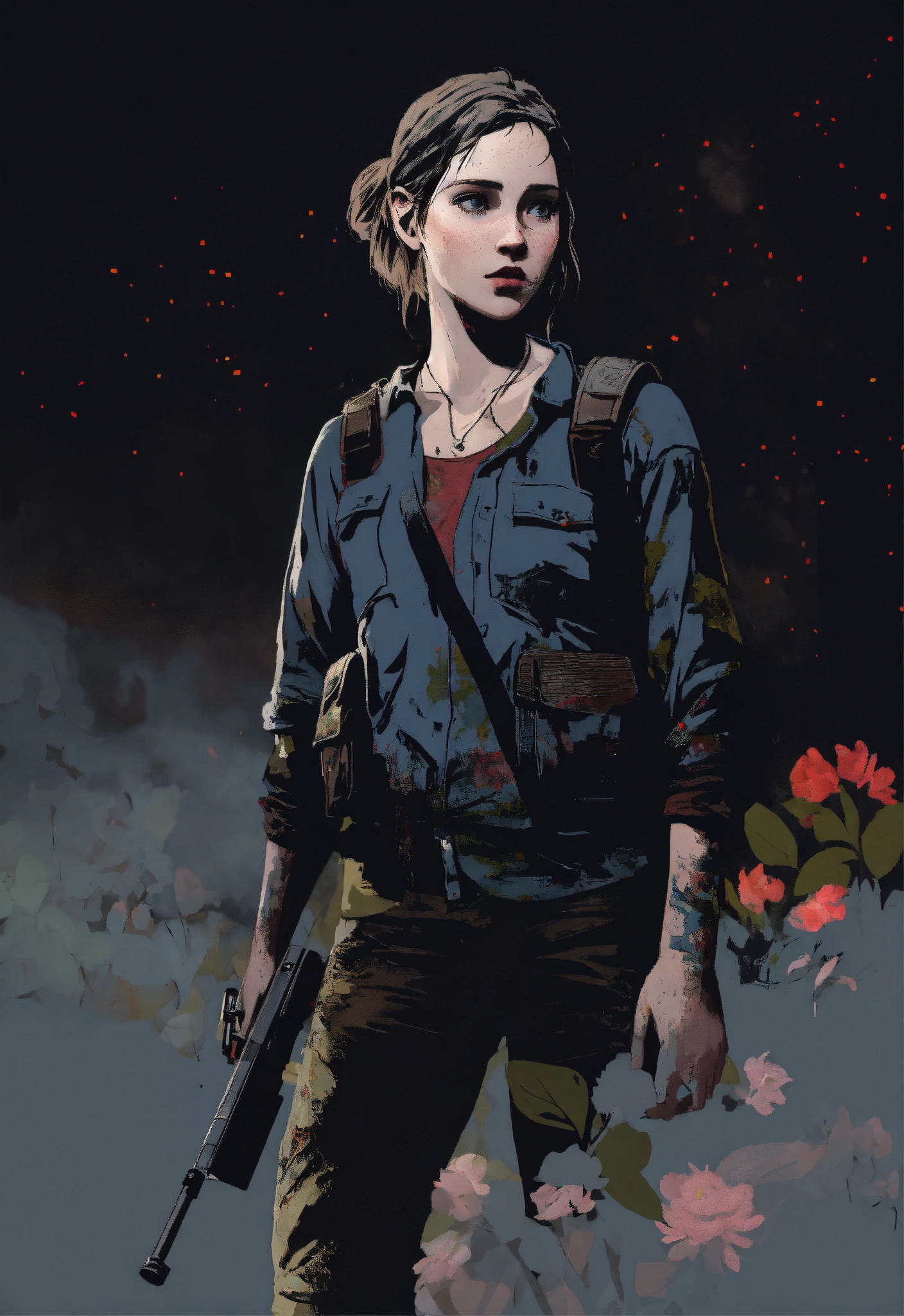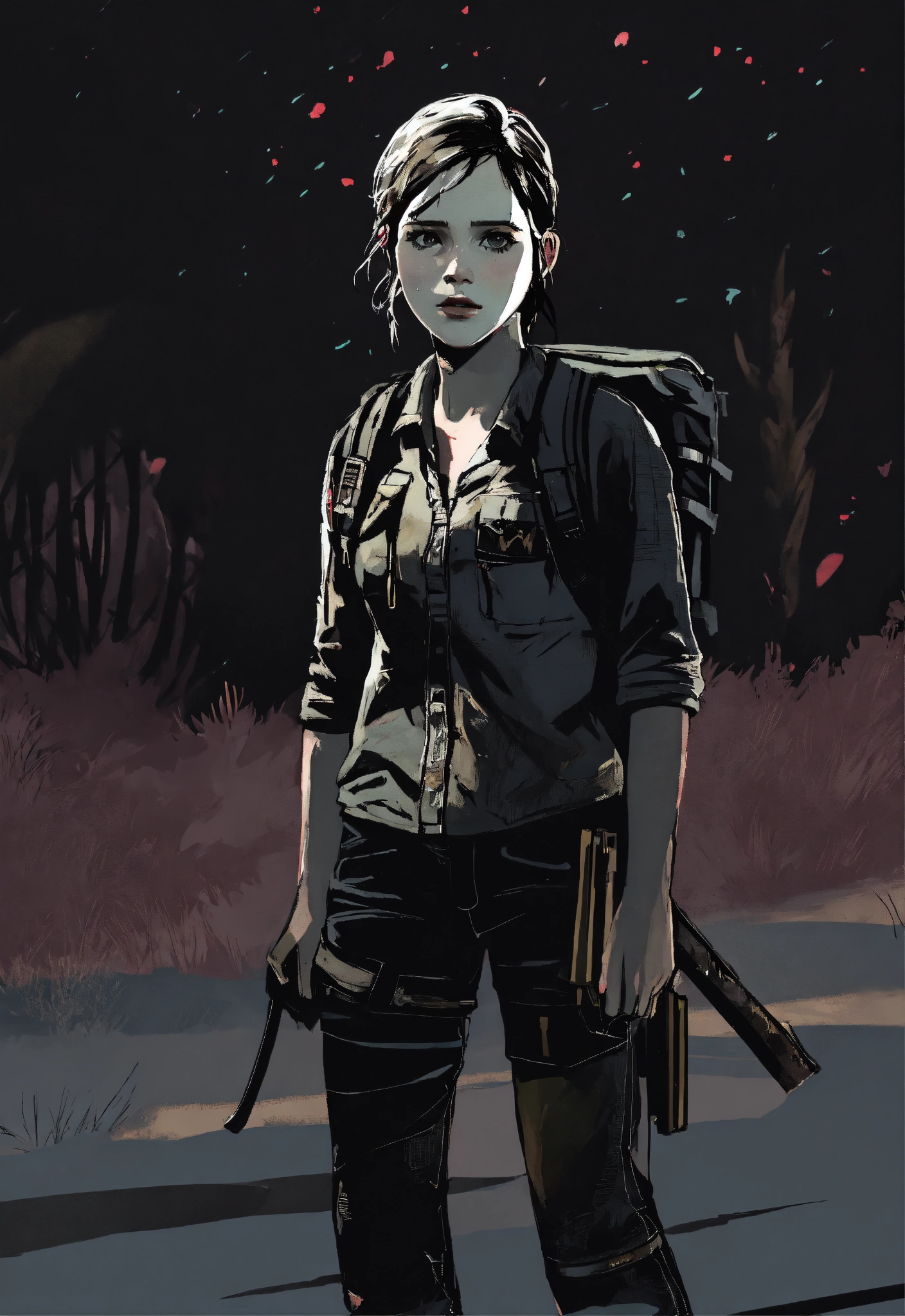 Dark aesthetic art of ellie from the last of us
