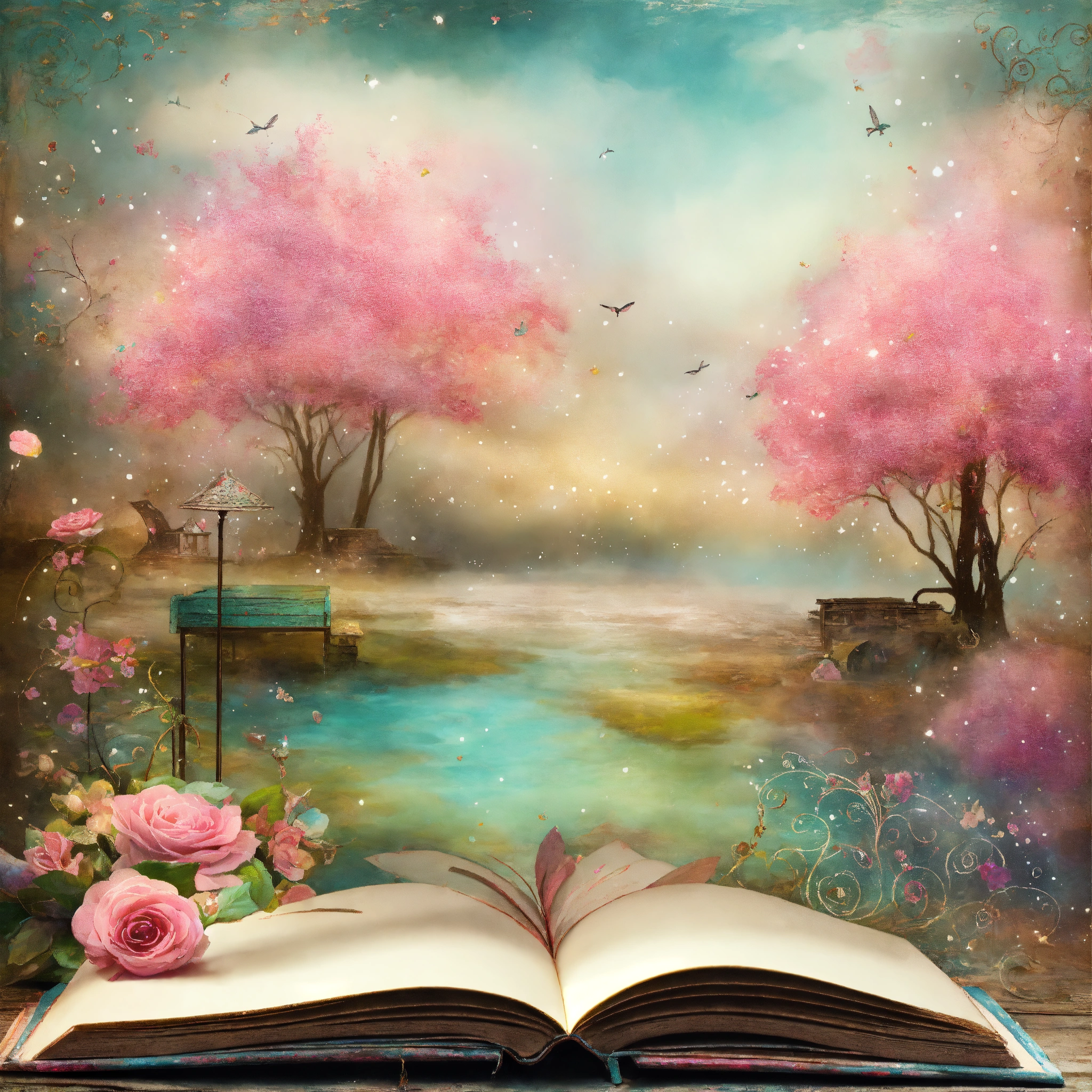 Shabby chic dreamy mist pastel junk journals miles apart thinking of you swirling magical fairytale abstract art style