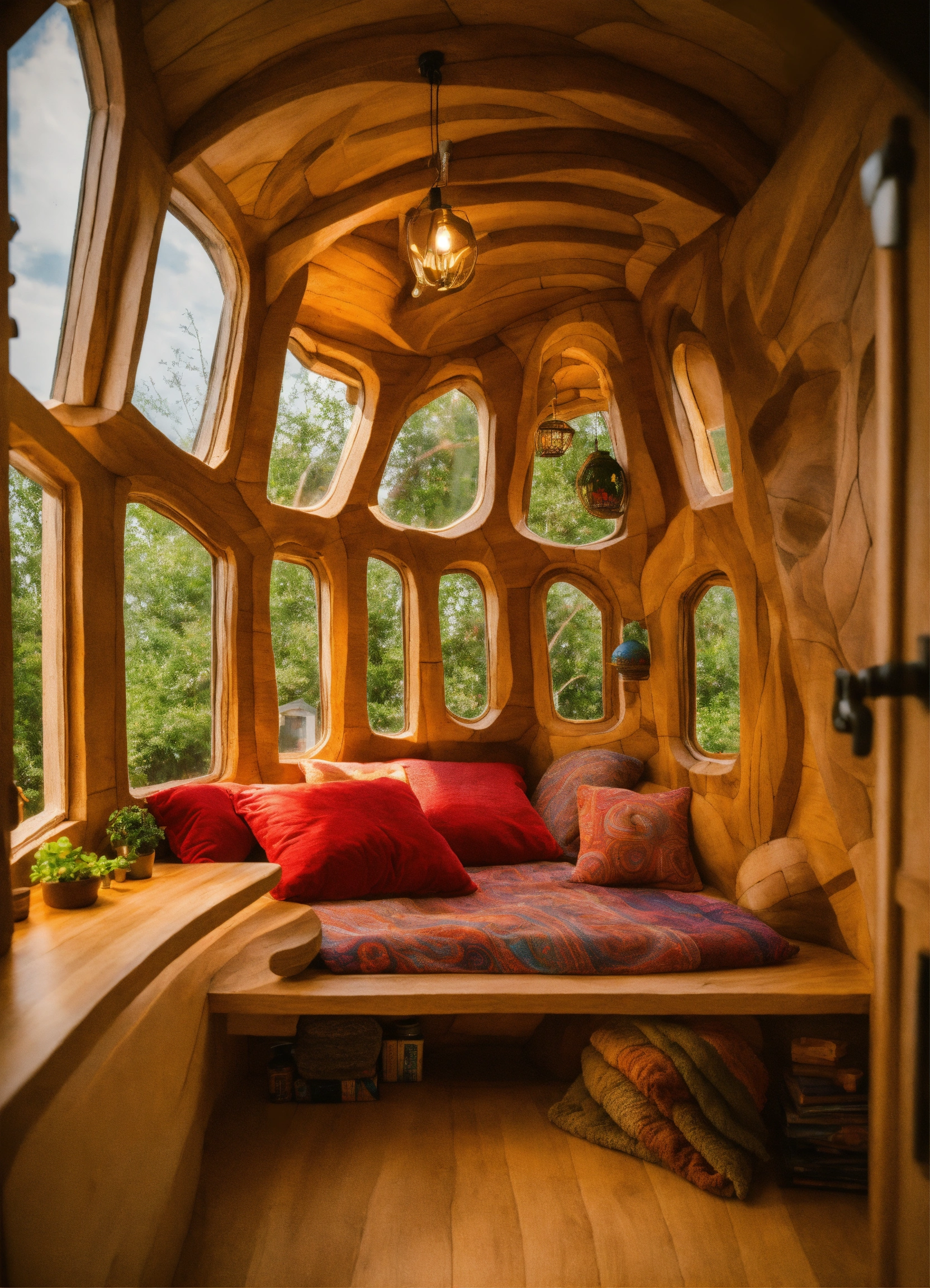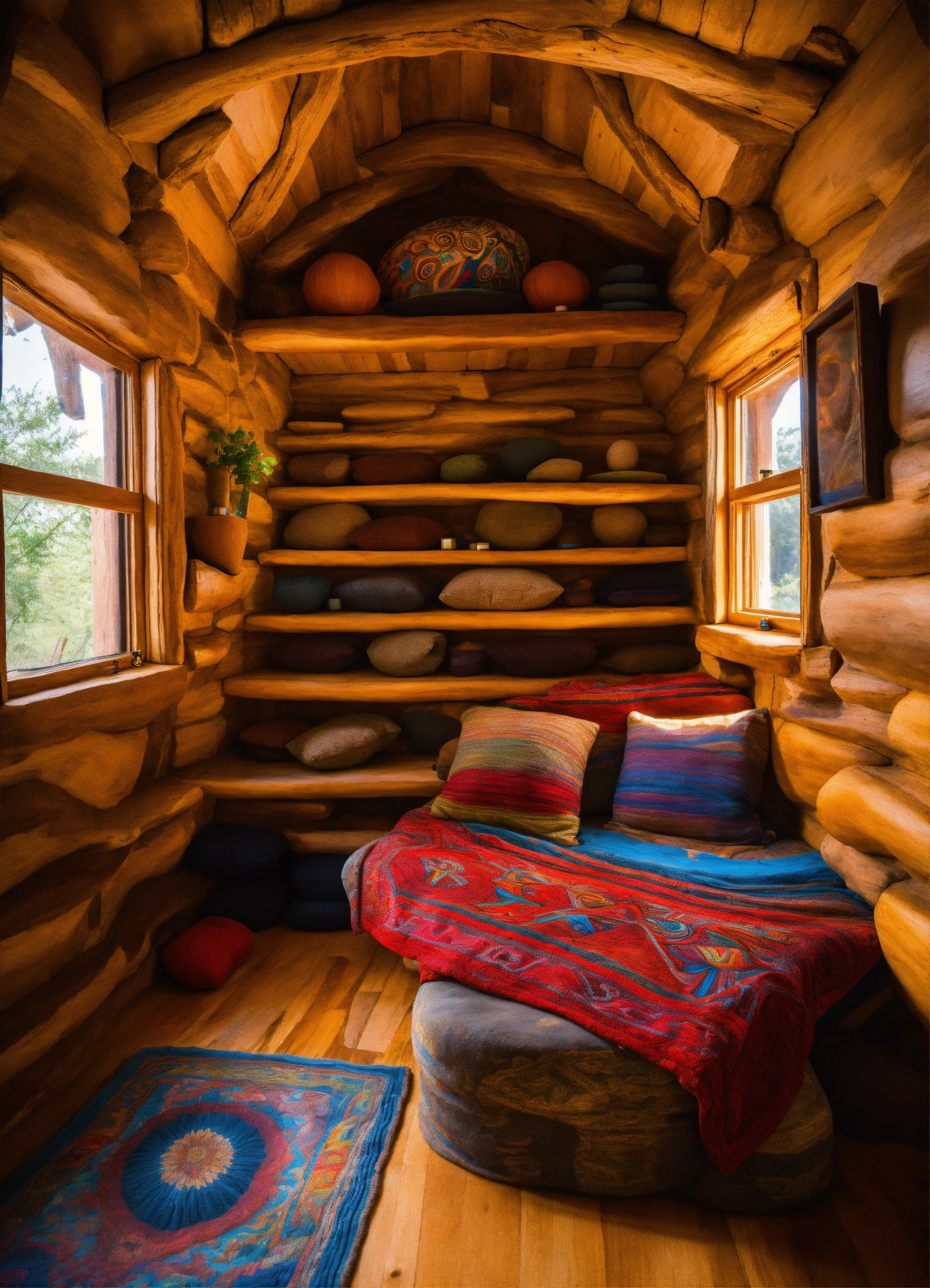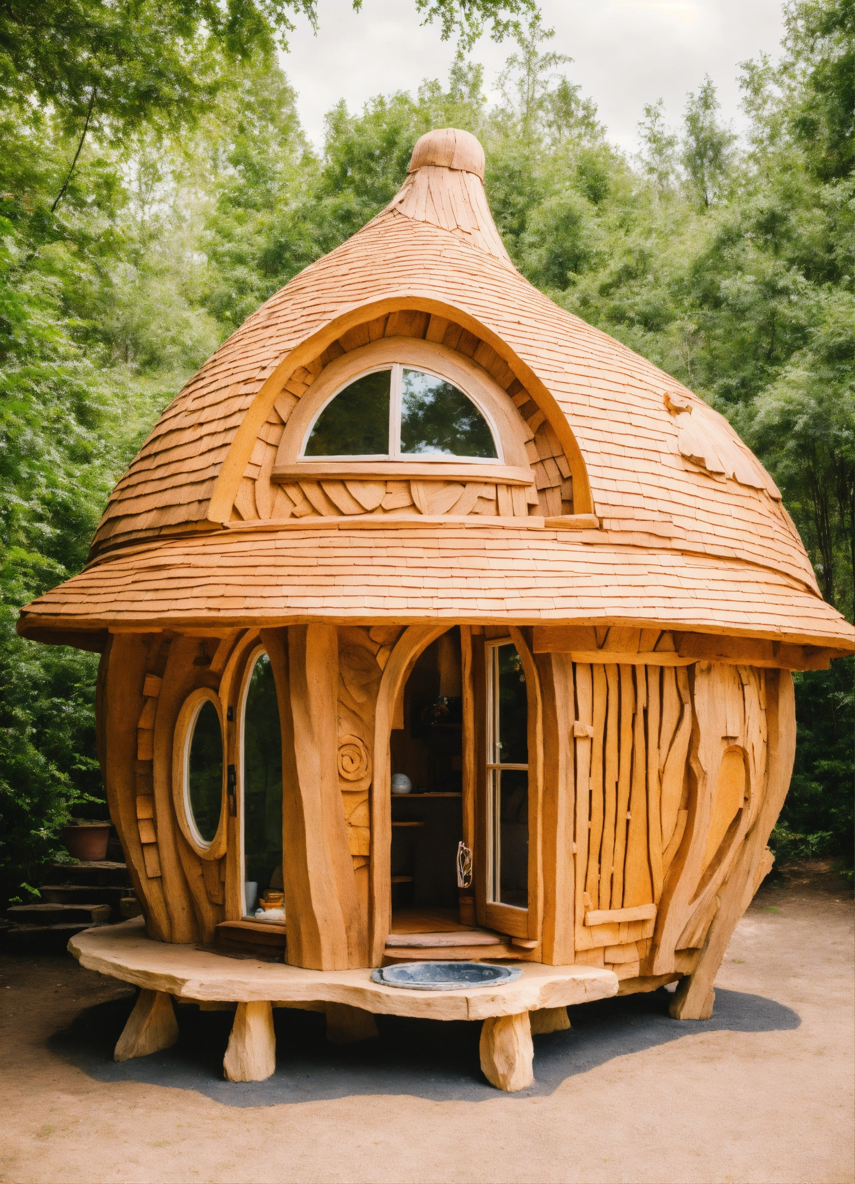 An ancient earth hand made meditative sculptured tiny house in the style of alex grey