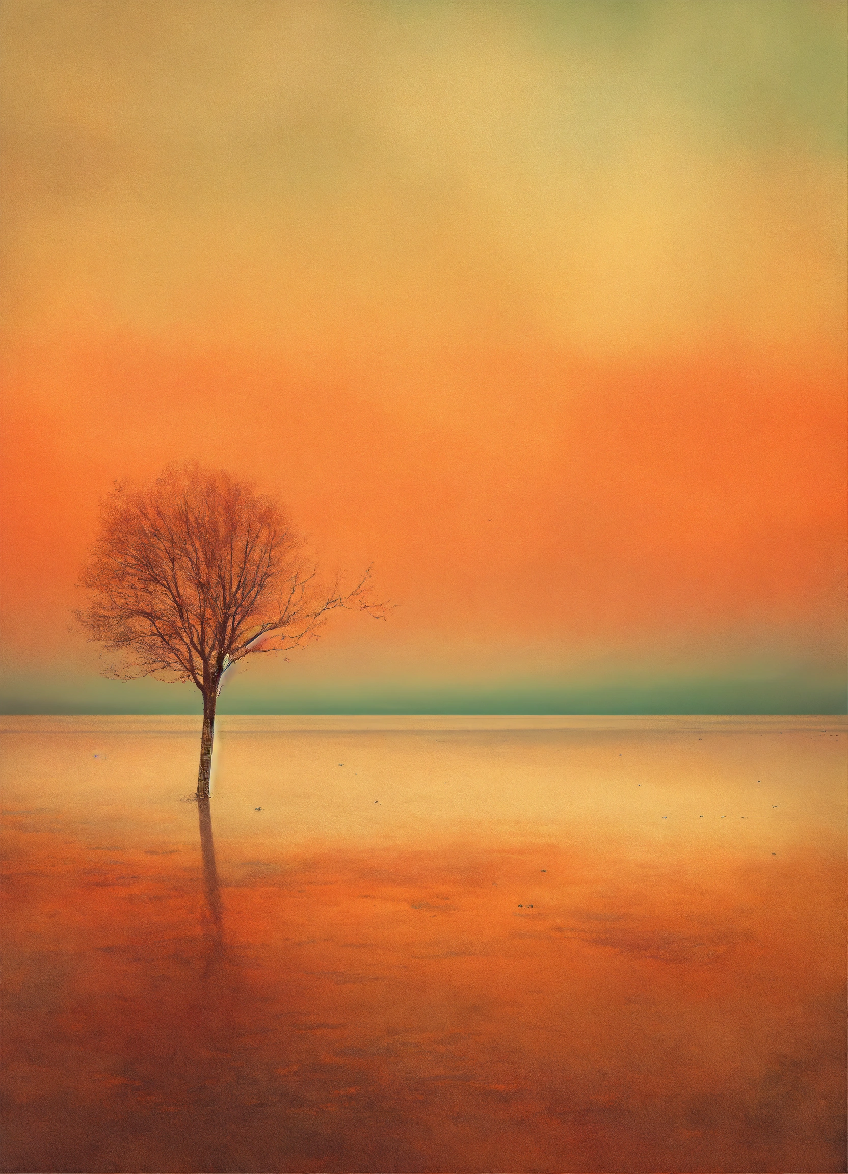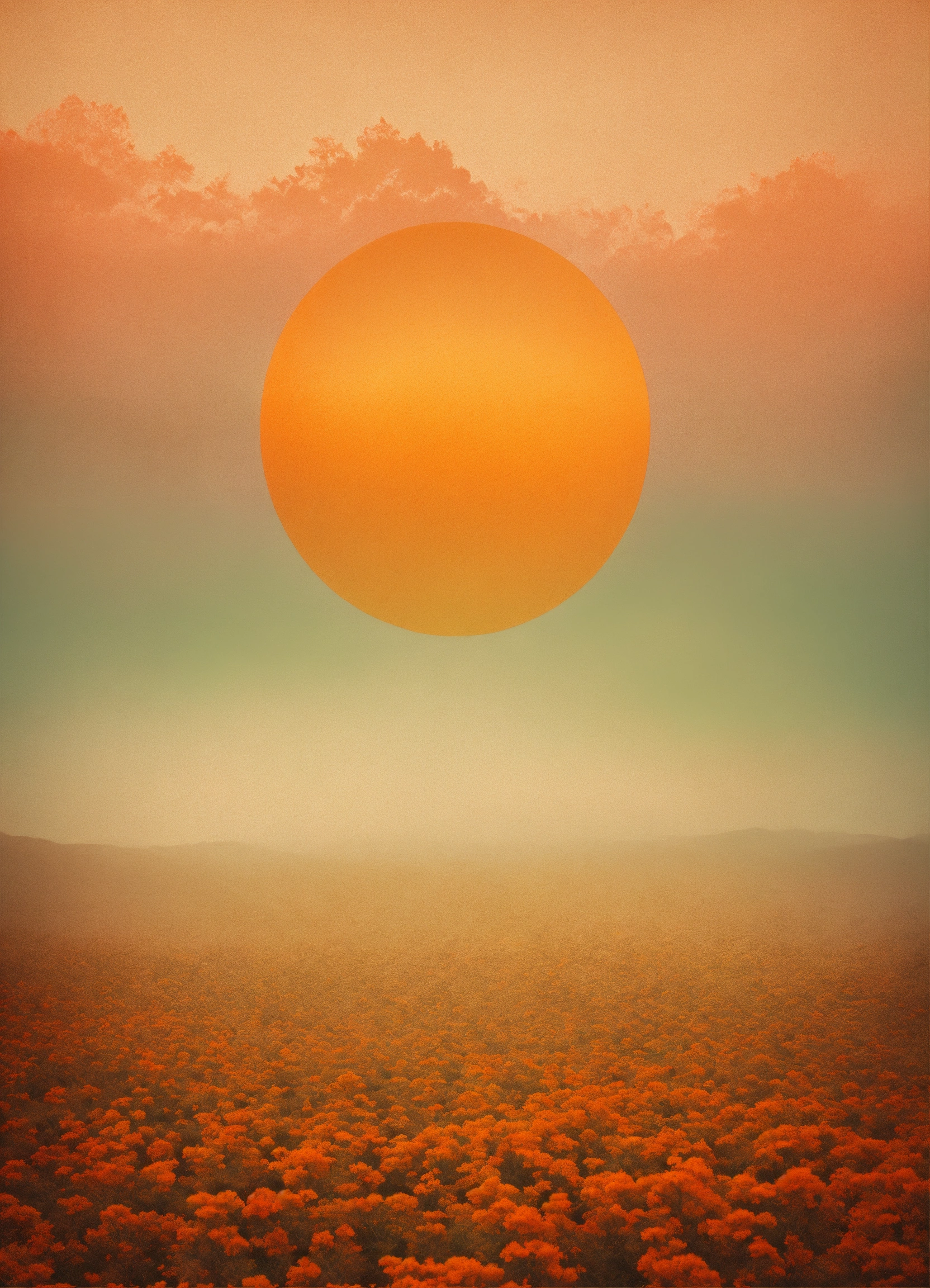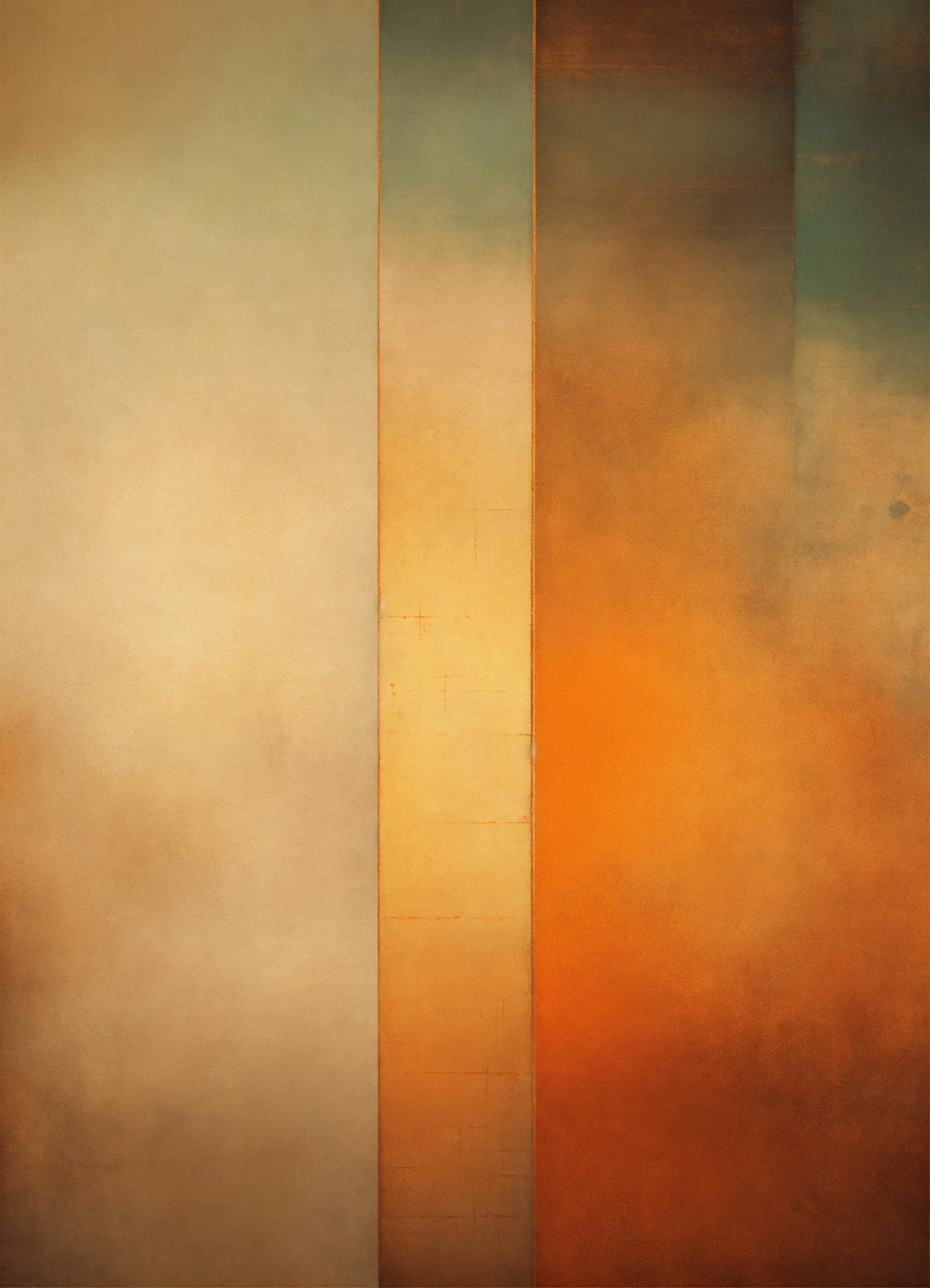 Text muted tones colors surreal combination into clean blank background image, evoking a sense of calmness, antique-inspired style, spiritual unity, add a touch of tangerine color
