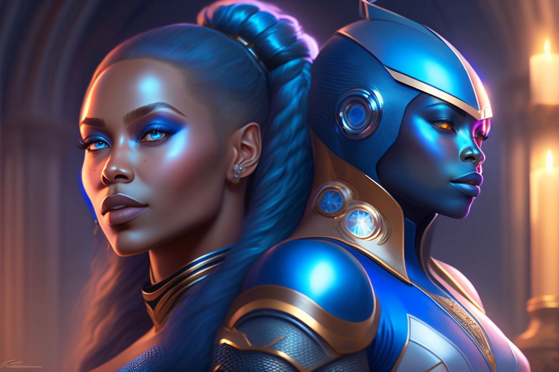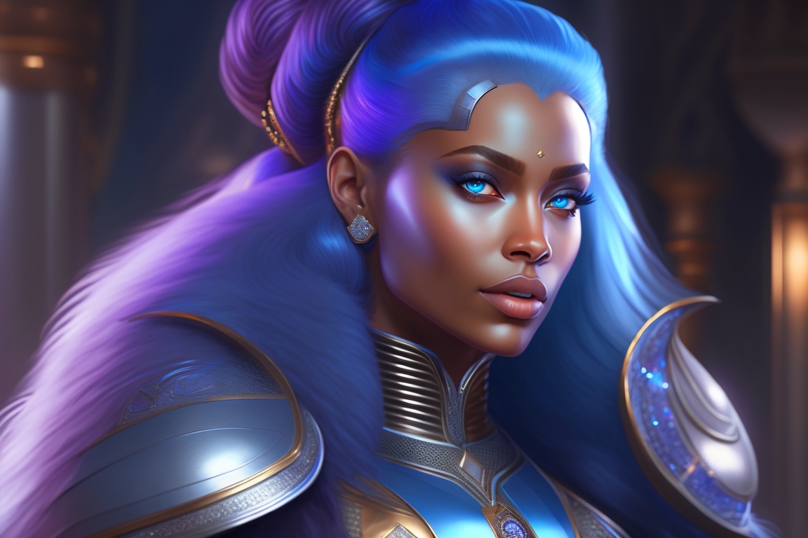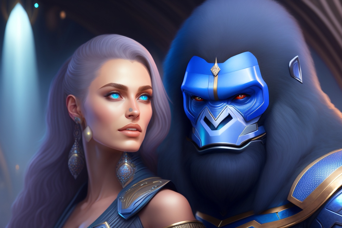Kiara queen godess, european, blanch, alien, plavalaguna, futuriste 4k réaliste, blue eyes talking to gorilla warrior illustrator, by justin gerard and greg rutkowski, digital art, realistic painting, dnd, character design, trending on artstation