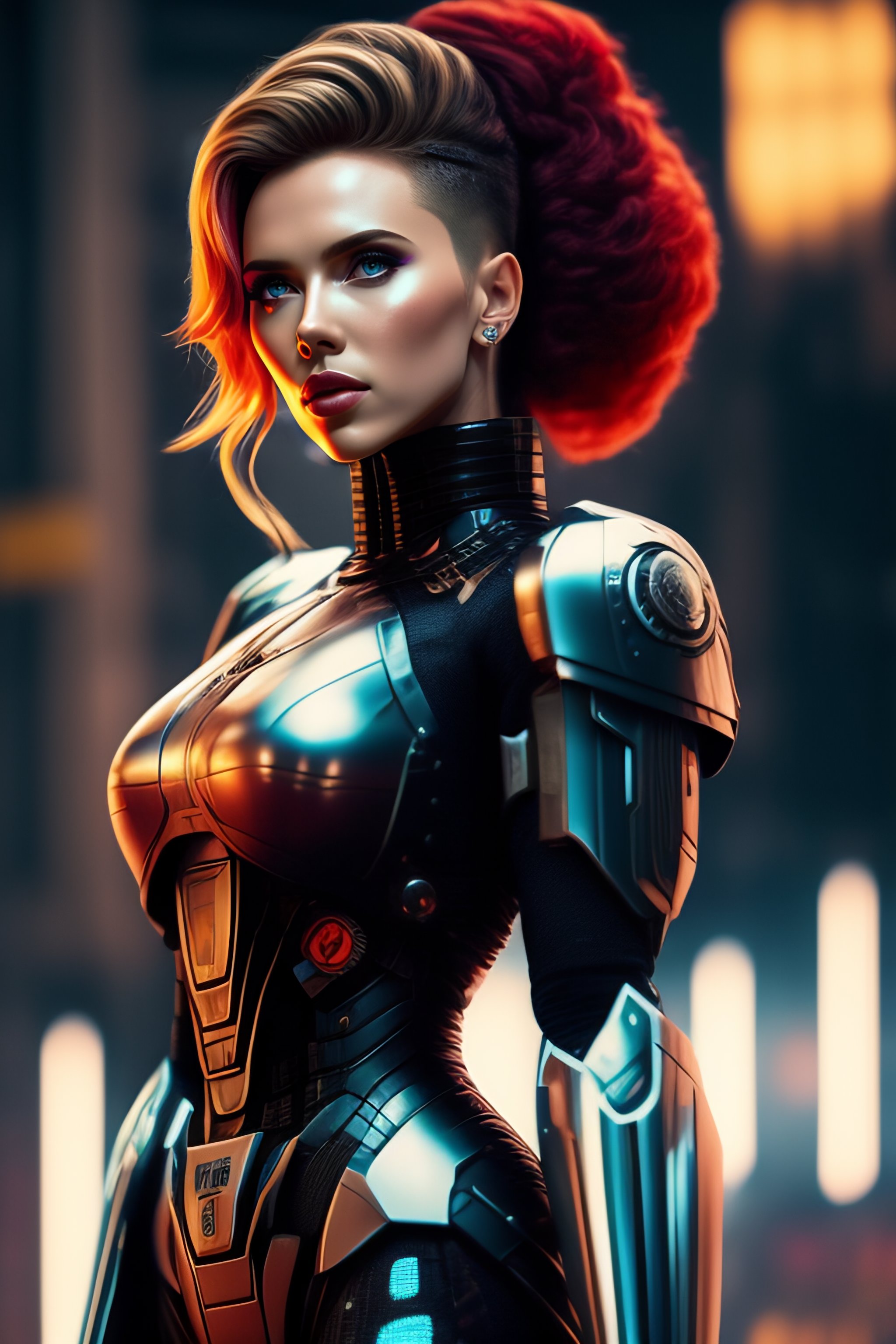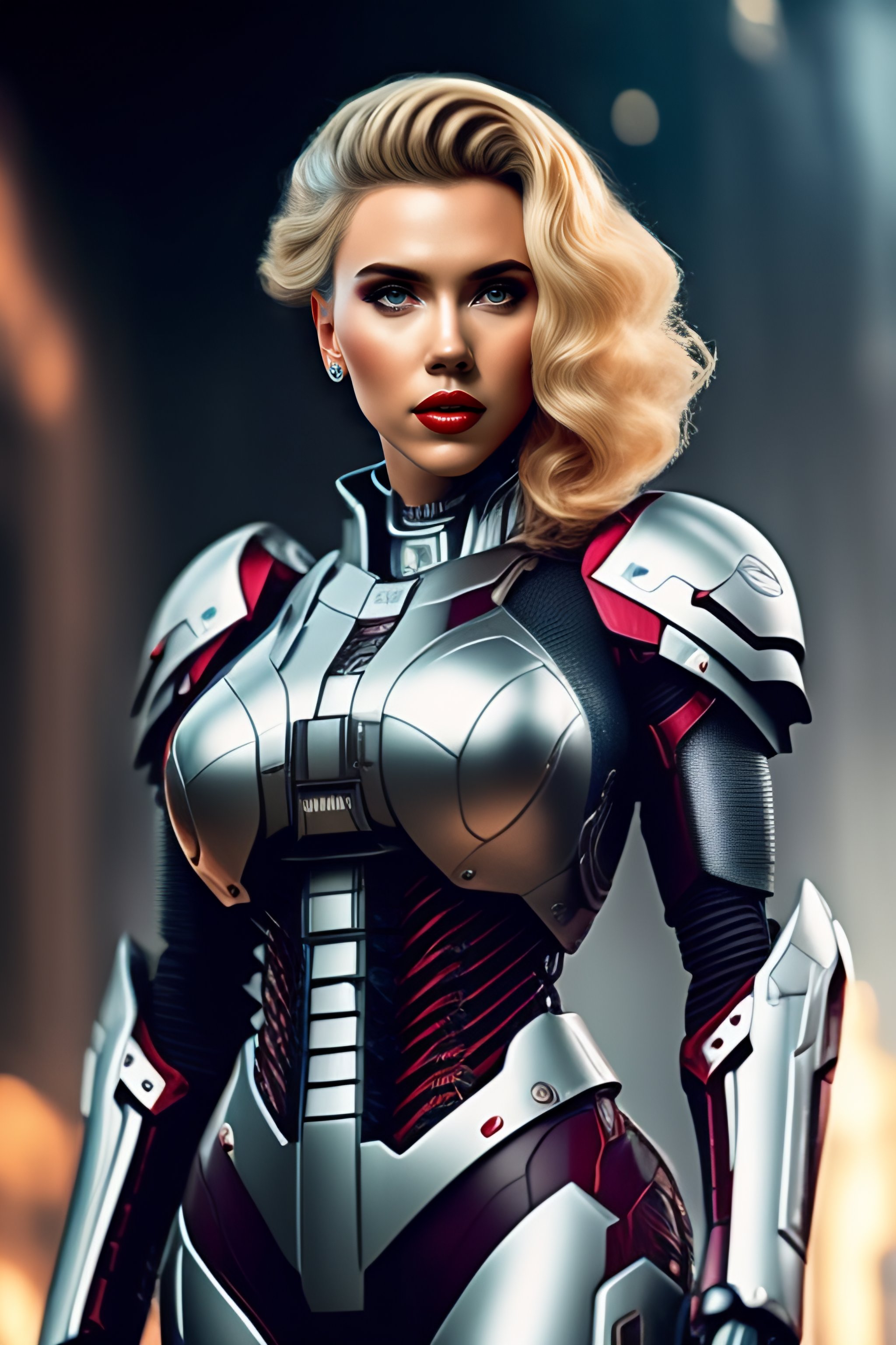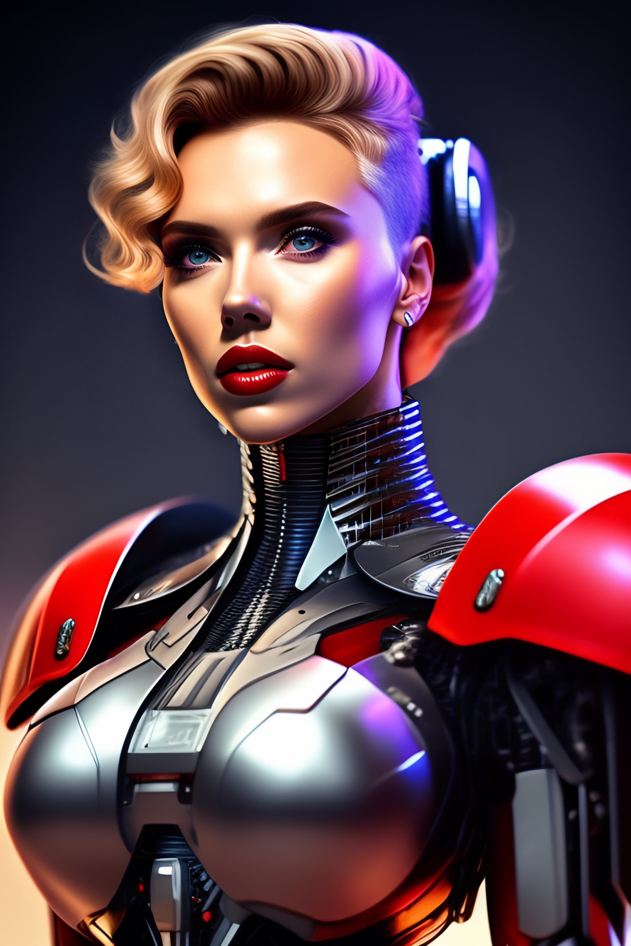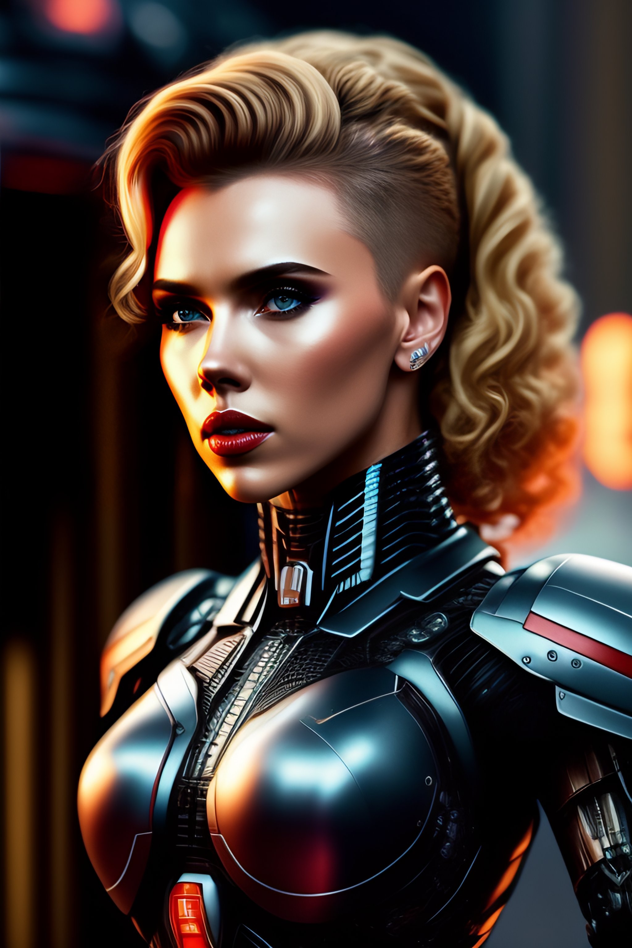 Scarlett johansson face full covered robot skeleton body pieces cyborg human cyberpunk mecha human legs