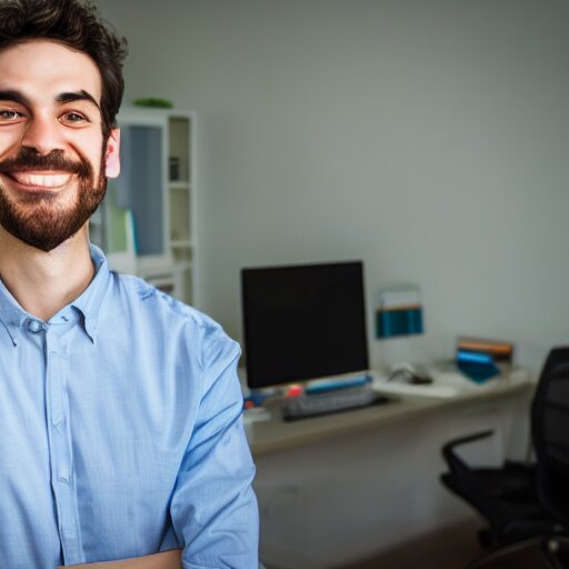 Smiling software engineer in chair