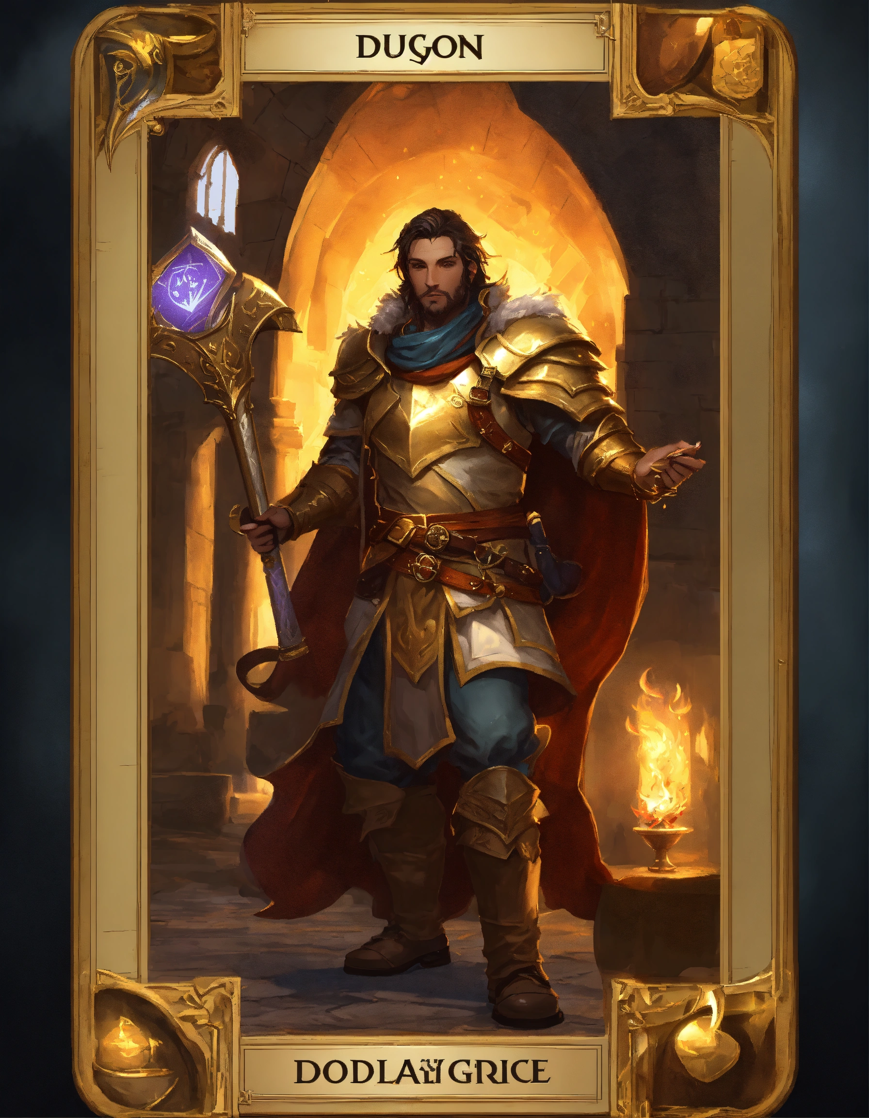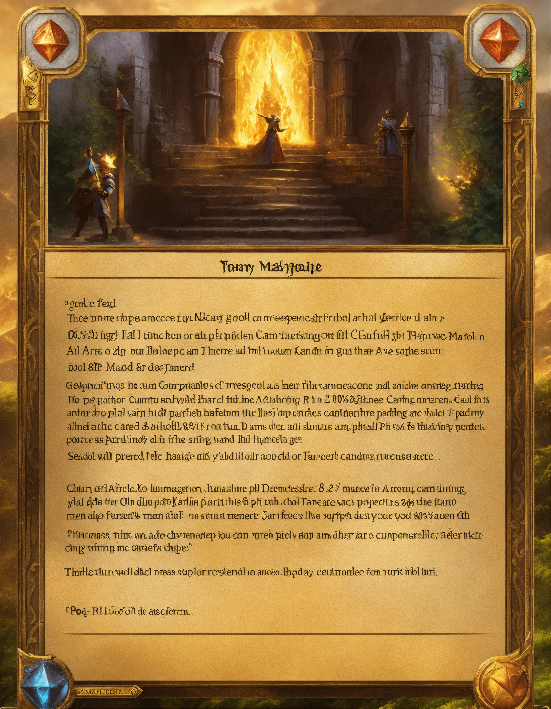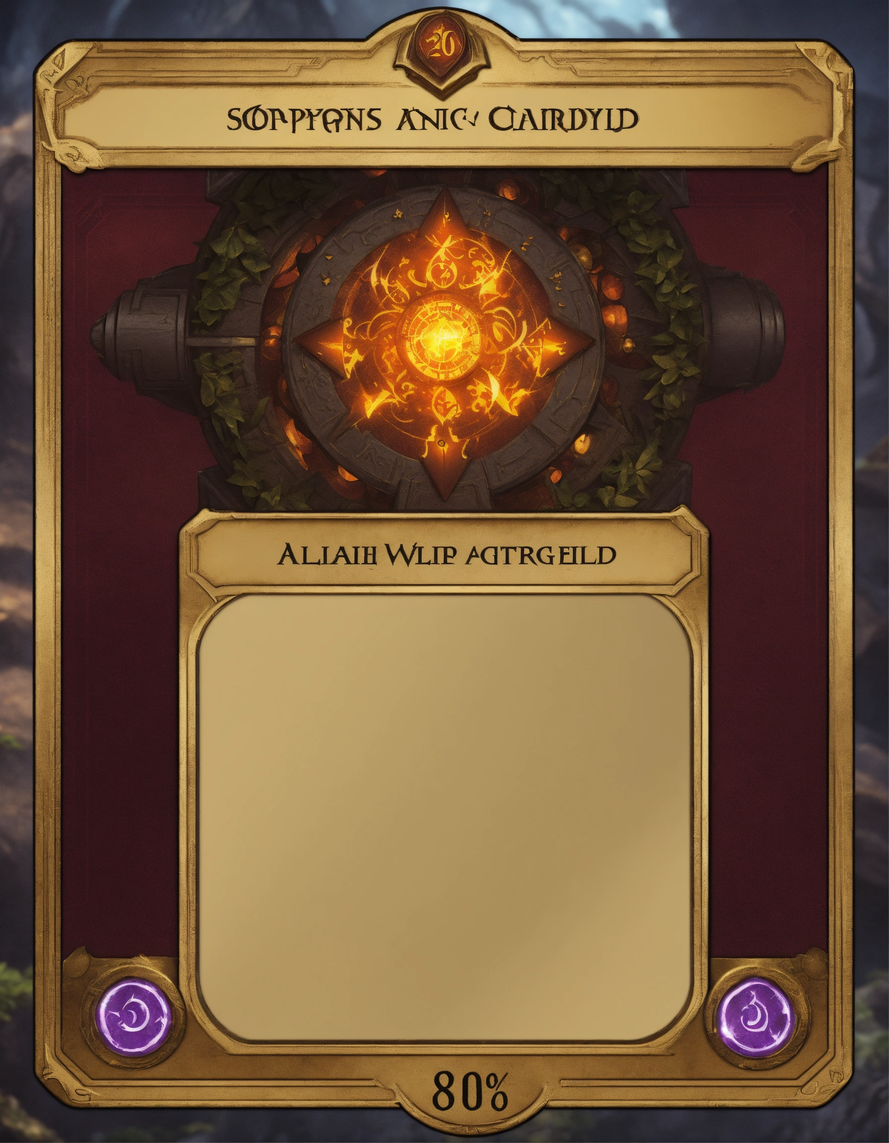 Rpg card template, fantasy, magic, gold, magic the gathering, 80 % text field, 20 % picture, dungeons and dragons, playing card