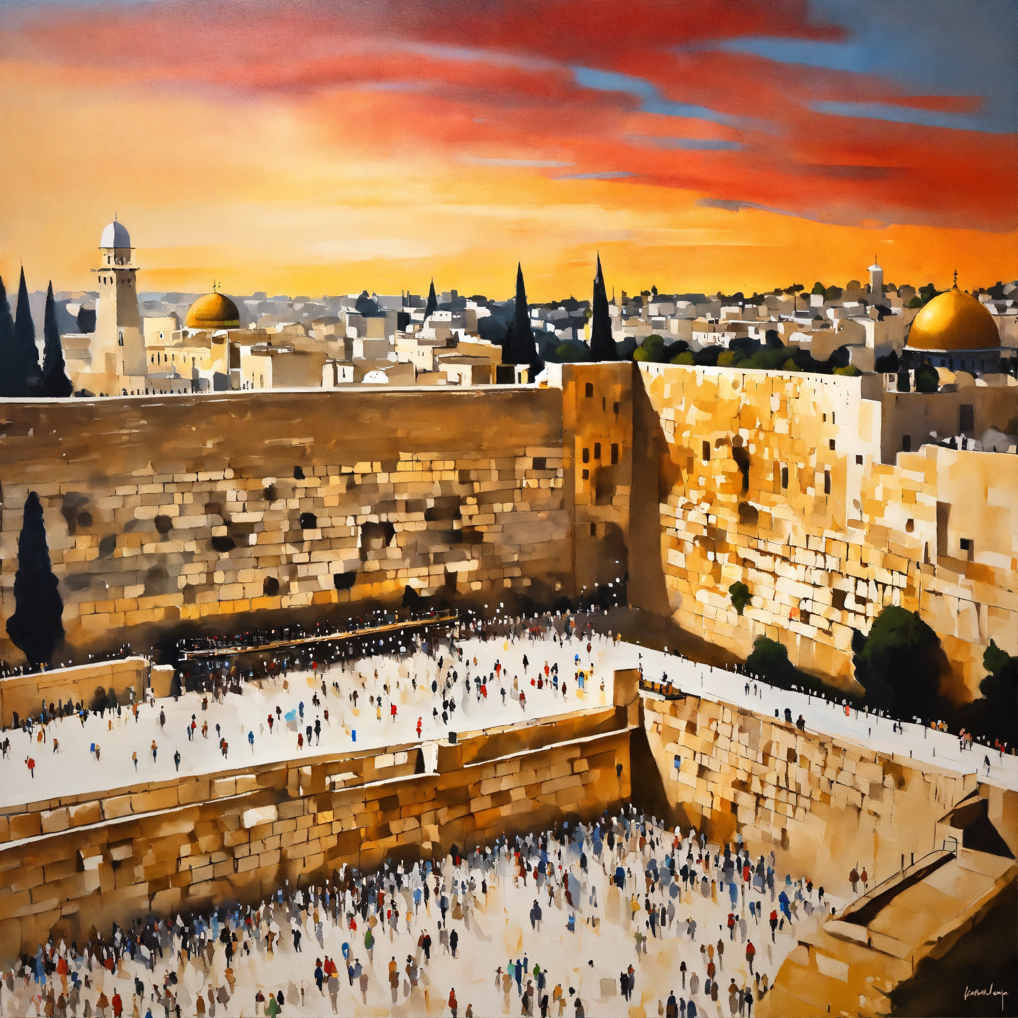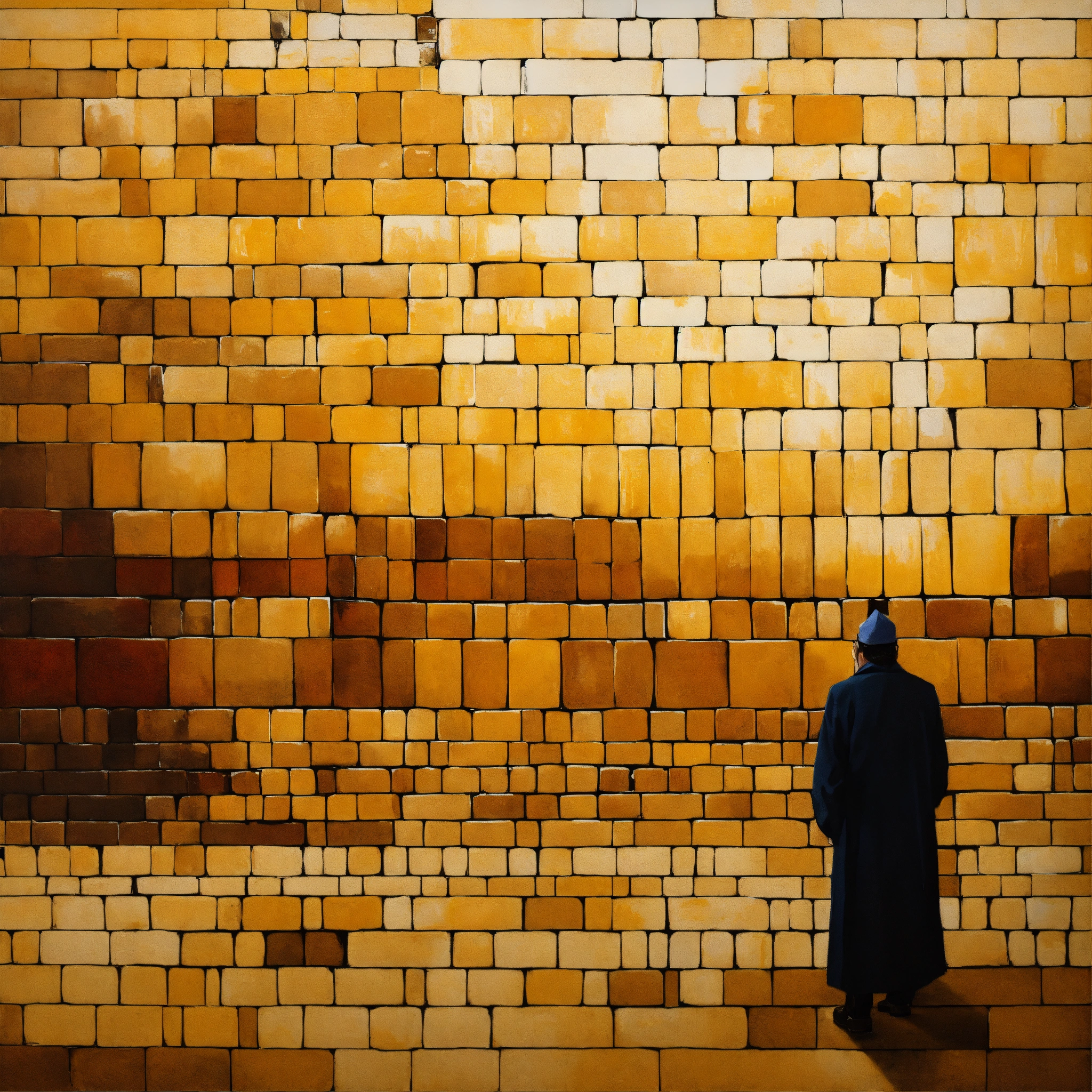 Create for me a minimalistic abstract painting of the western wall in jerusalem, so that they can see the painting with a brush.