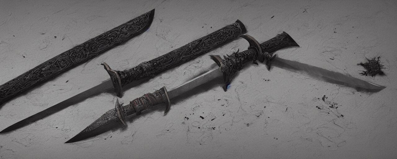 Basic steel sword, steel, shortsword, medieval, engravings, forged, blacksmith product design, art by gerald brom, greg rutkowski and artgerm and james jean and zdzisław beksinski, 8 k, unreal engine, c 4 d