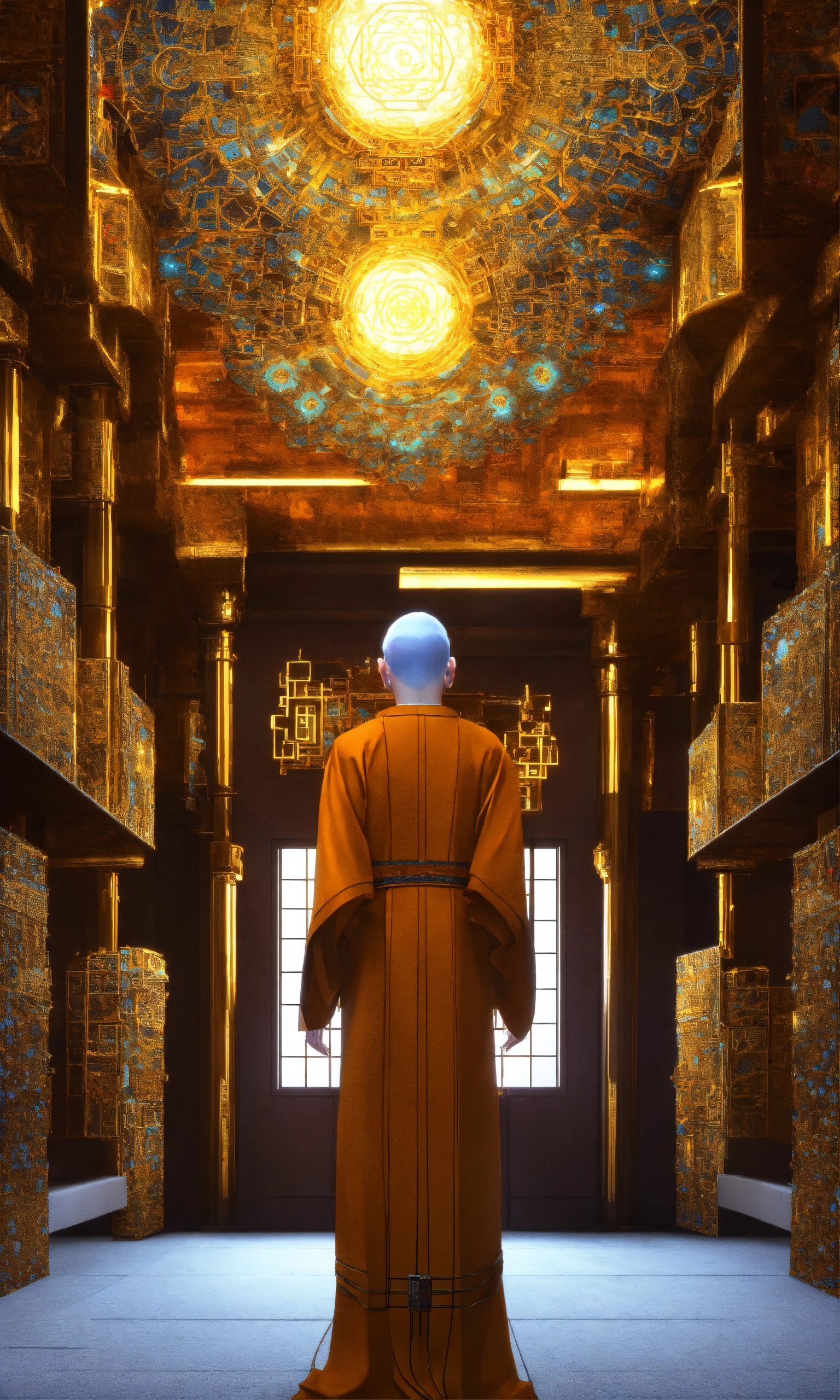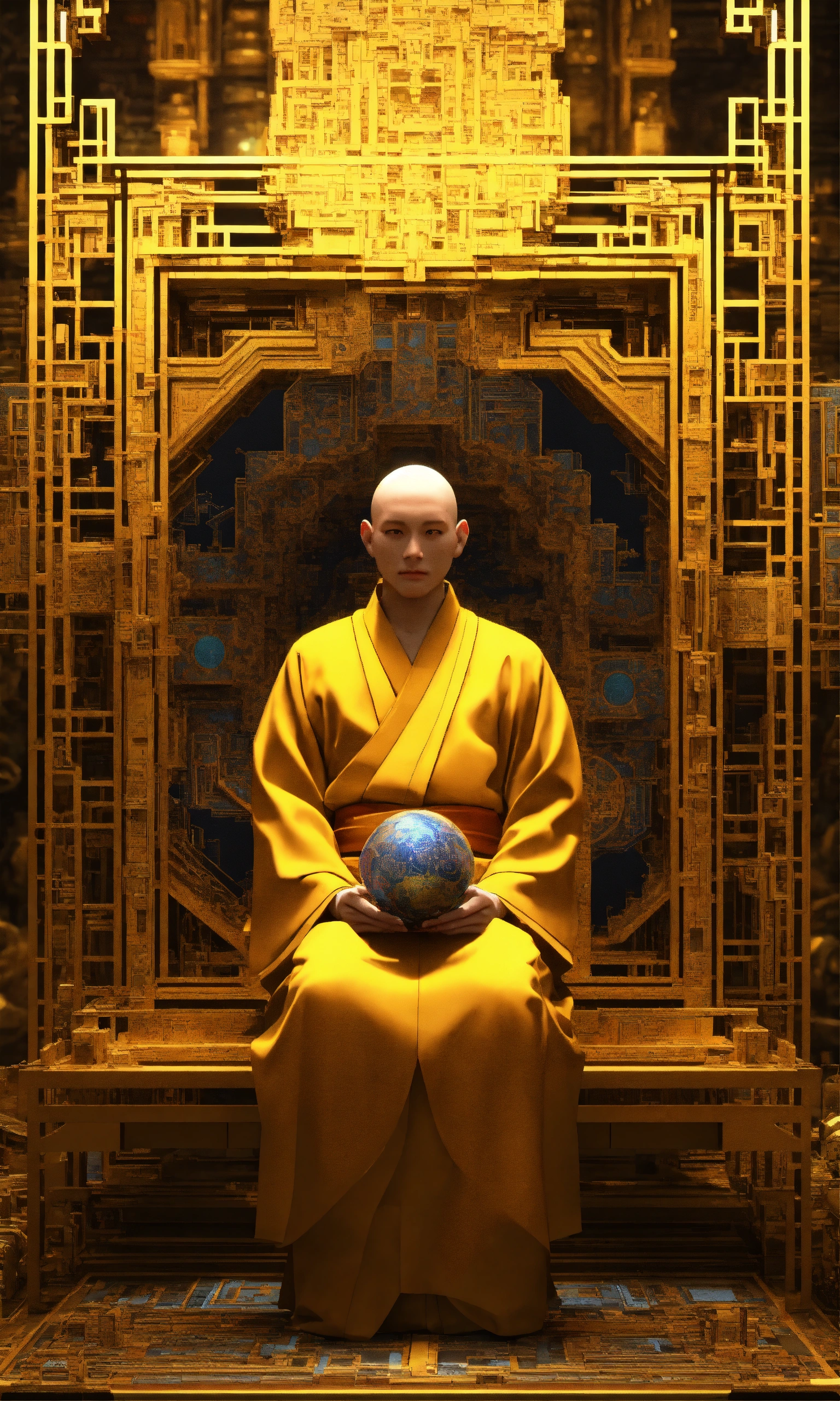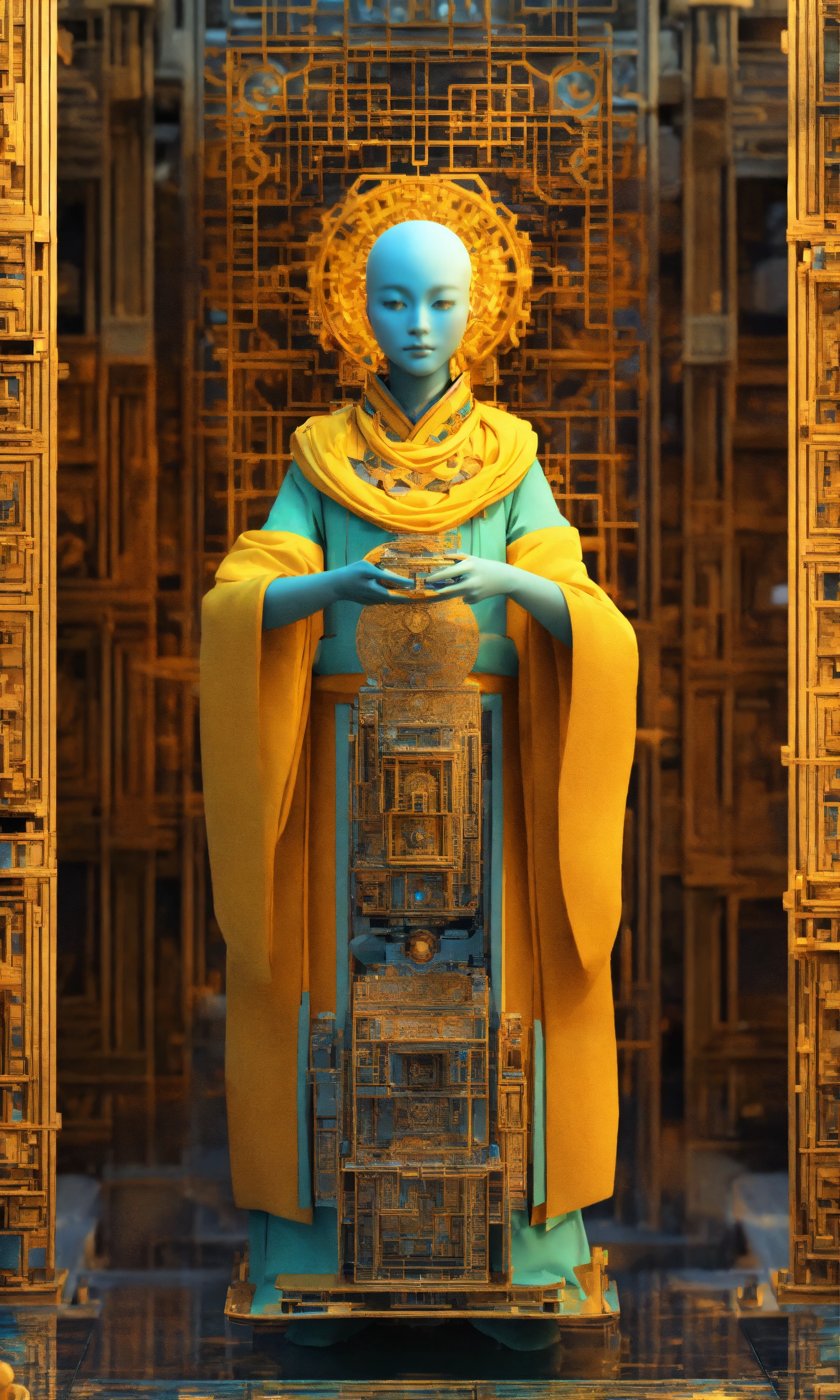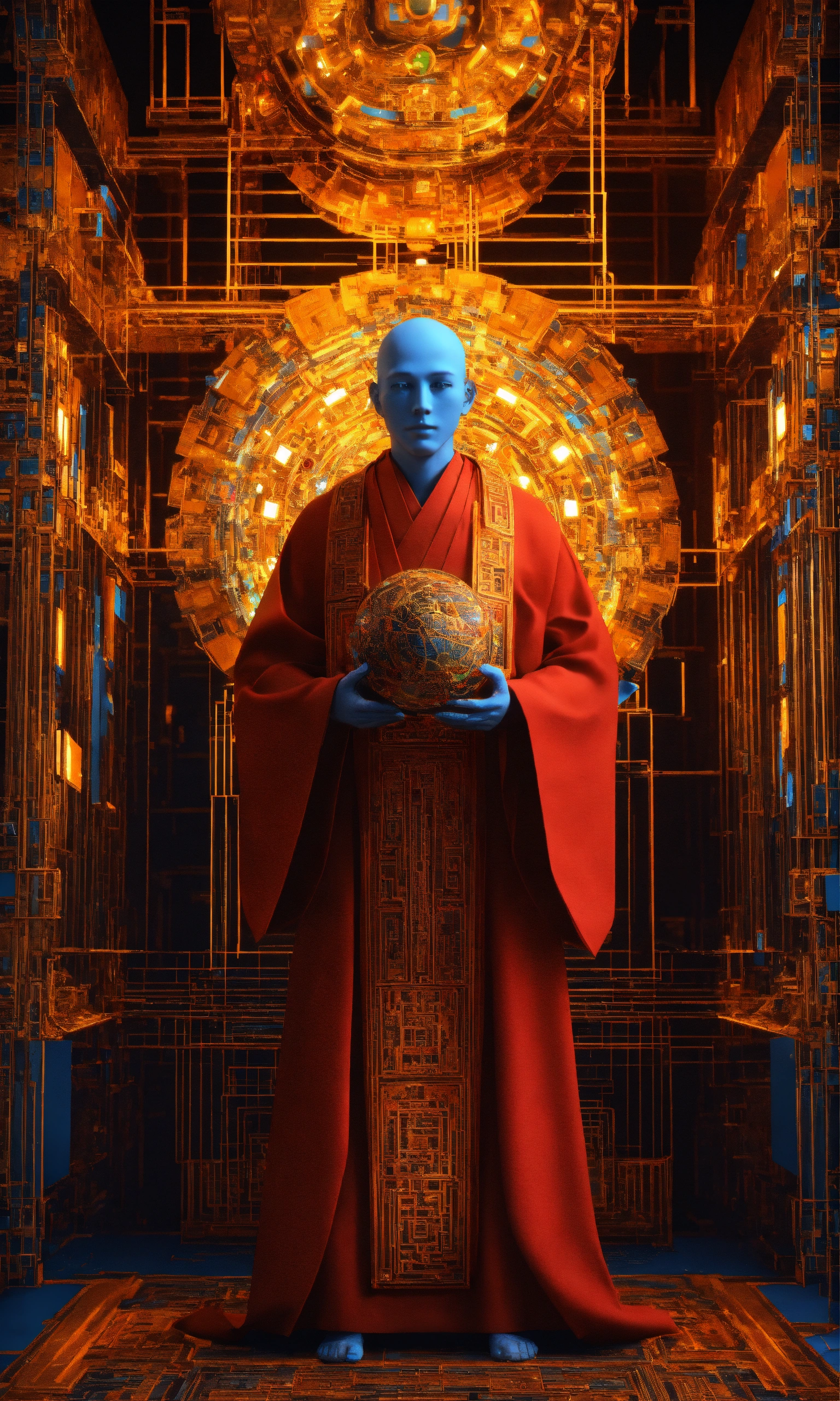 4th dimension complex fractal geometry tesseracts life daoist monk self-transforming machines 3d render