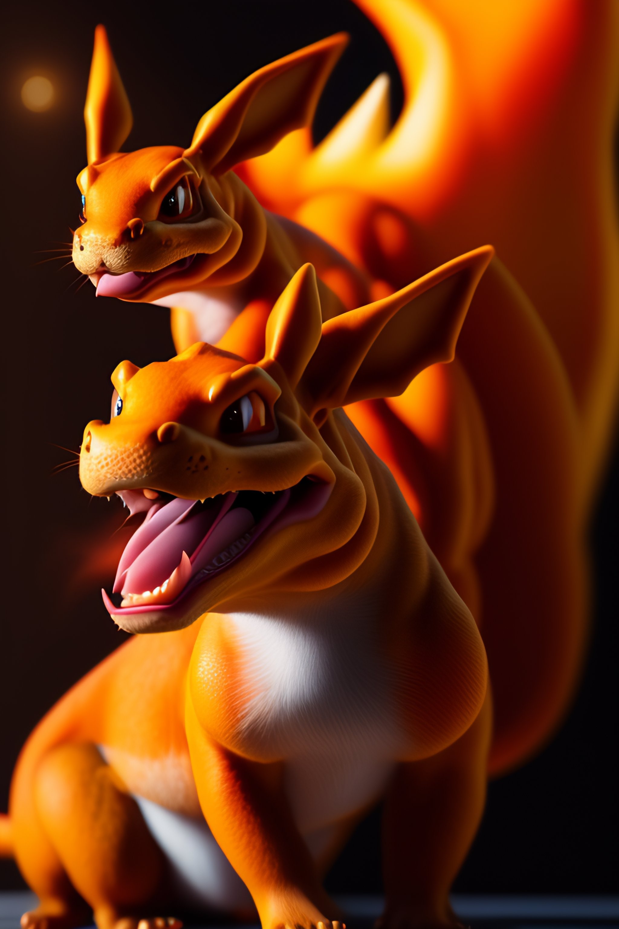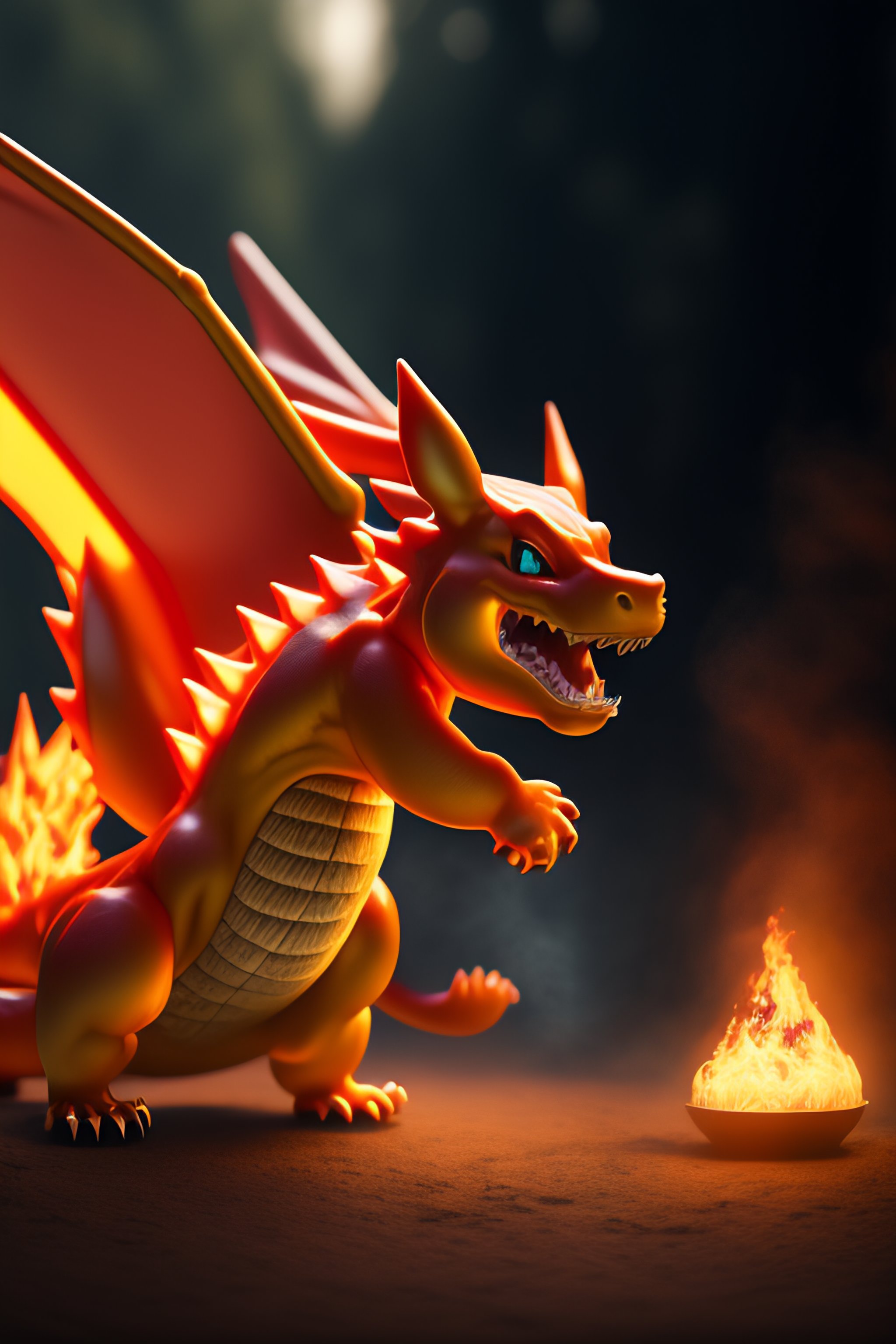Hyper realistic 8k charizard with a charmander
