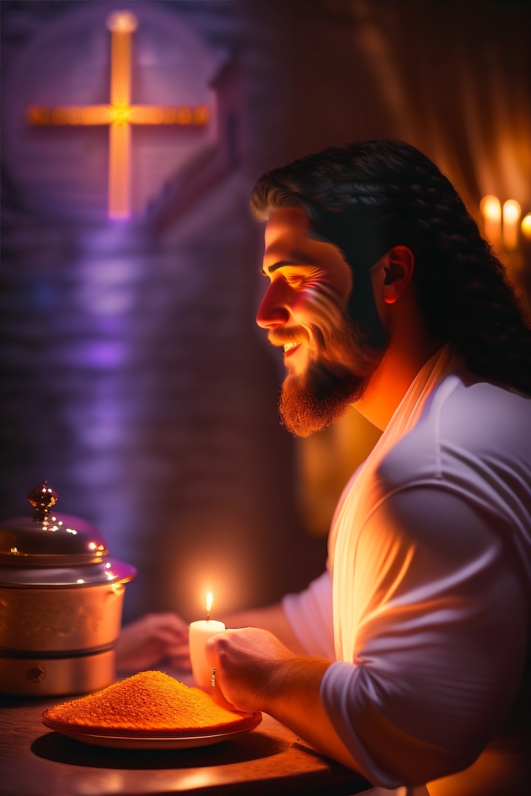 Descreva a cena de jesus orando em um local tranquilo, como o jardim do getsêmani, destacando sua postura, expressão facial e a atmosfera ao seu redor. explore as emoções e pensamentos que podem estar passando pela mente de jesus enquanto ele se conecta espiritualmente com deus em um momento de profunda reflexão e comunhão.