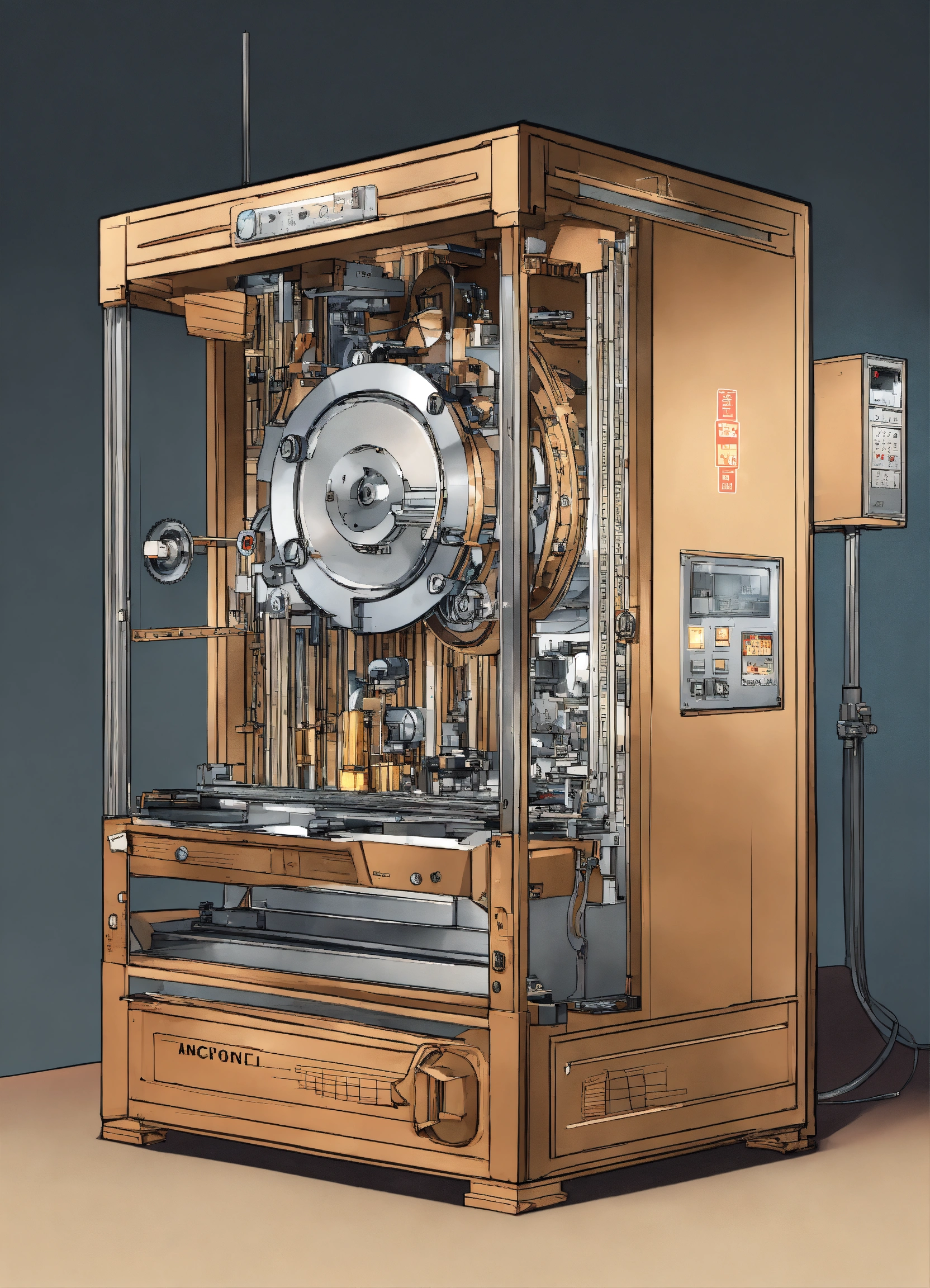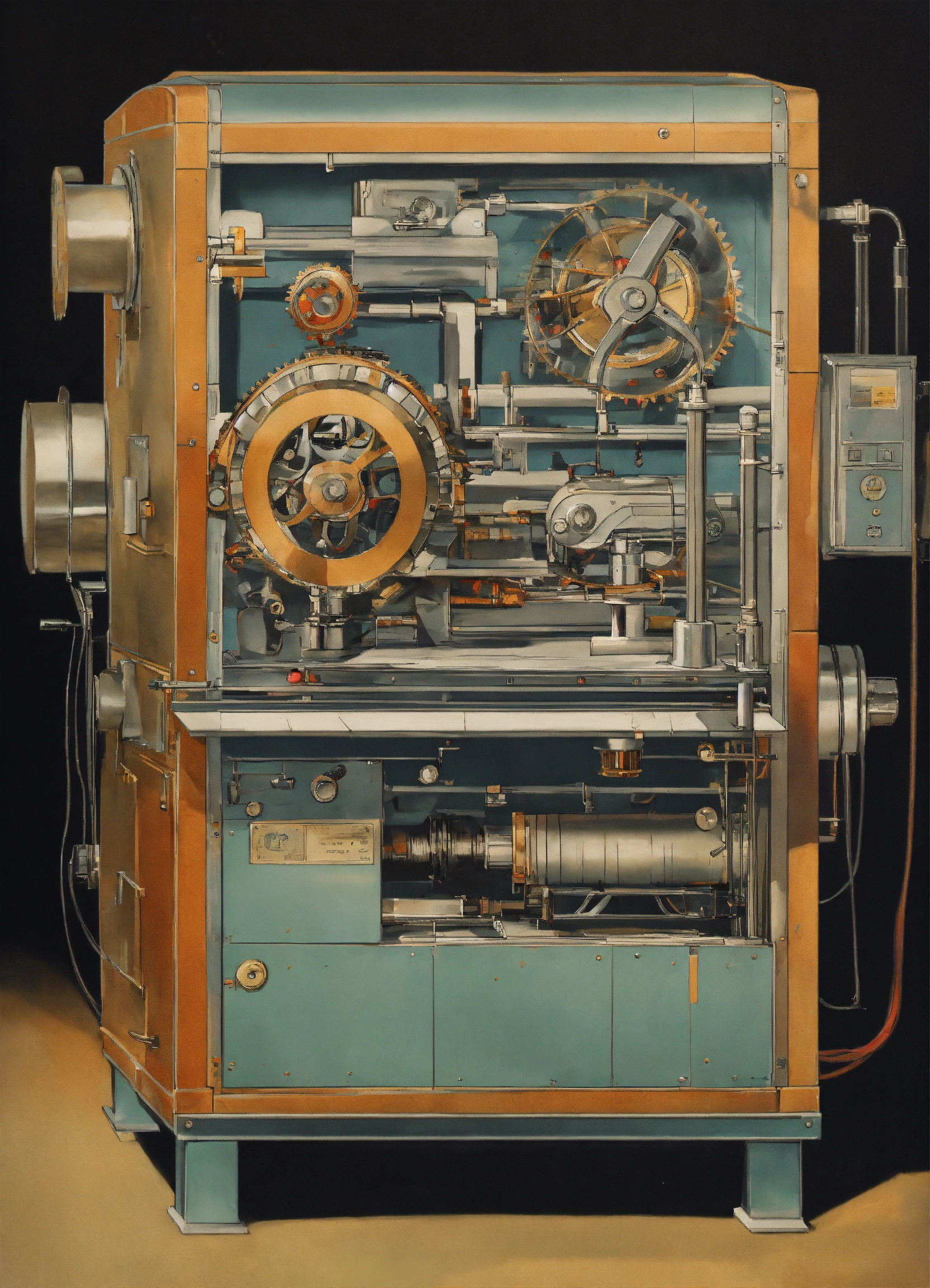 a box shaped stainless steel machine with a screen and 2 gears underneath