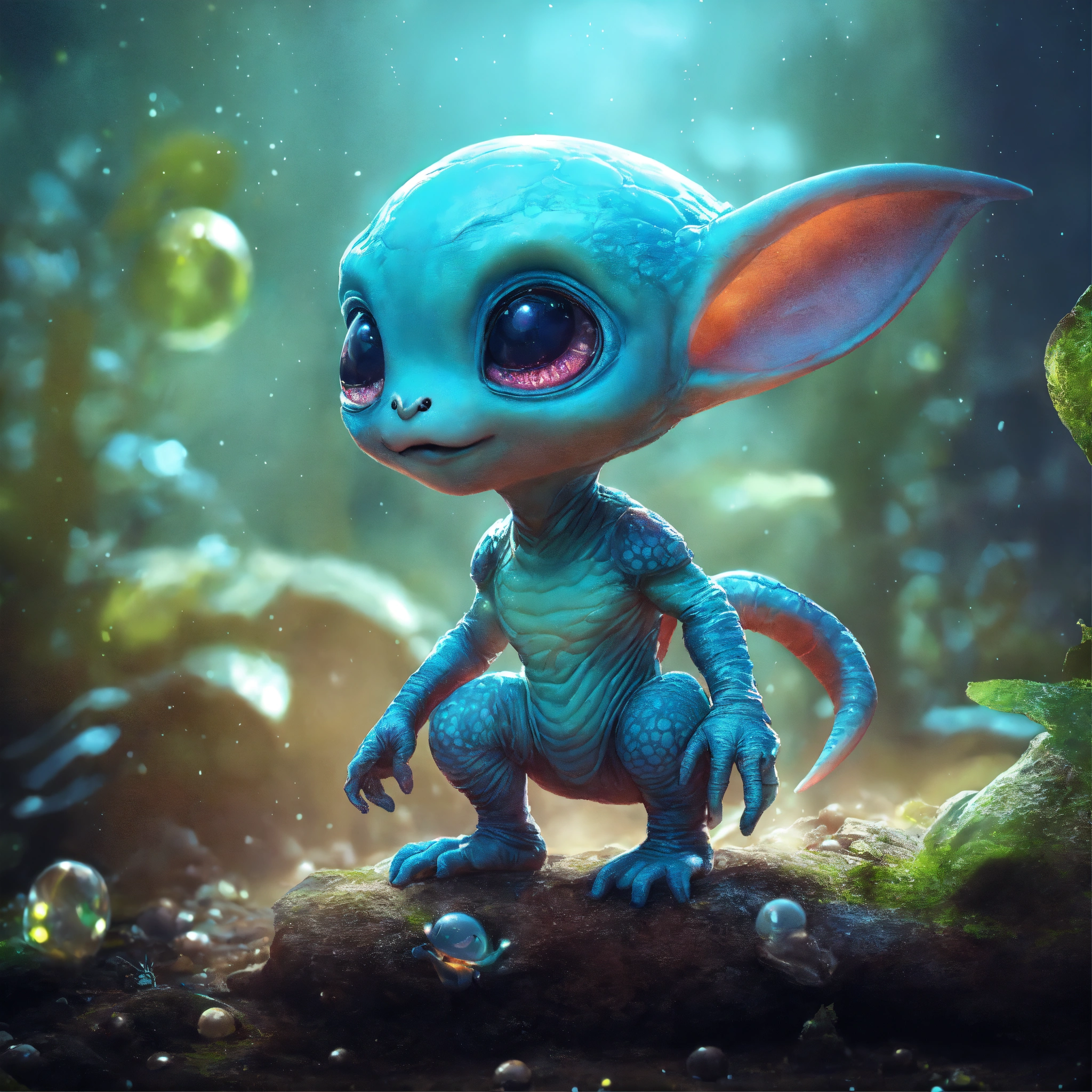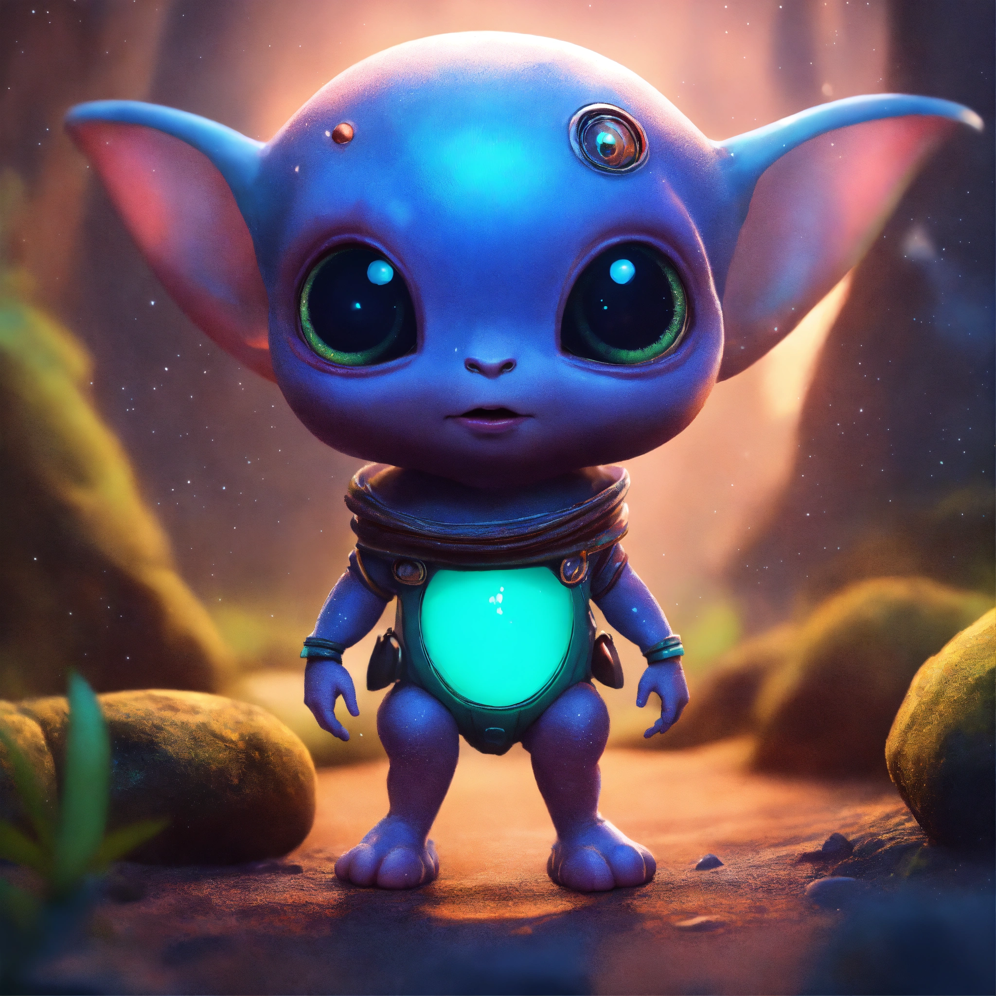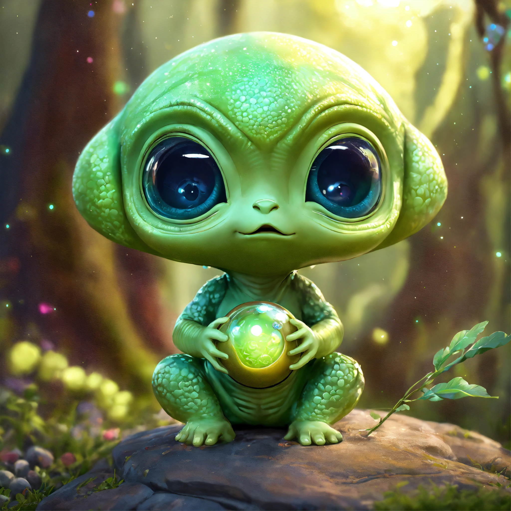 Cute and adorable cartoon alien baby, fantasy, dreamlike, surrealism, super cute, trending on artstation