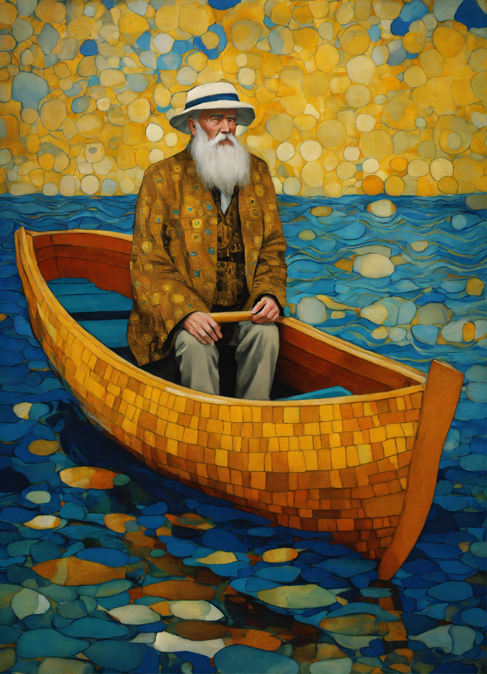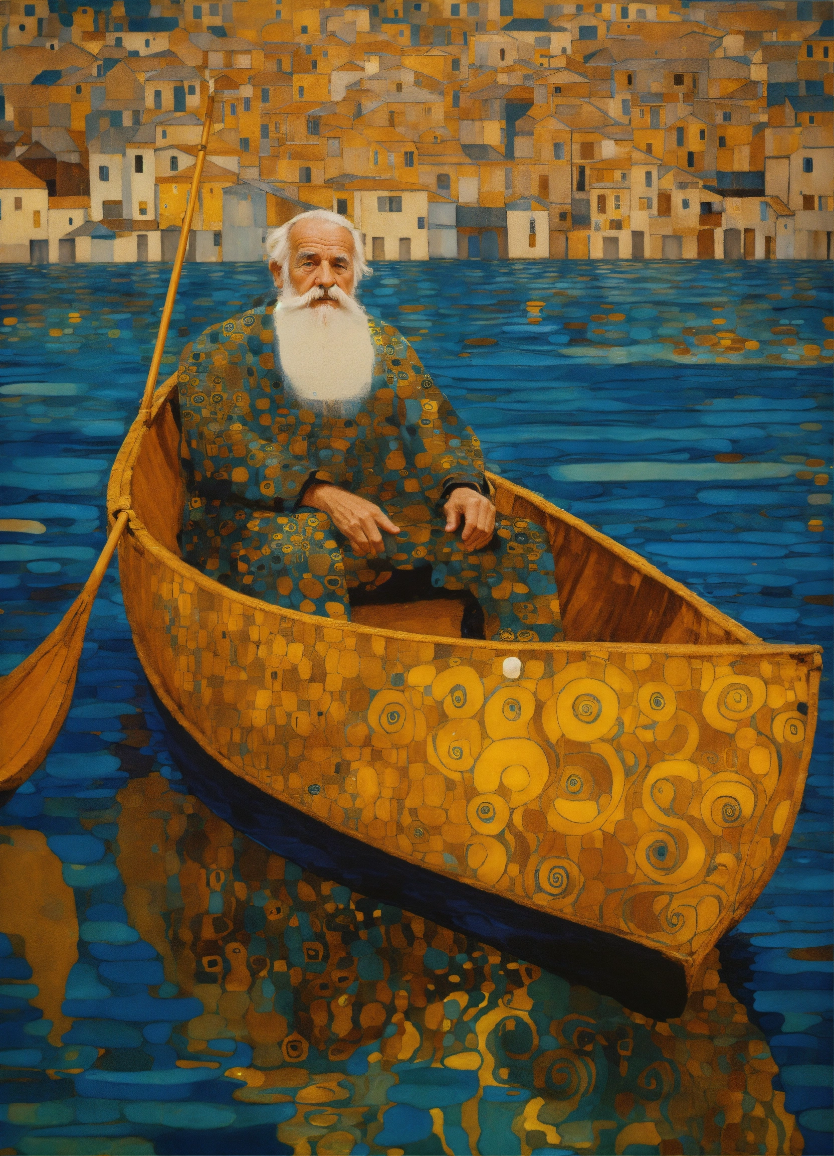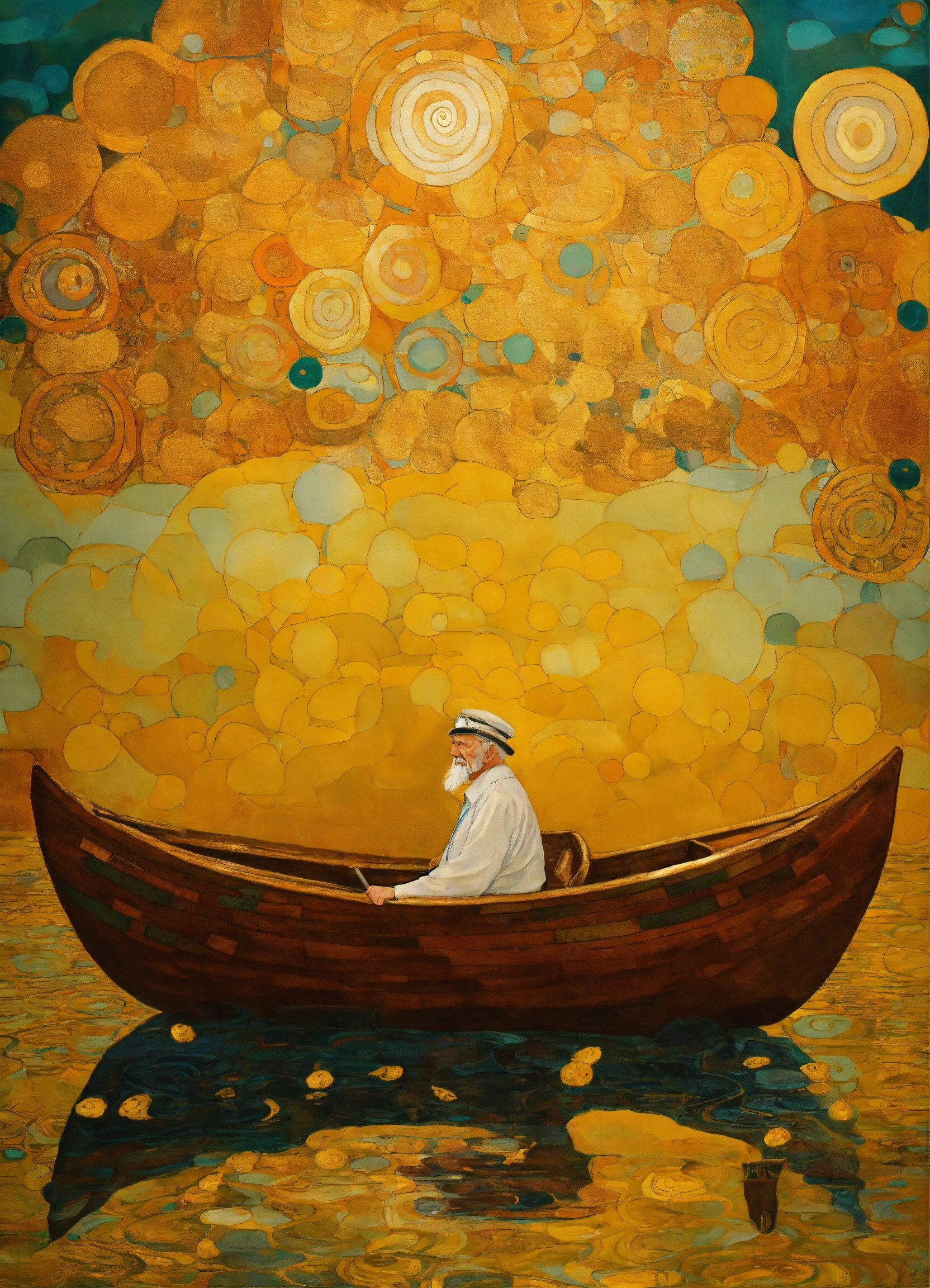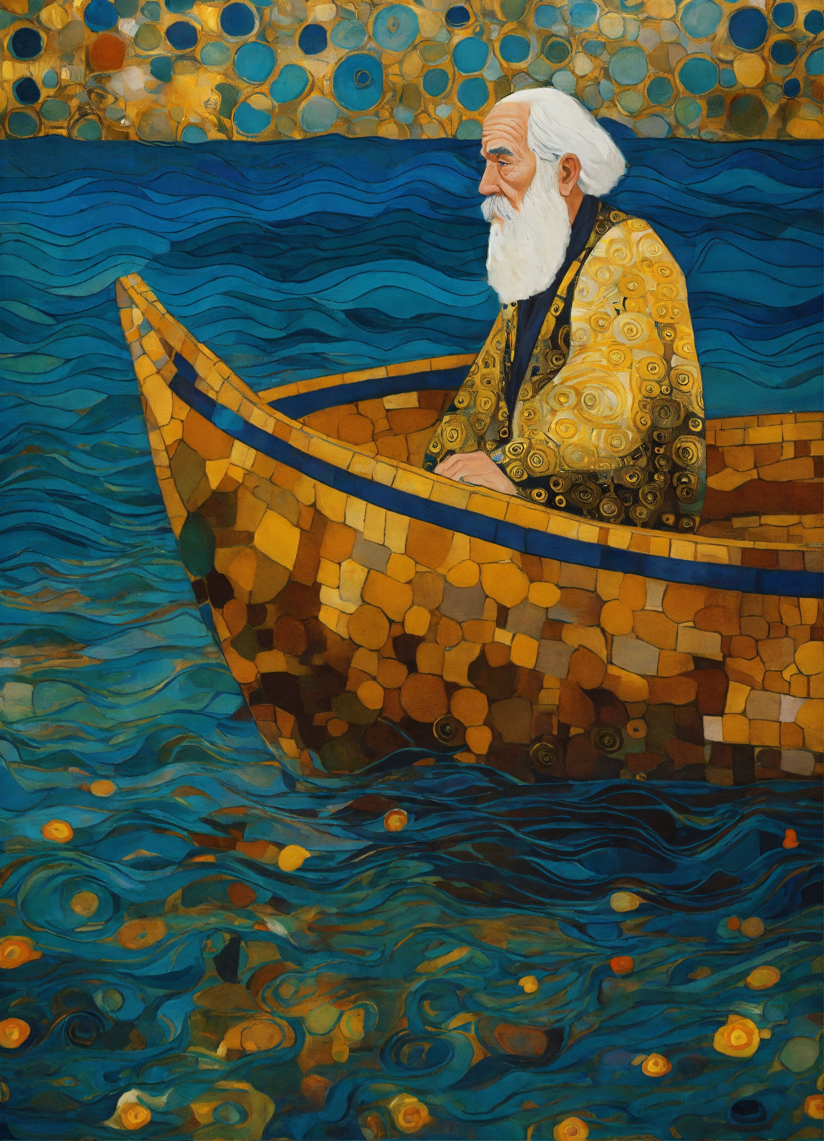 Old man in boat in sea style of klimt