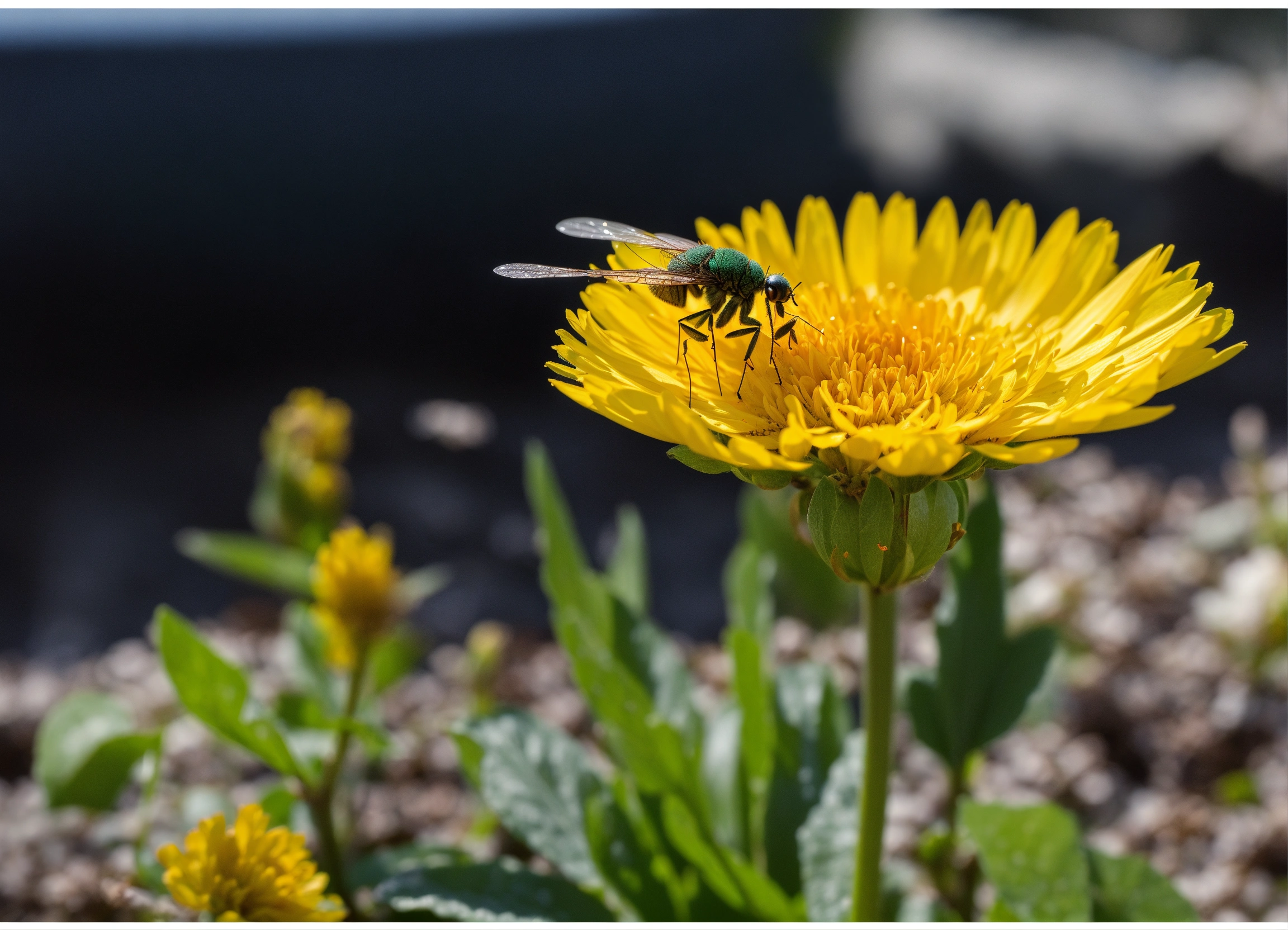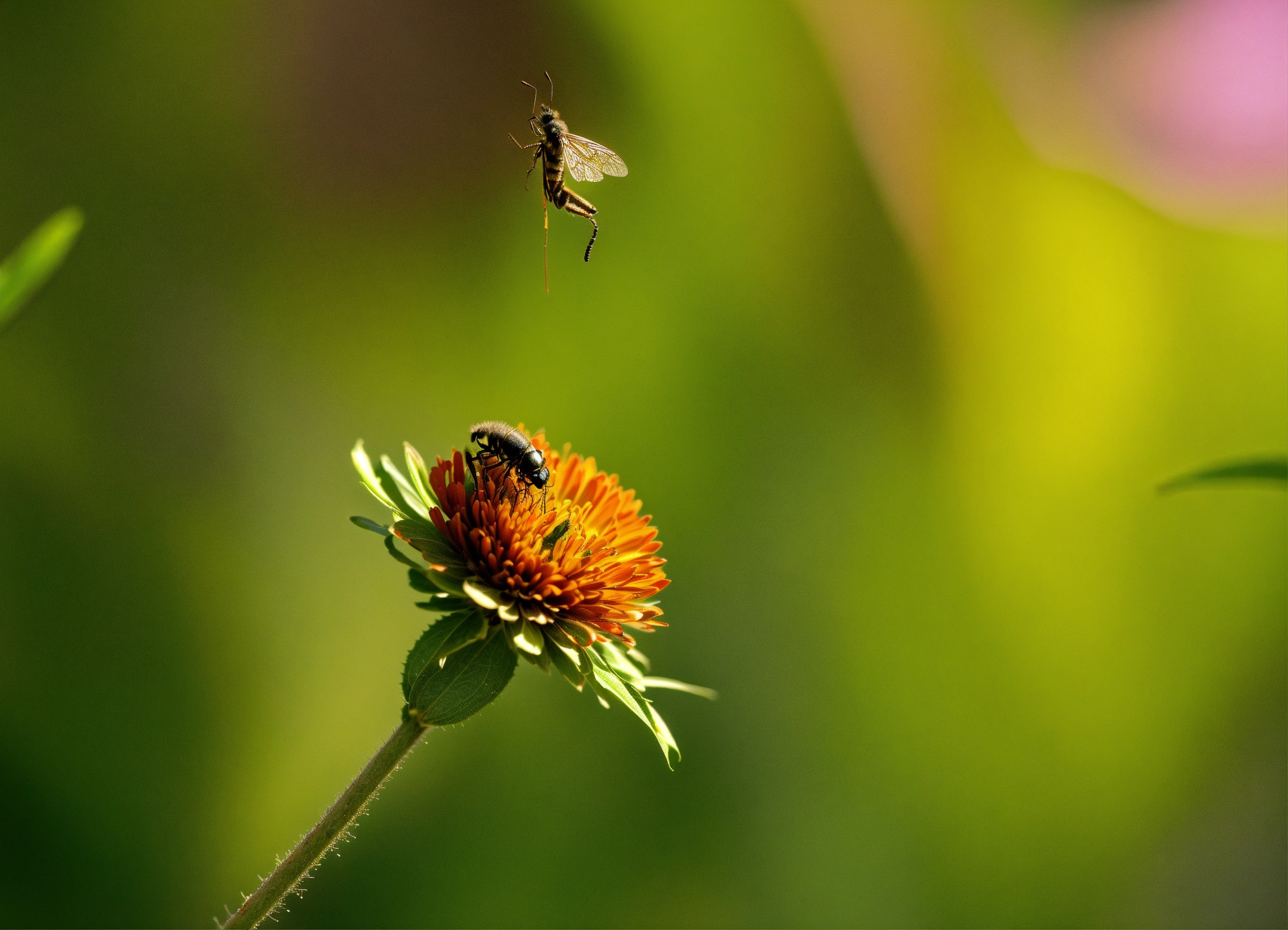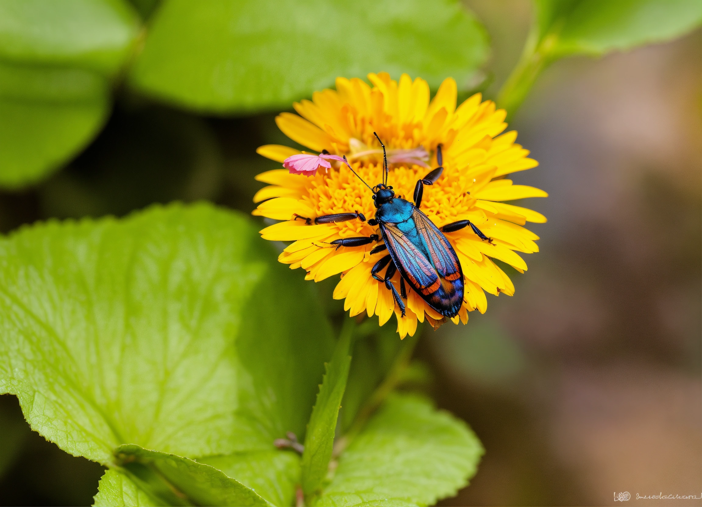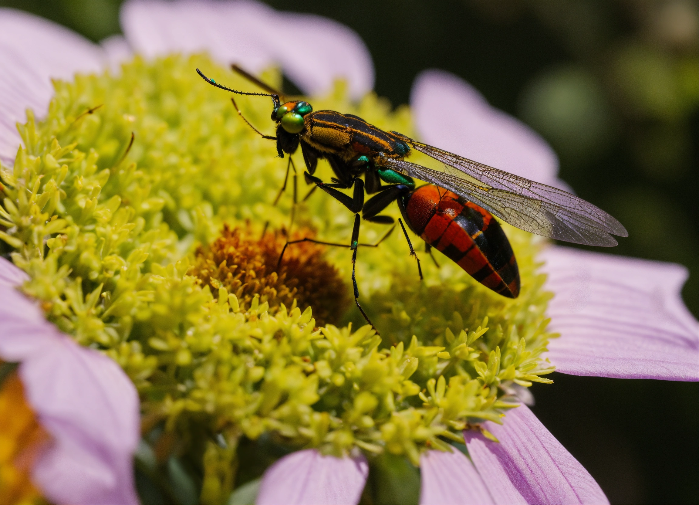 Une fleur extraterrestre avec un insect qui grimpe sur la tige
