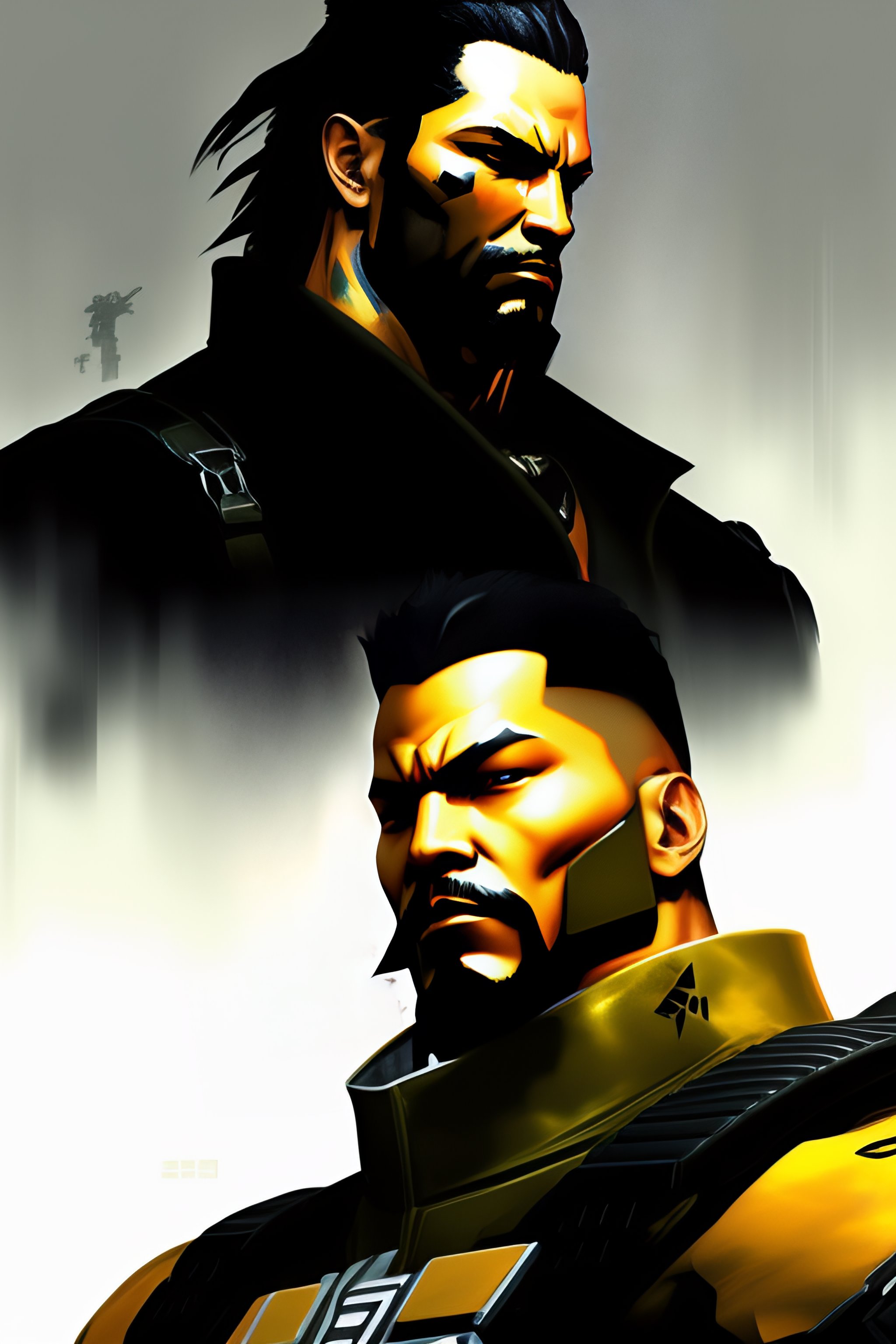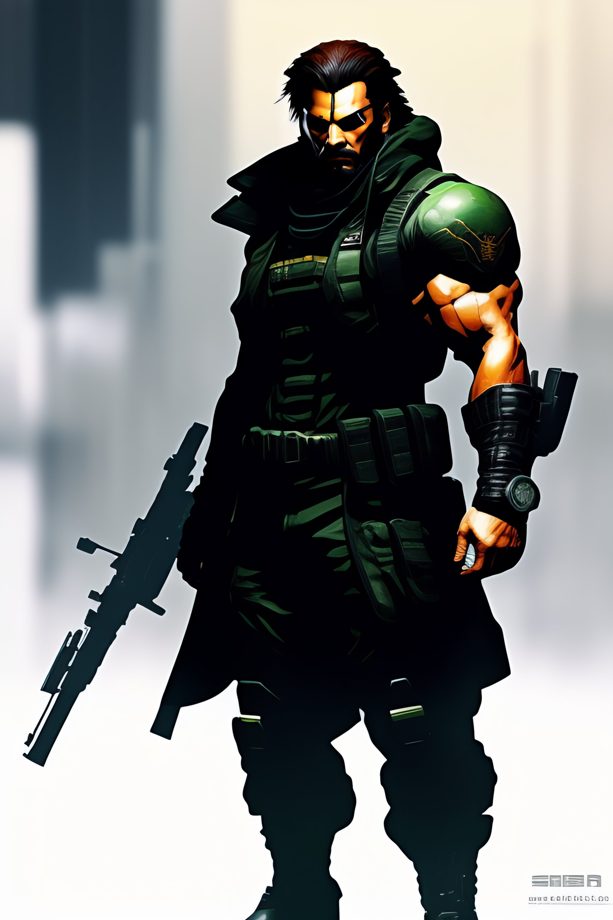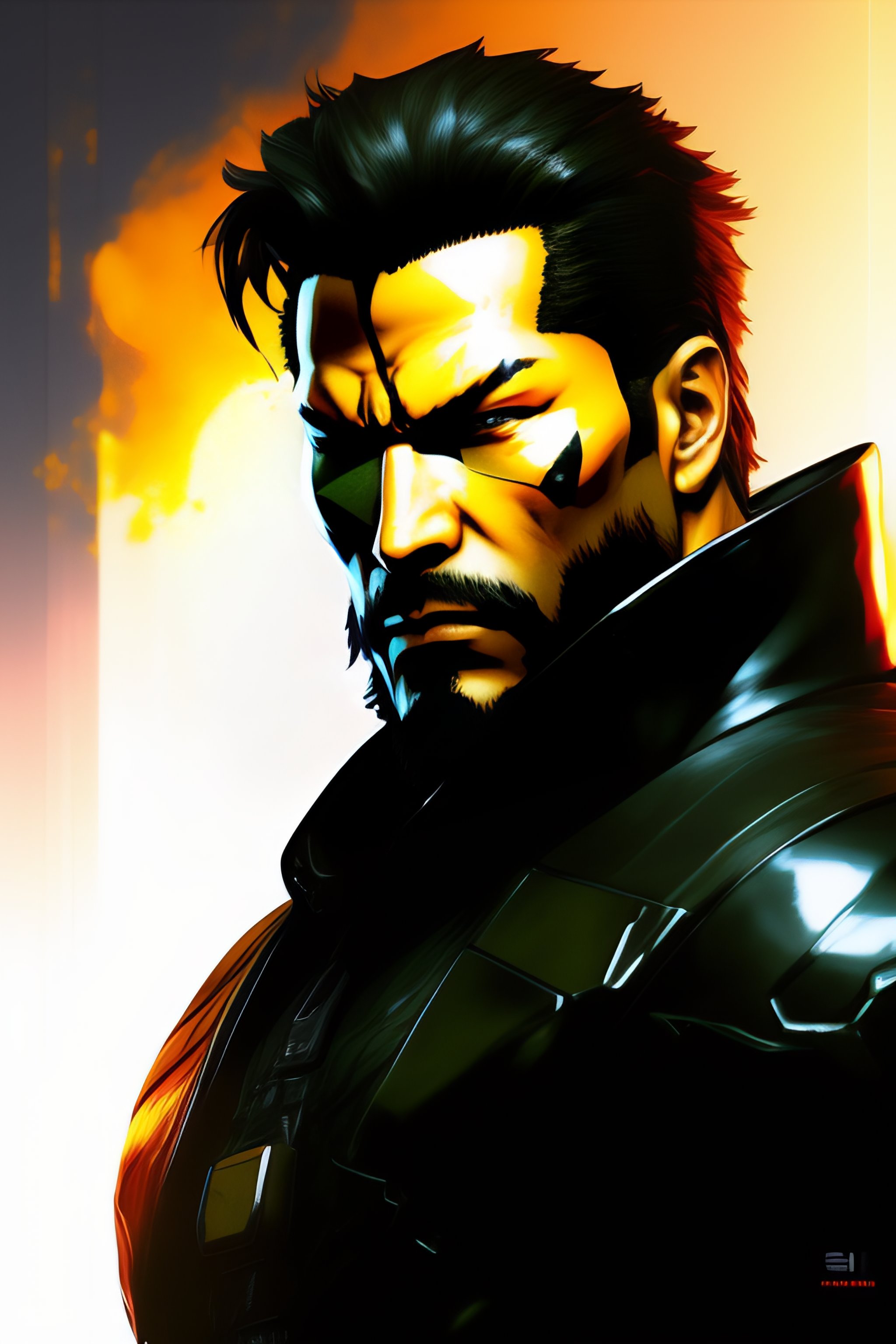 A digital painting of a big boss from metal gear solid yoji shinkawa