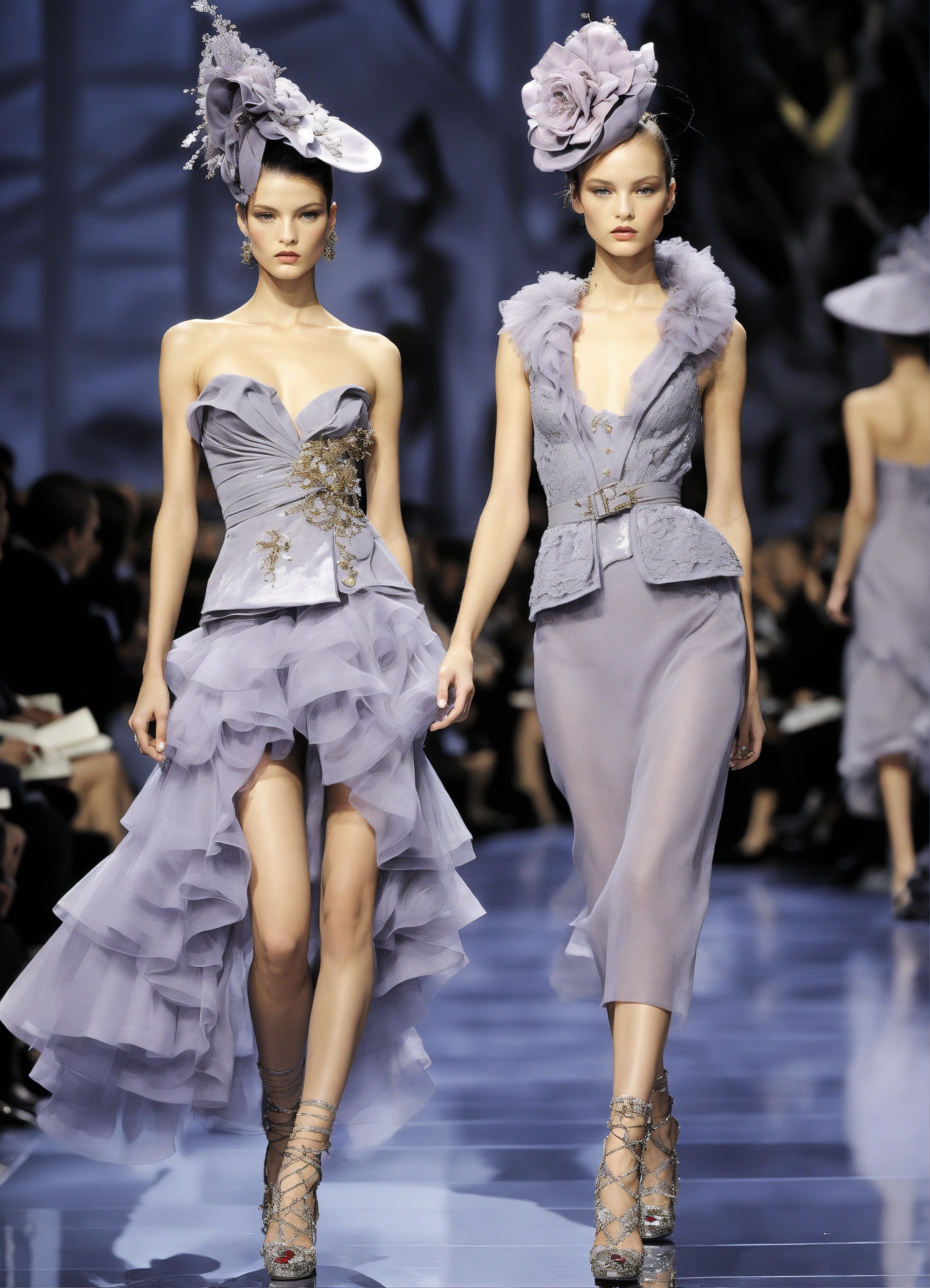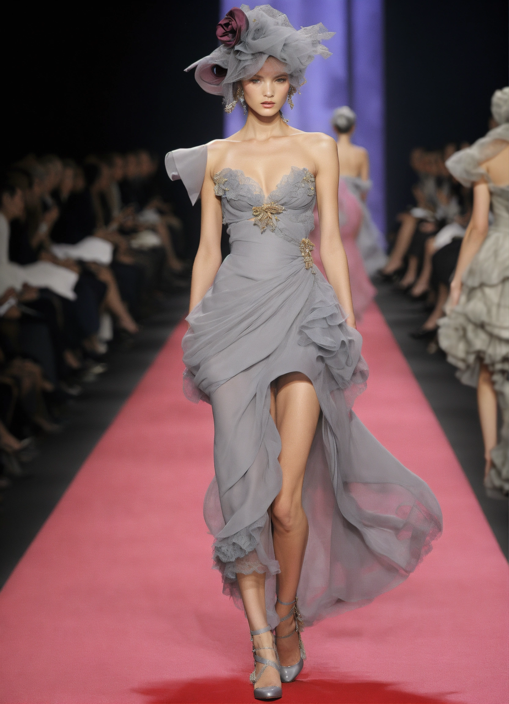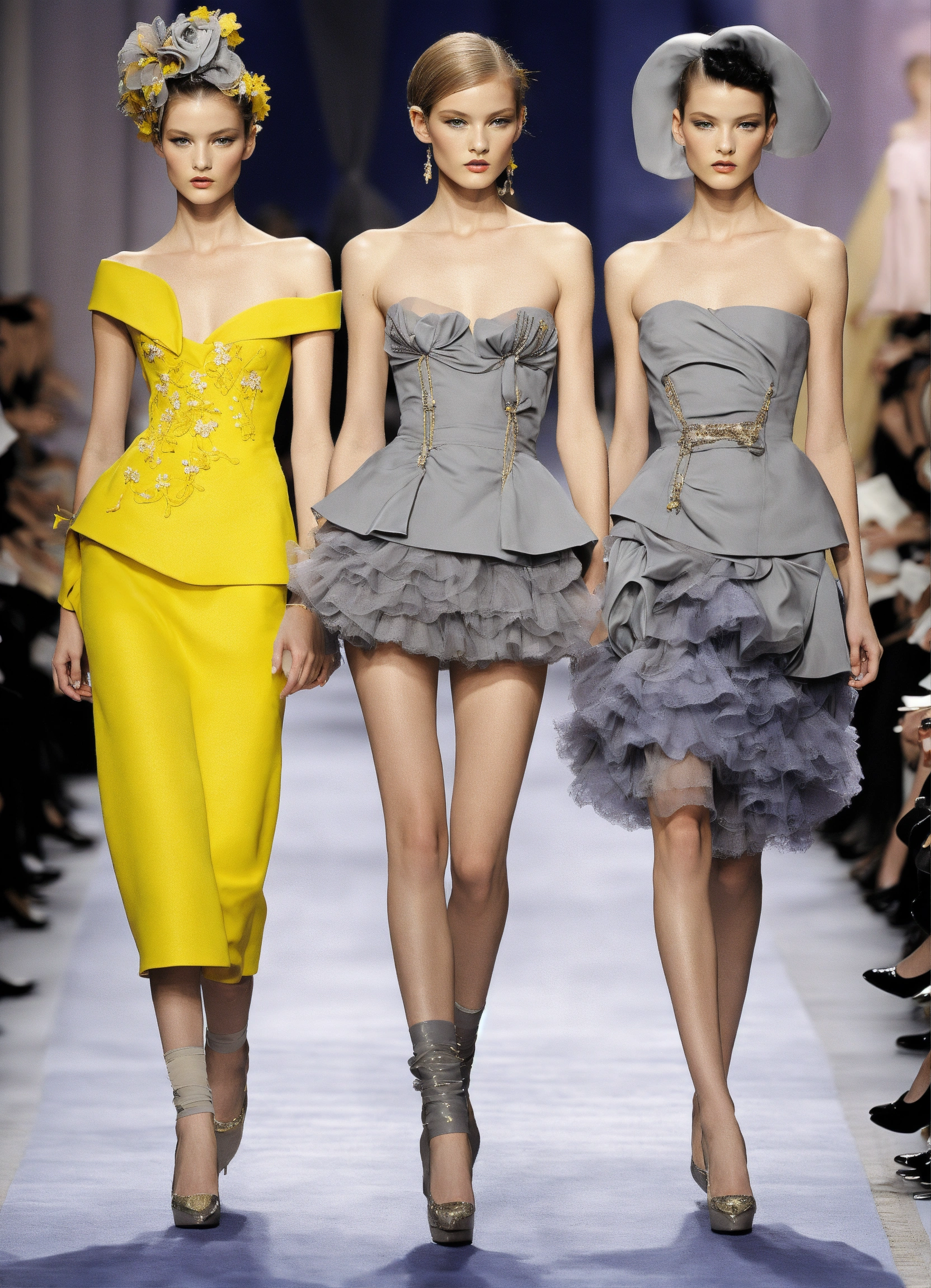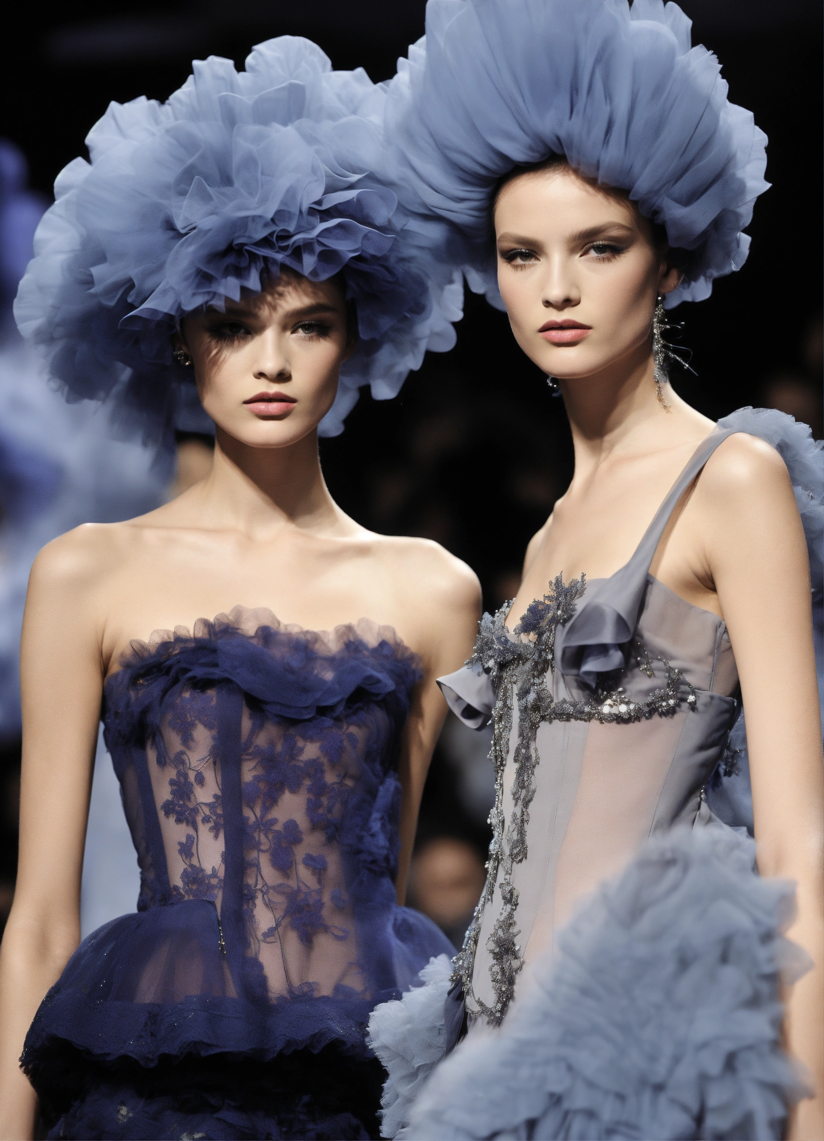 Christian dior john galliano haute couture fall 2009 the conceit of half-dressed models informed the collection, so that hip-emphasizing basques, girdles, lace-edged slips, and petticoats were hybridized into brightly colored variations on the classic wasp-waisted silhouette of dior's new look grey salons