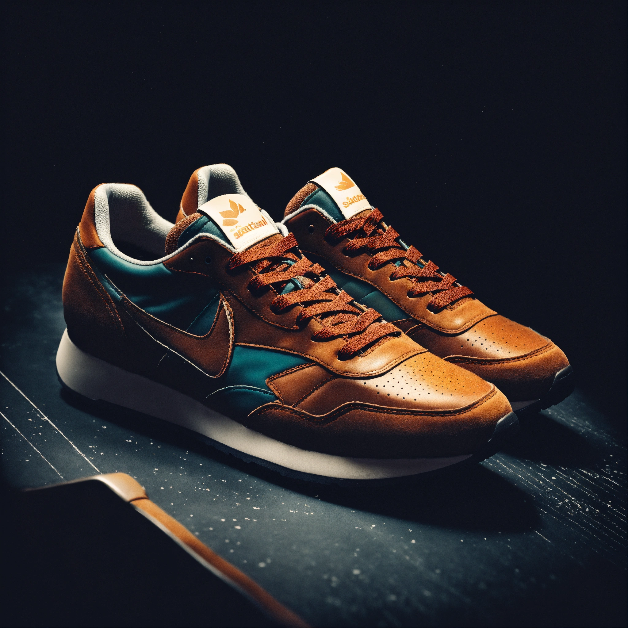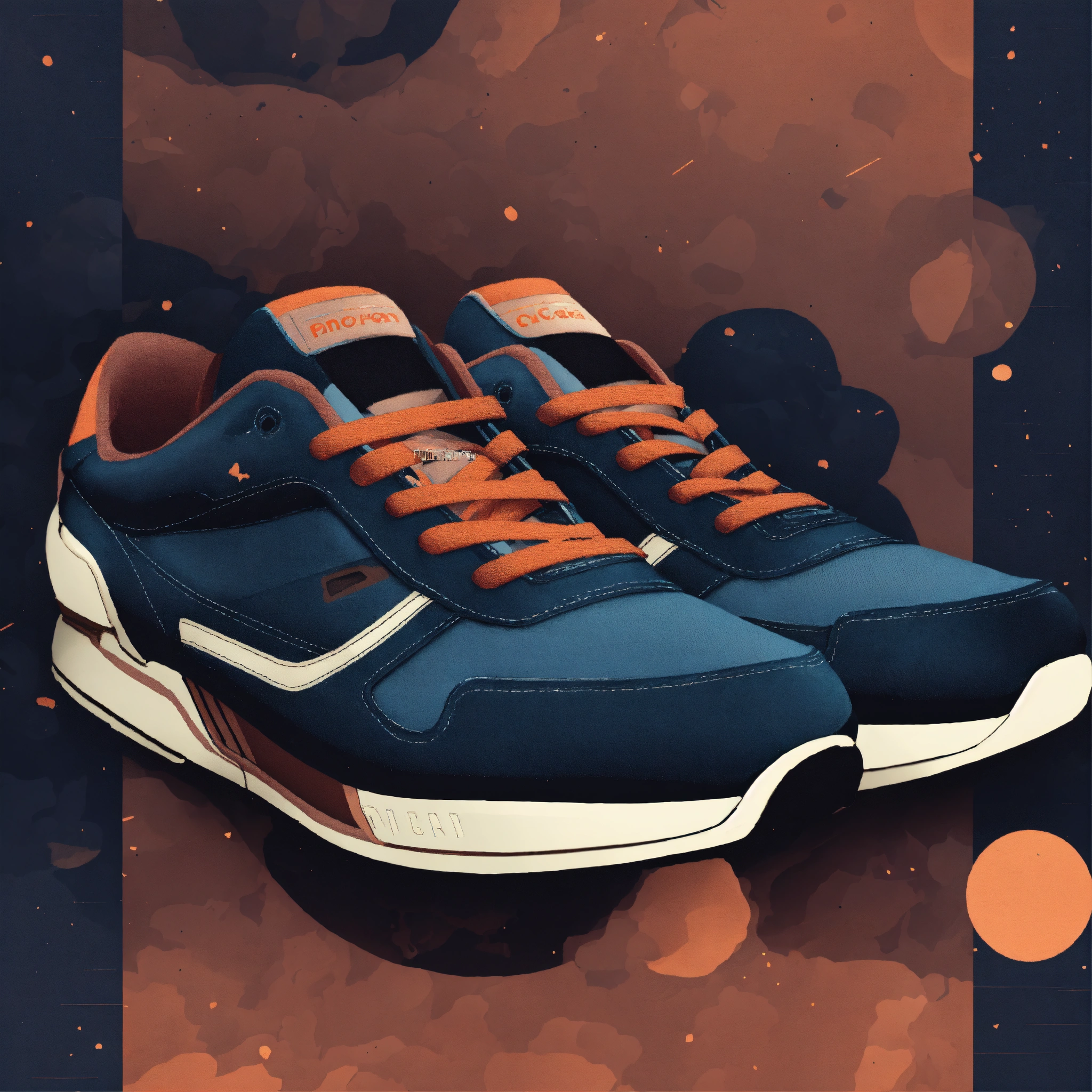 Running sneakers on a dark background, 2d vector illustration, poster, paper texture, grain, analog photo, polaroid, wide-angle, 8k, film grain