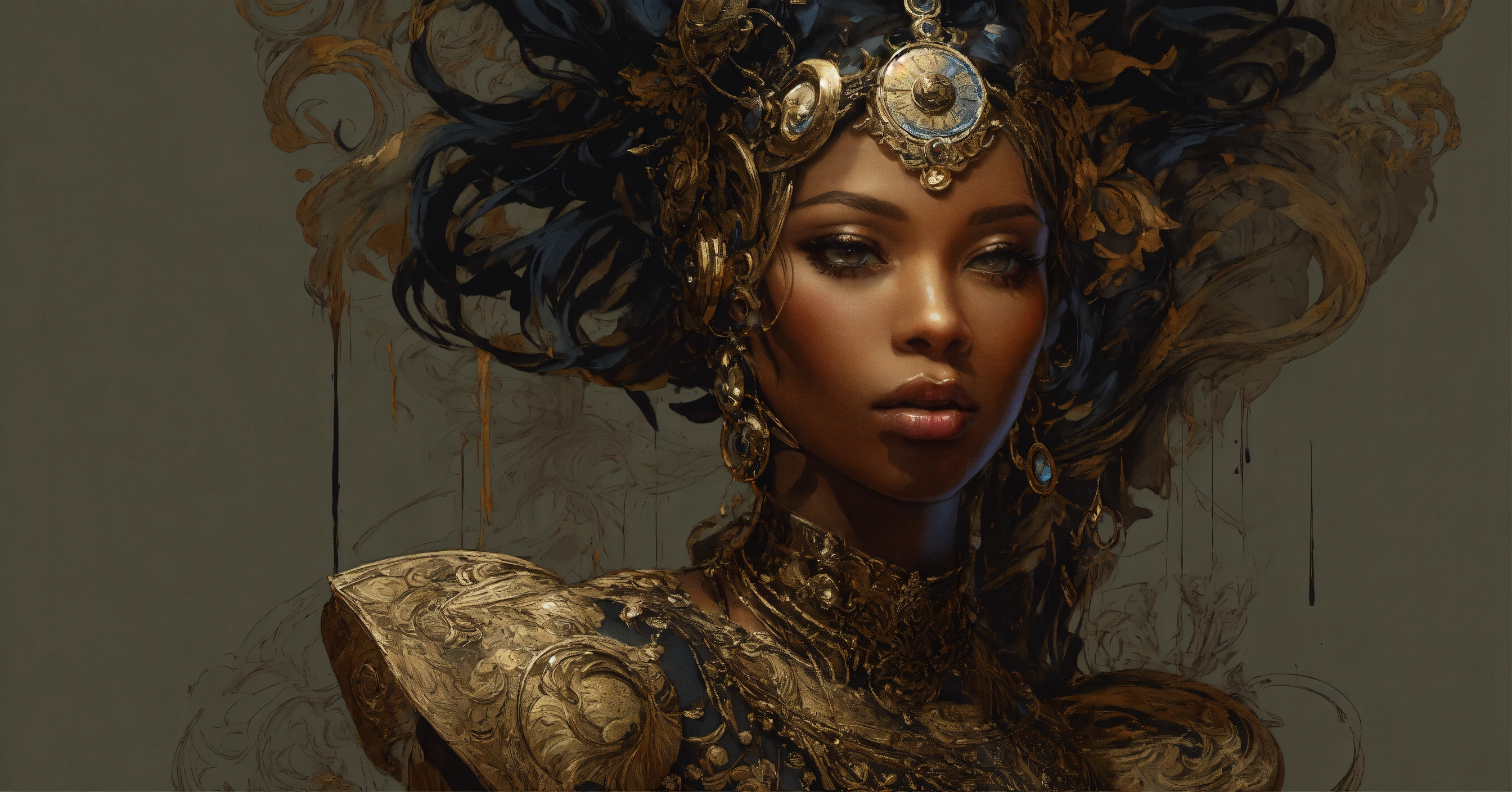 Confident elegant black american woman black ink flow 8k resolution photorealistic masterpiece by aaron horkey and jeremy mann intricately detailed fluid gouache painting by jean baptiste mongue calligraphy acrylic watercolor art, professional photography, natural lighting, volumetric lighting maximalist photoillustration by marton bobzert tshirt design image style, deklart, 8k resolution concept art intricately detailed, complex, elegant, vector graphic, contour, black background