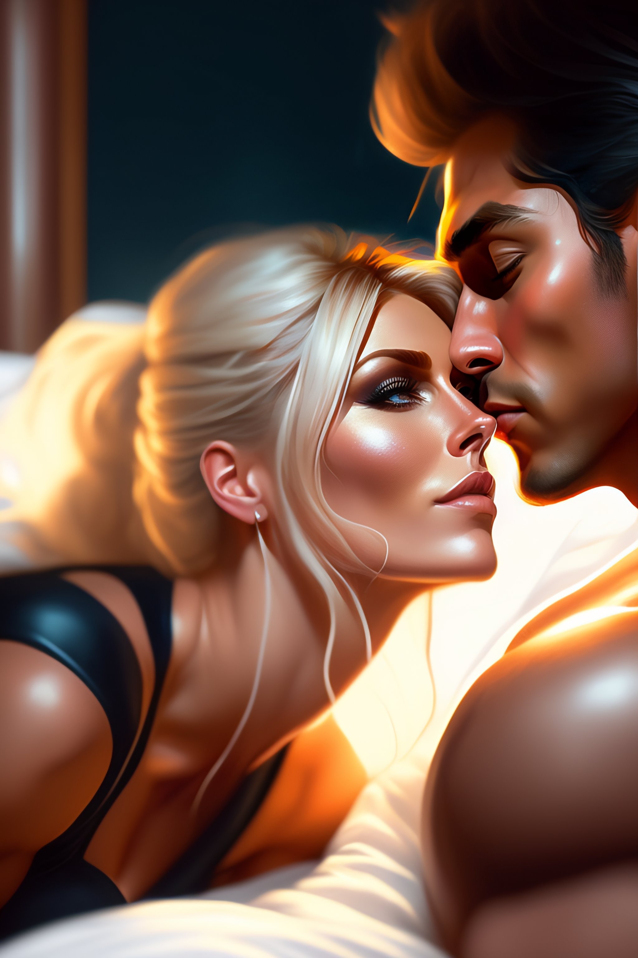 Torrie wilson kissing trish straus love, laying on bed, sharp details, sharp focus, elegant, highly detailed, illustration, by jordan grimmer and greg rutkowski and pine, intricate, beautiful, trending artstation, pixiv, digital art