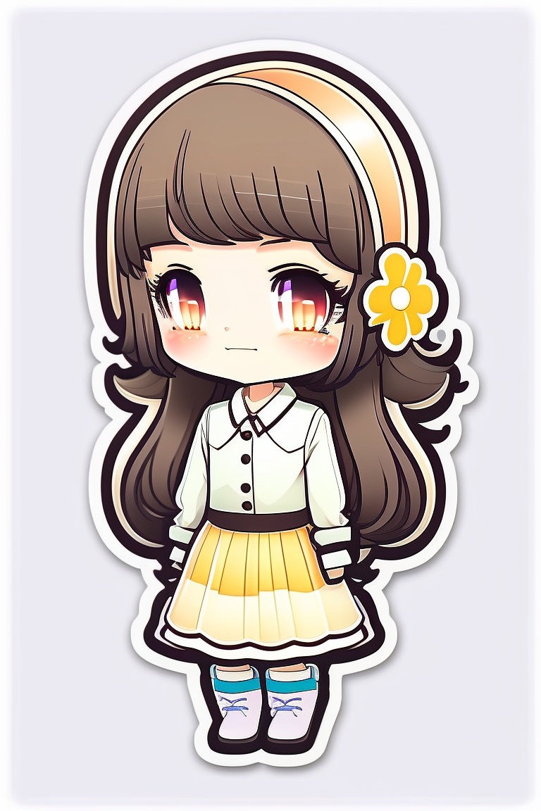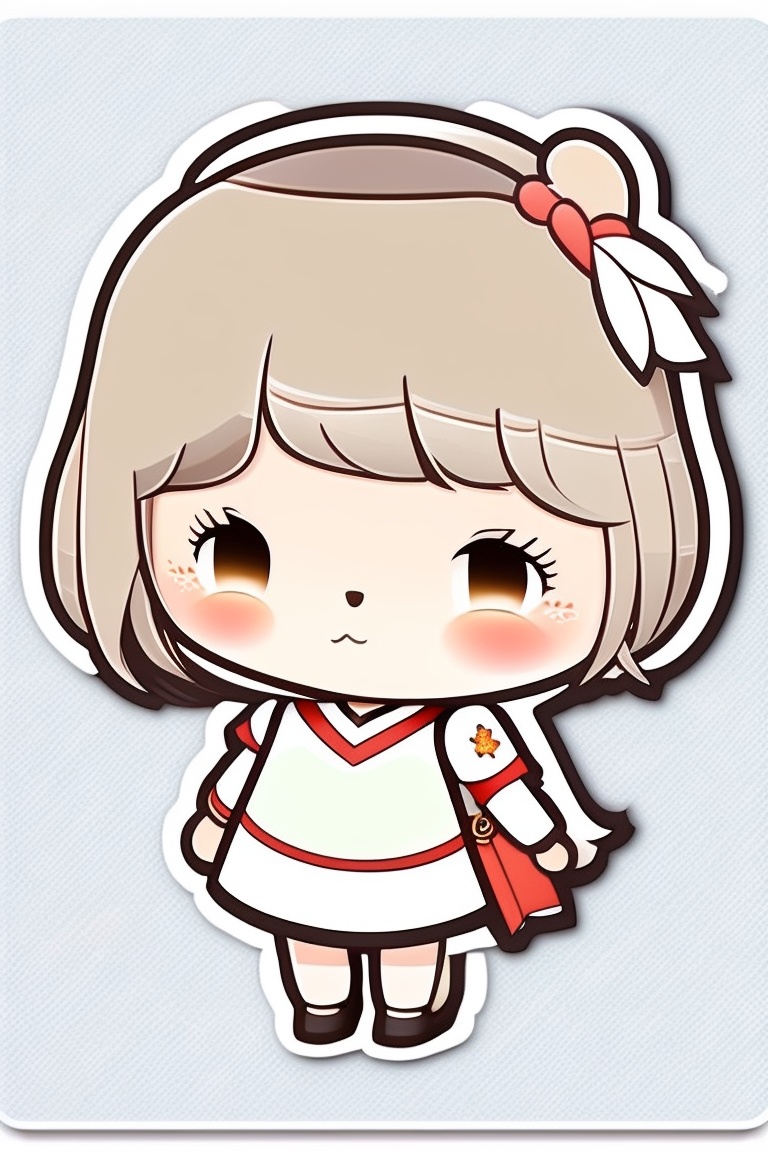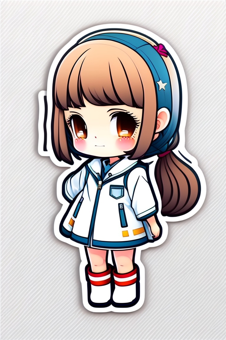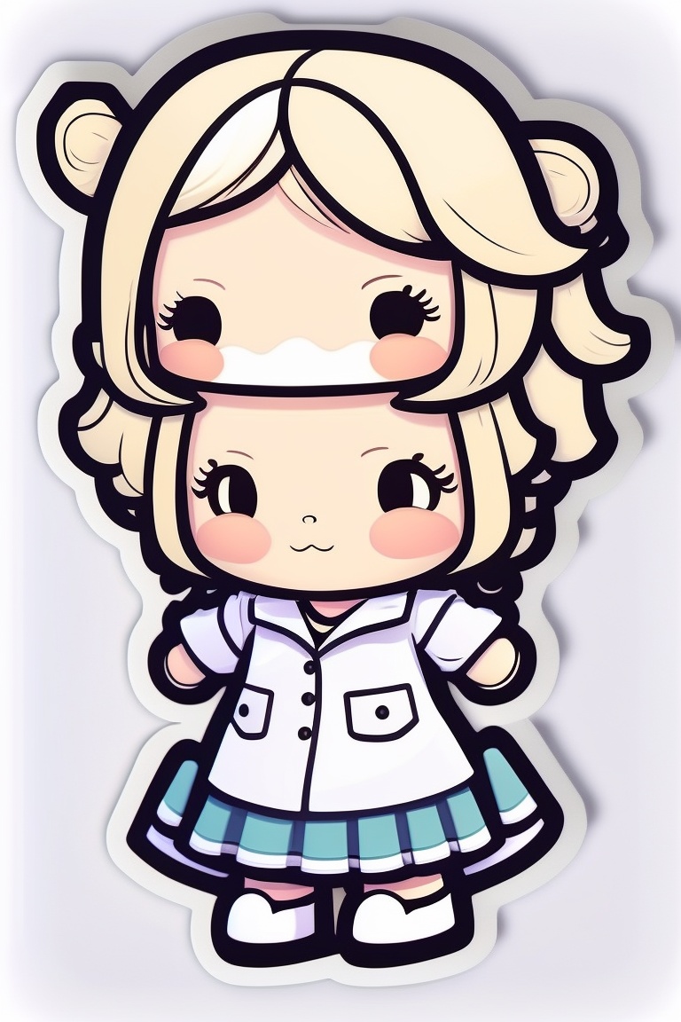 Cute sticker of a kawaii chibi girl, paper doll style, vector, cuttout around the perimeter of the object, white background, contour:: anime::2 --v 4