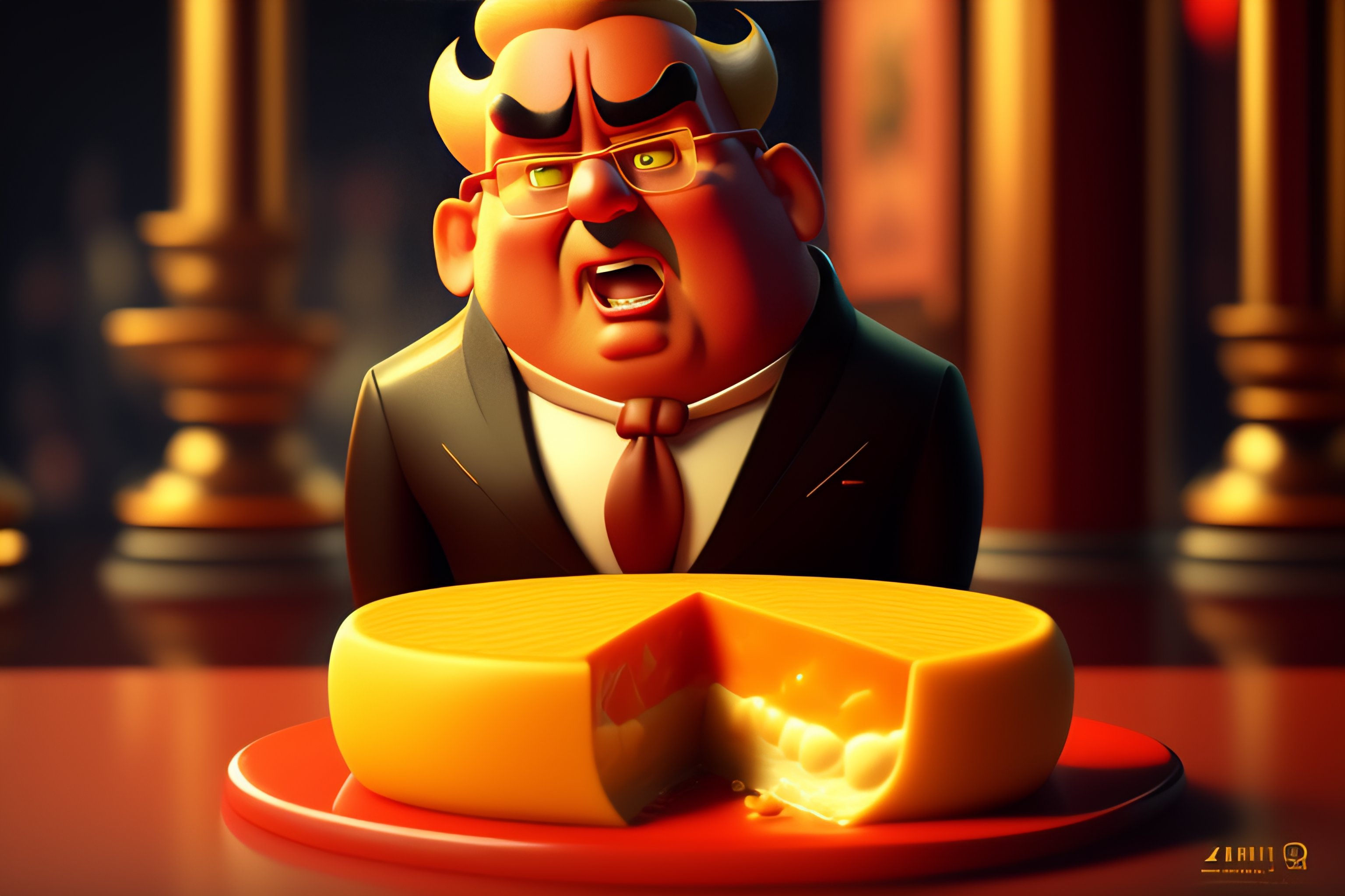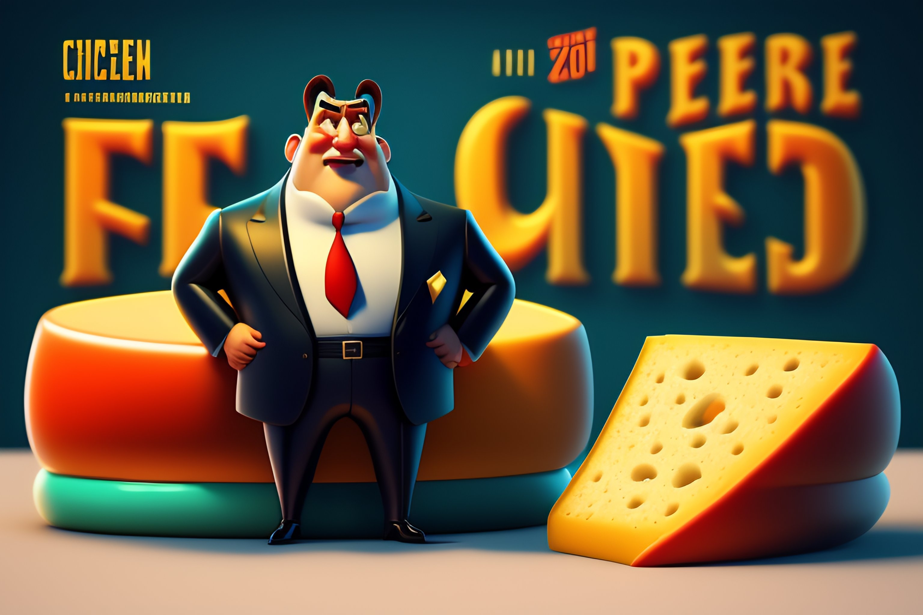 Poster for a movie about a evil boss that loves to eat cheese. pixar style, 3d animation, render, zigor samaniego style