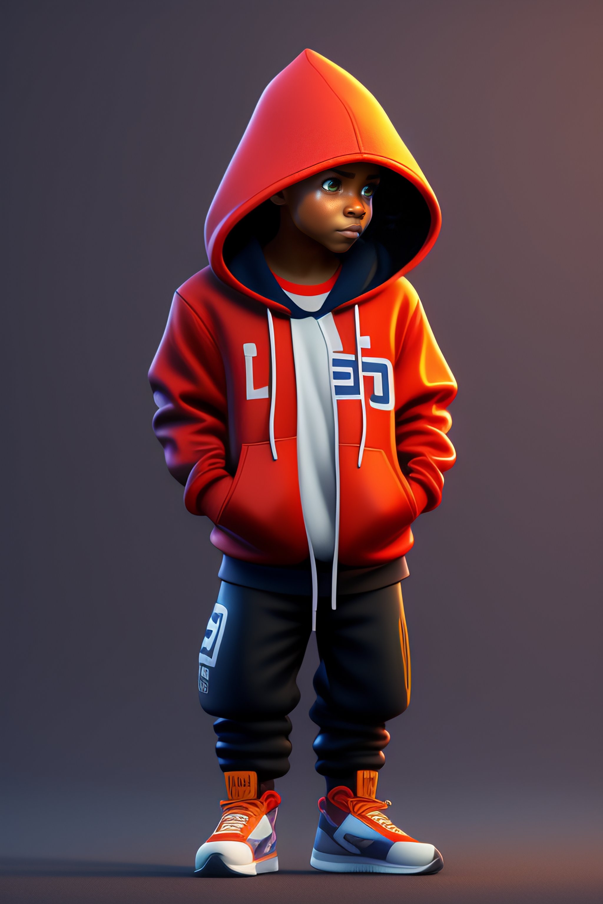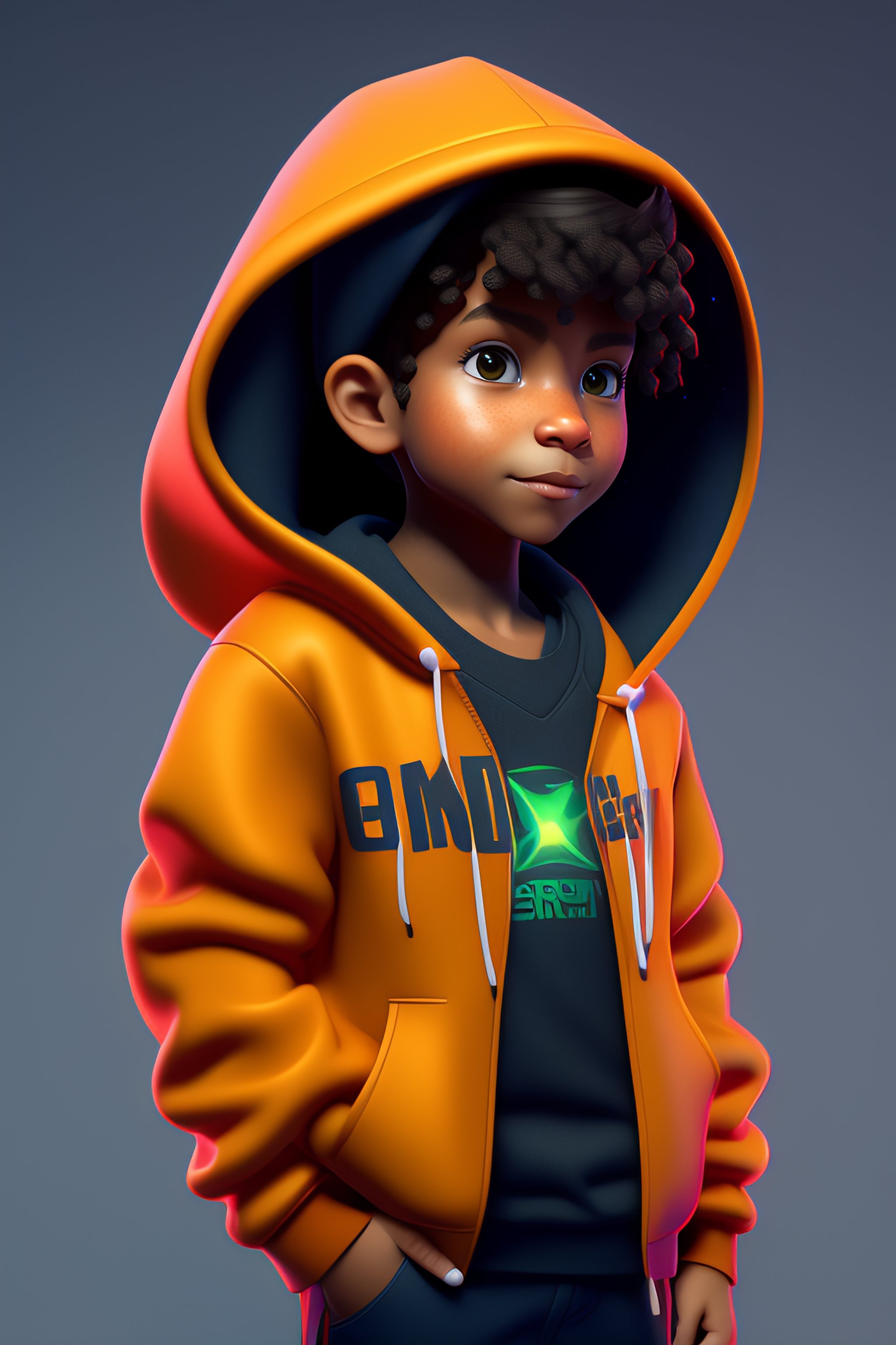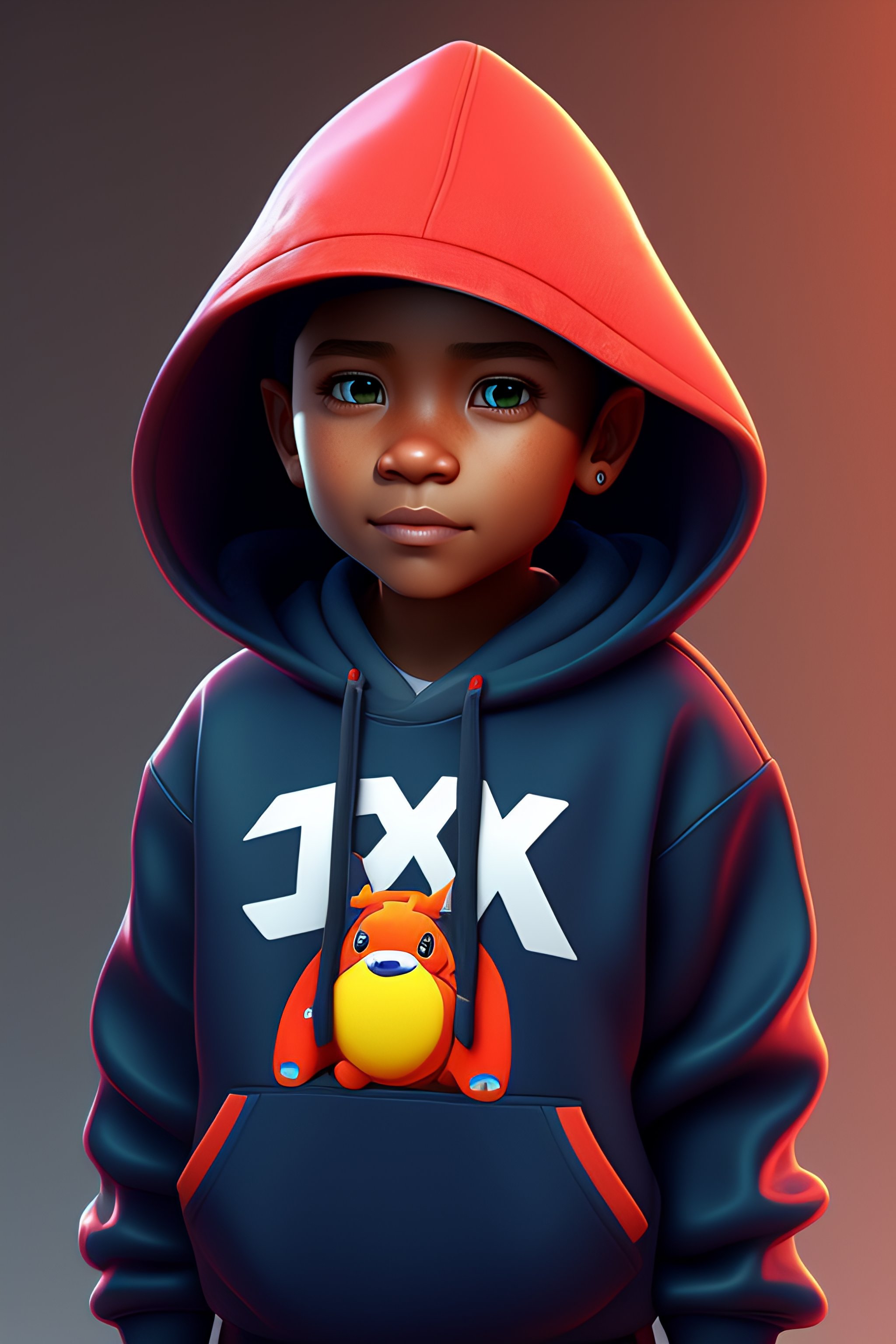 A cartoon character wearing a hoodie with the words clinex on it, concept art by senior character artist, trending on zbrush central, computer art, rendered in cinema4d, rendered in maya, artstation hd