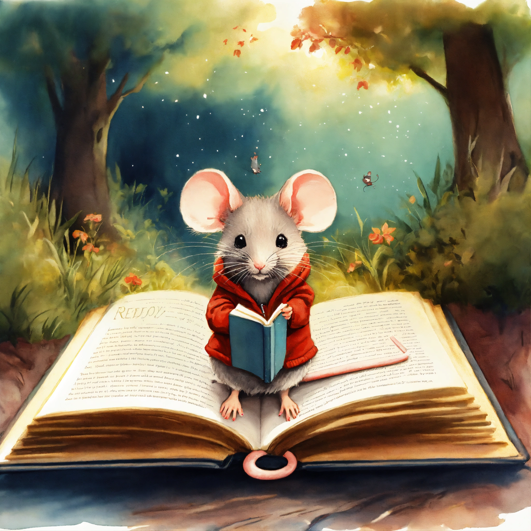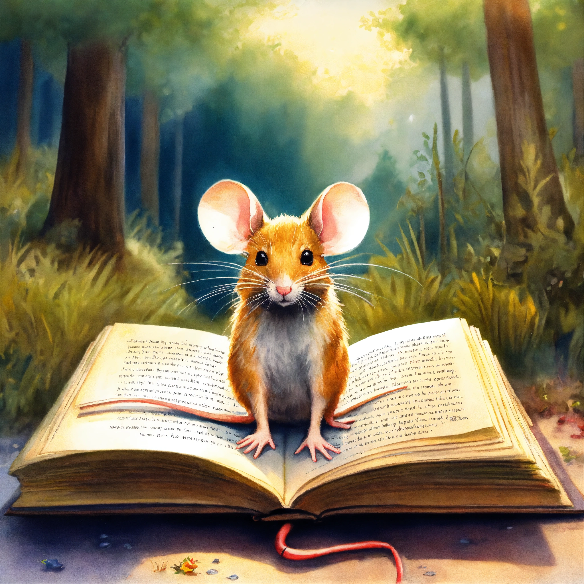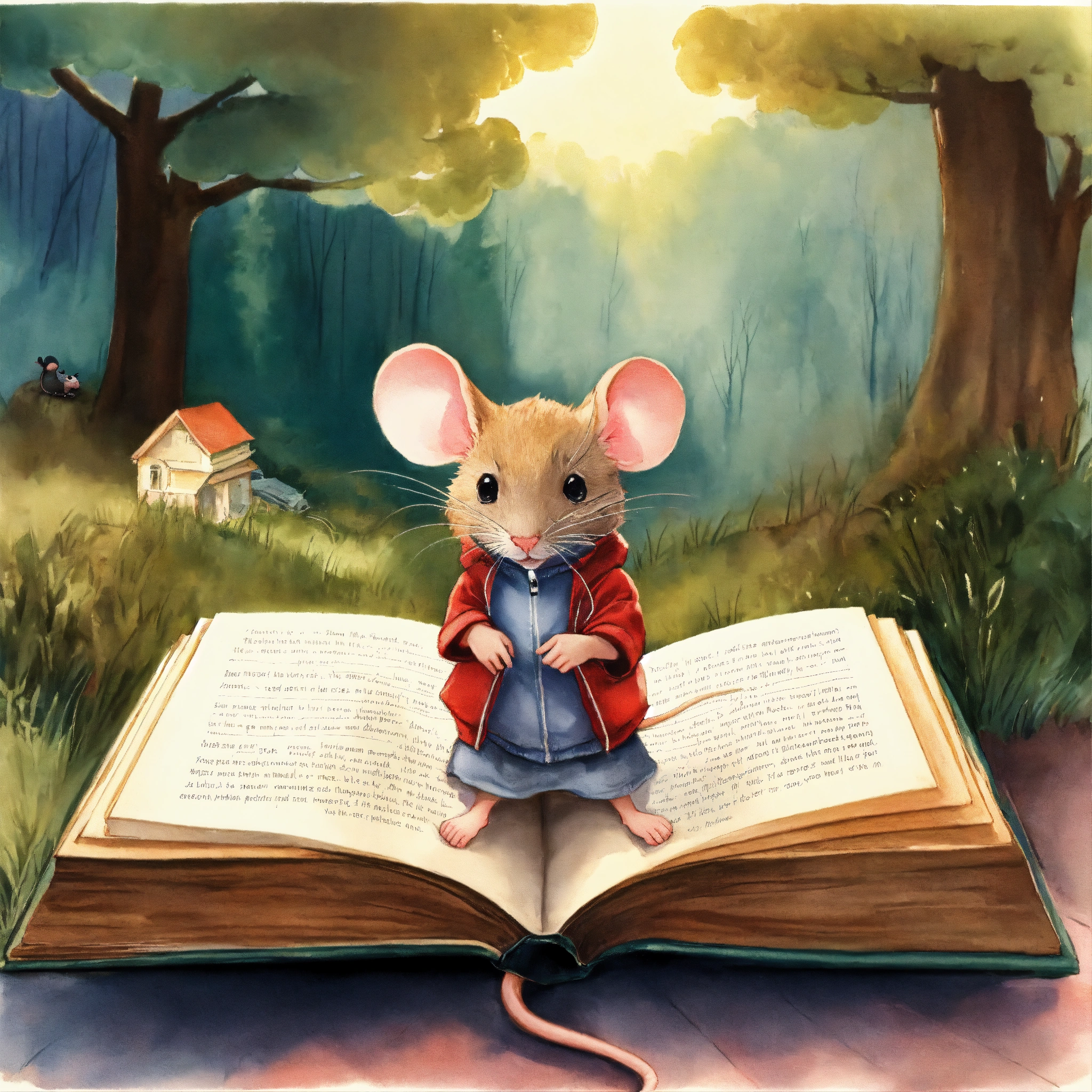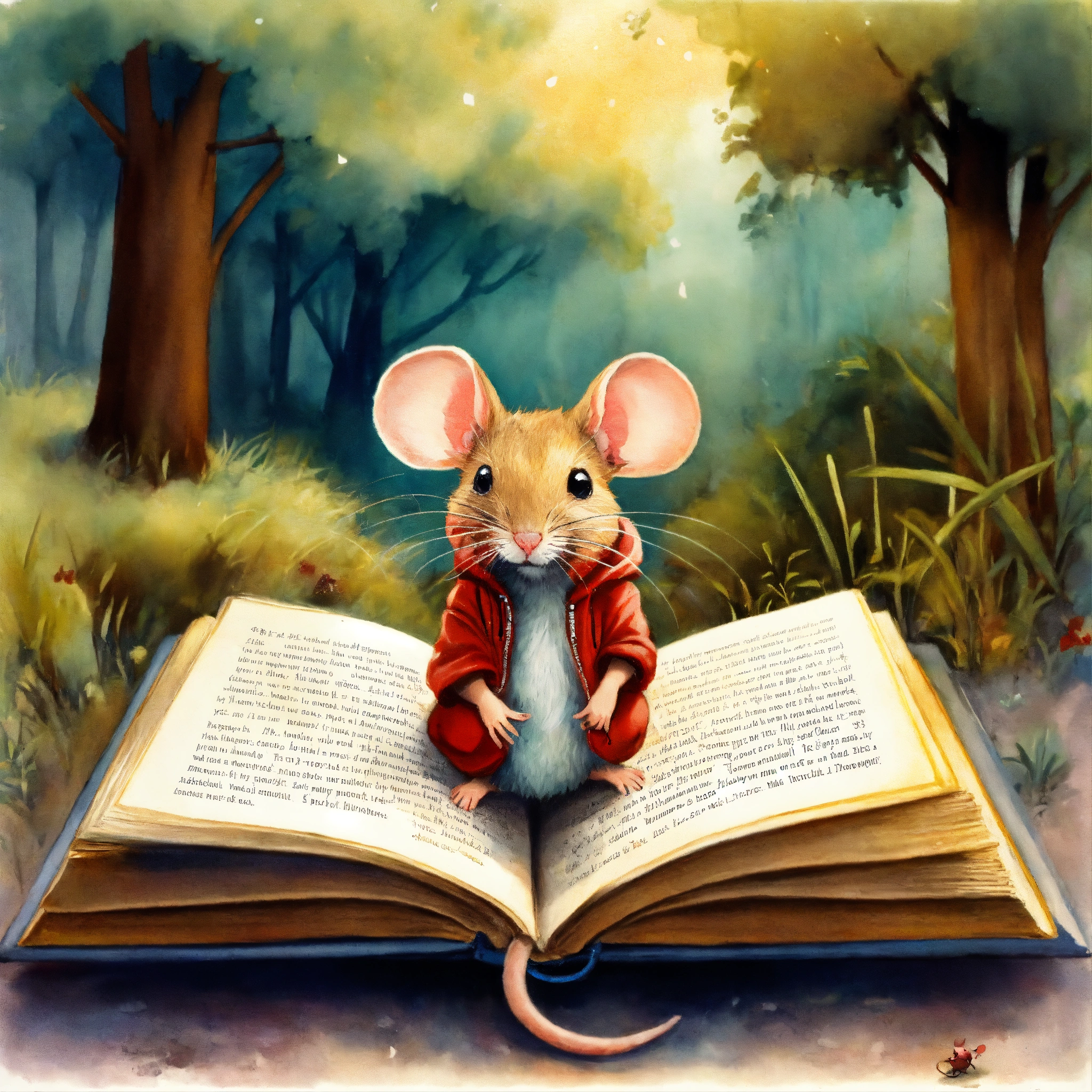 Mouse seeing in book illustration about redhoody