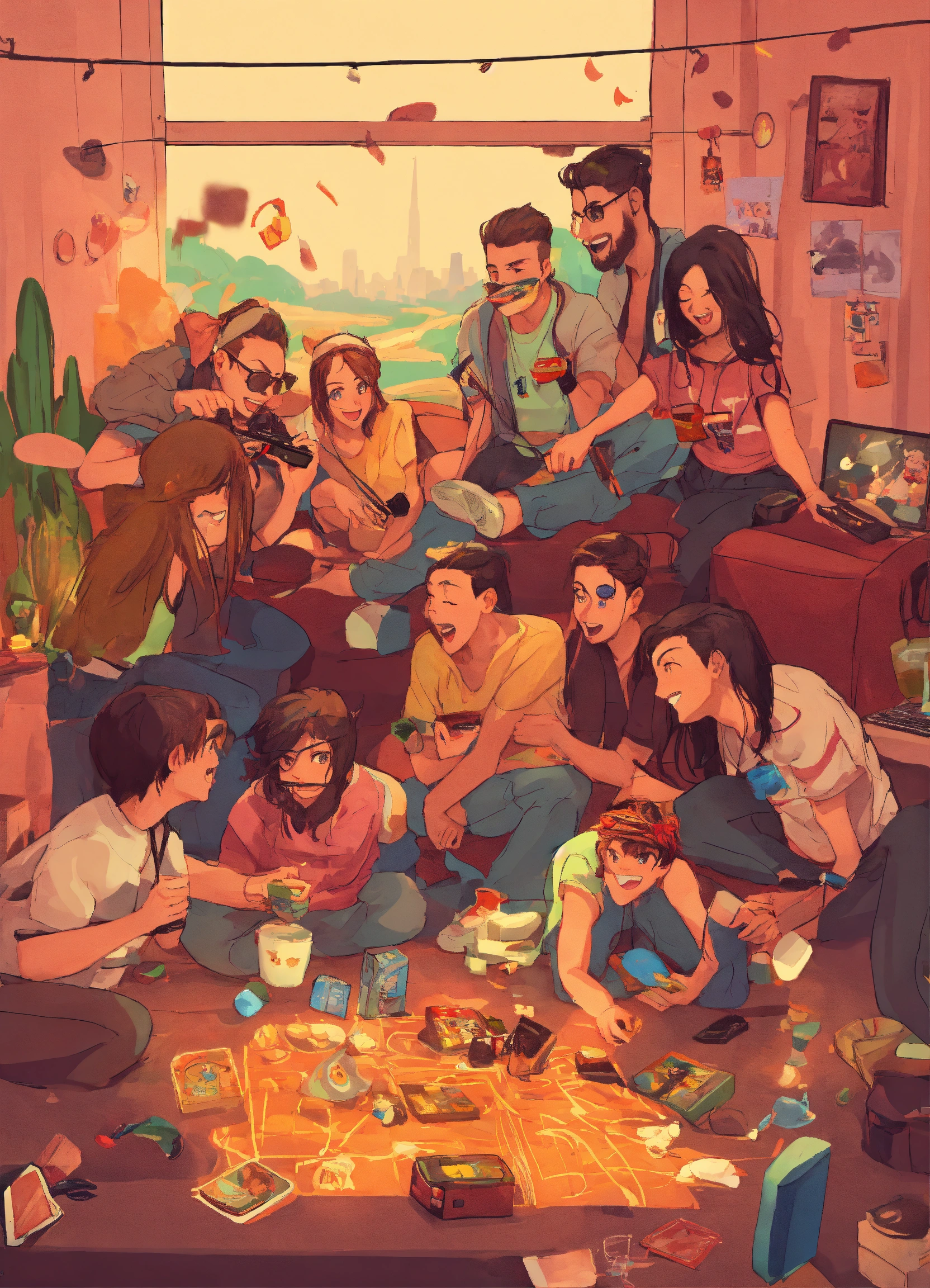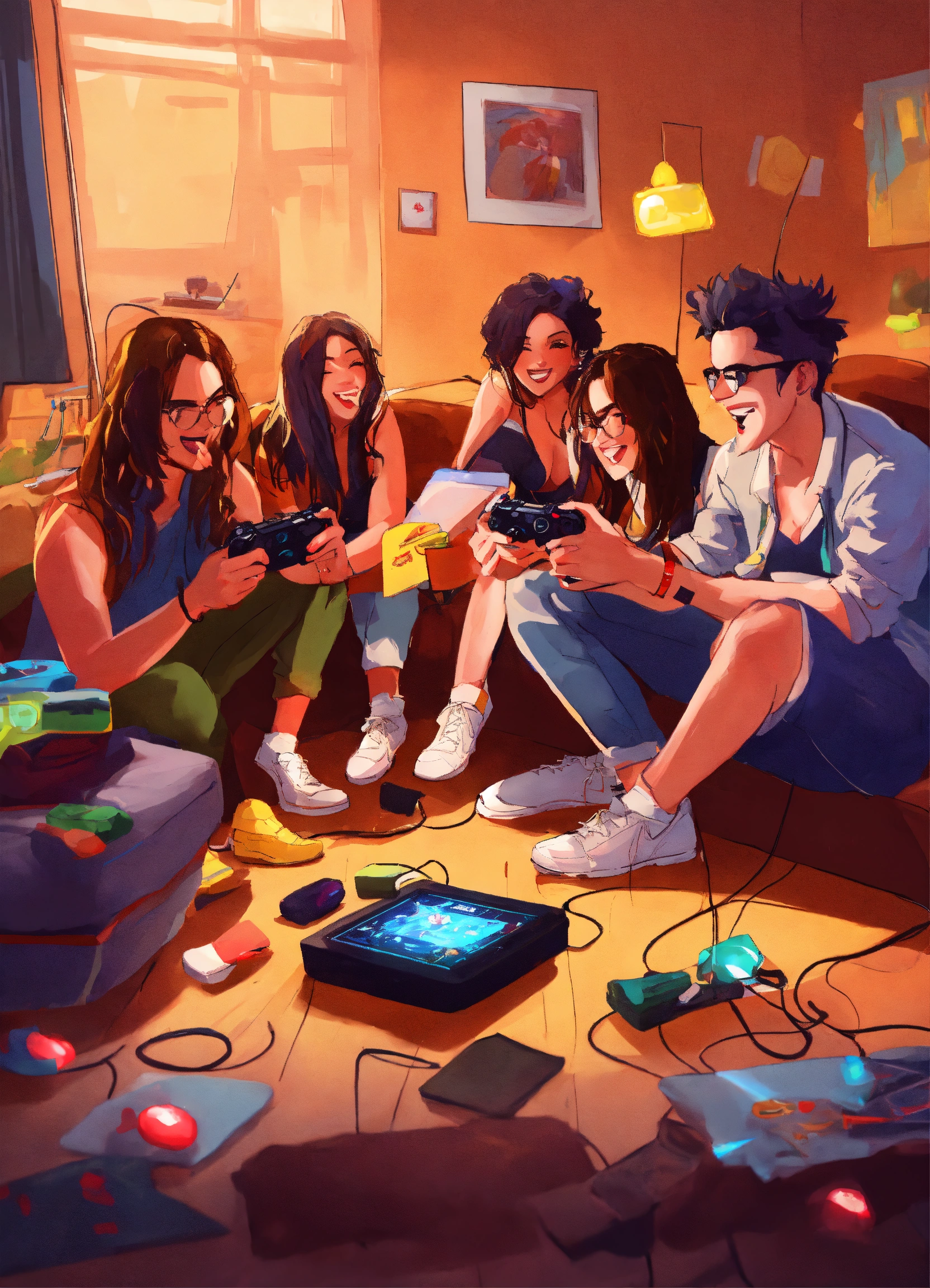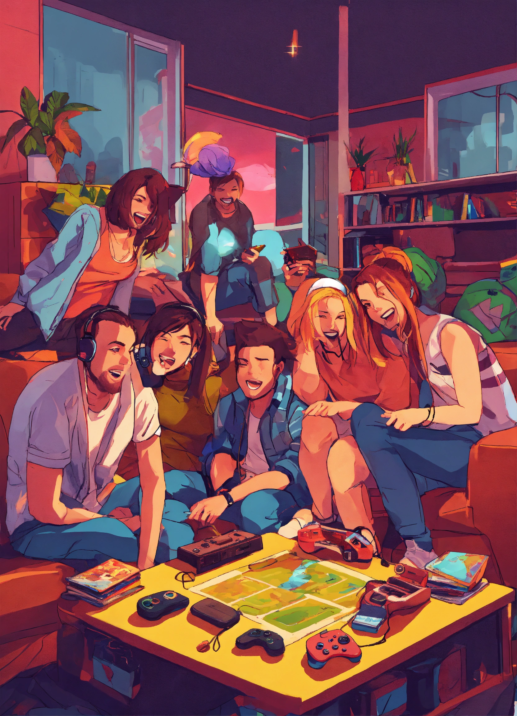 Friends playing games together in a crazy style