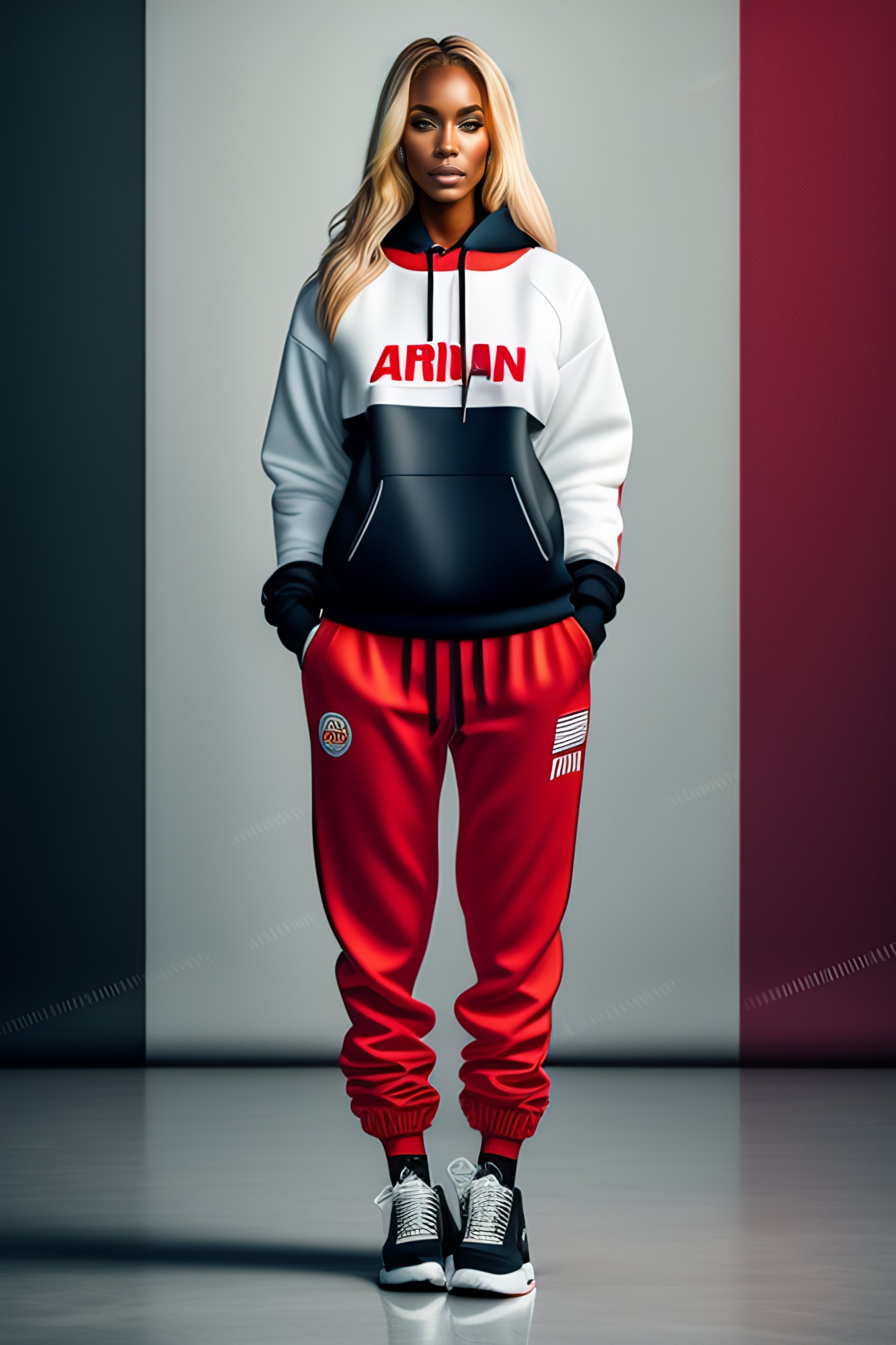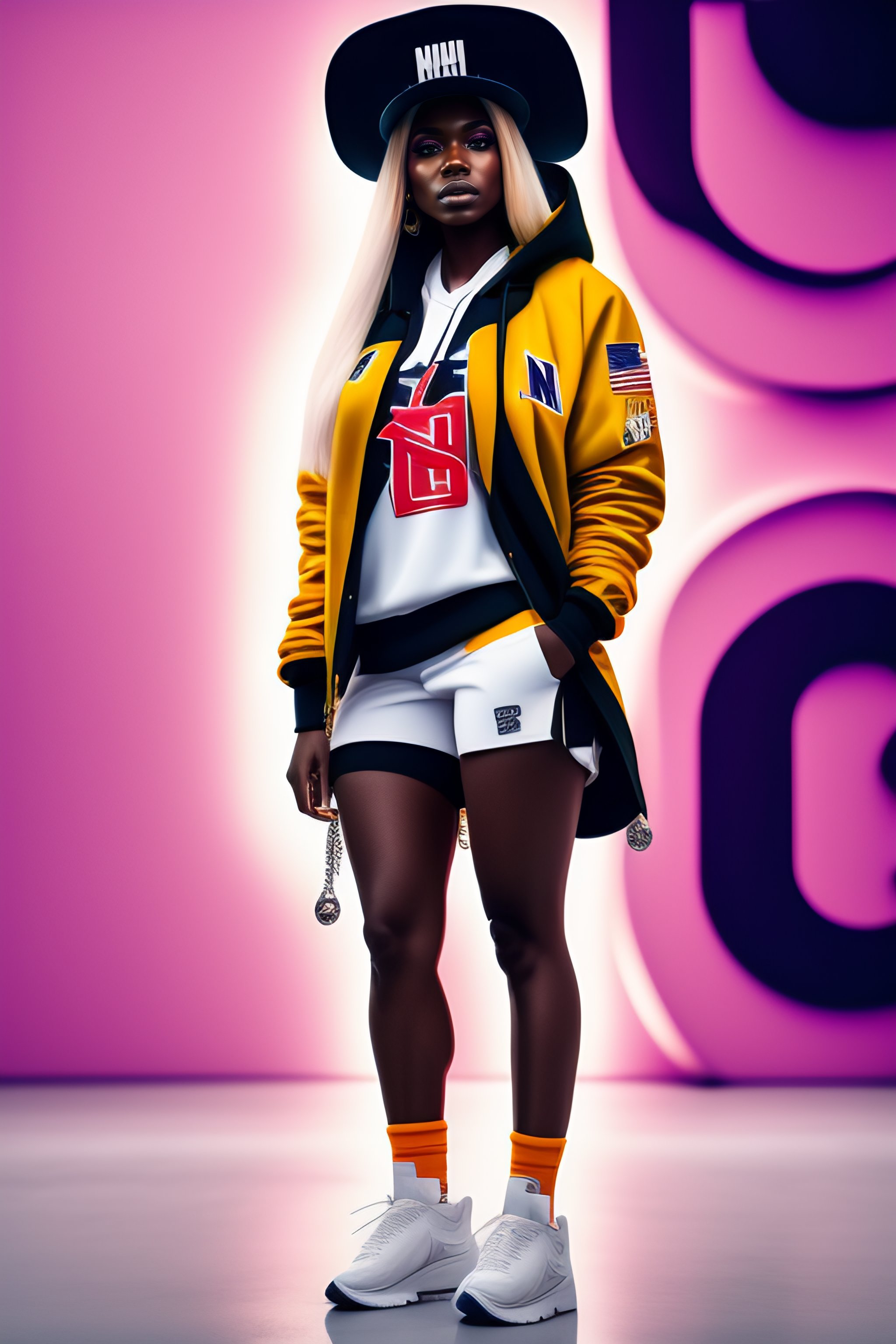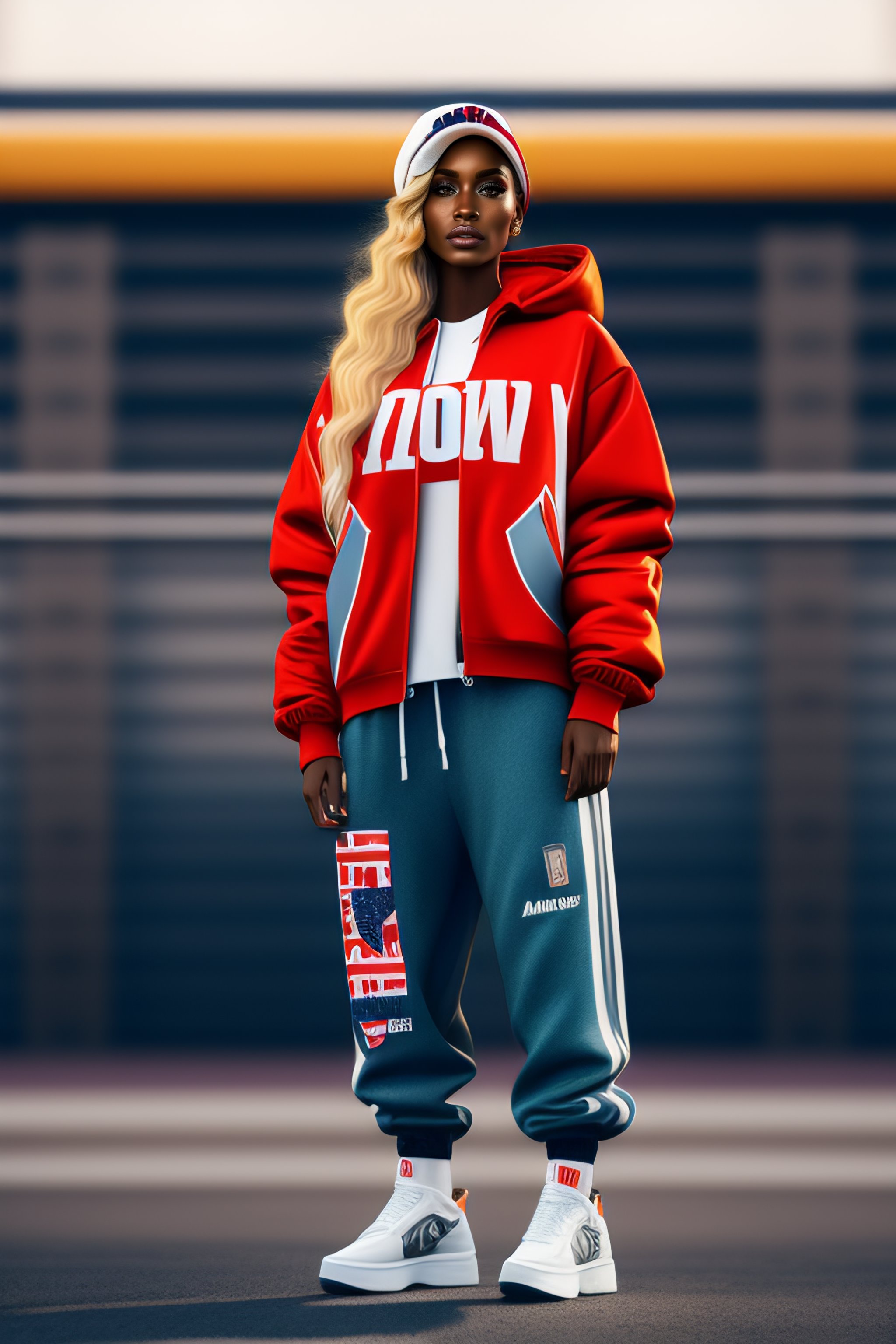 American women blonde in a hip hop streetwear drip, full body, standing, hyperrealistic, high quality, photorealistic, 8k